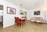 Wohnzimmer mit räumlich abgeteiltem Küchenbereich