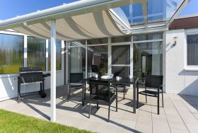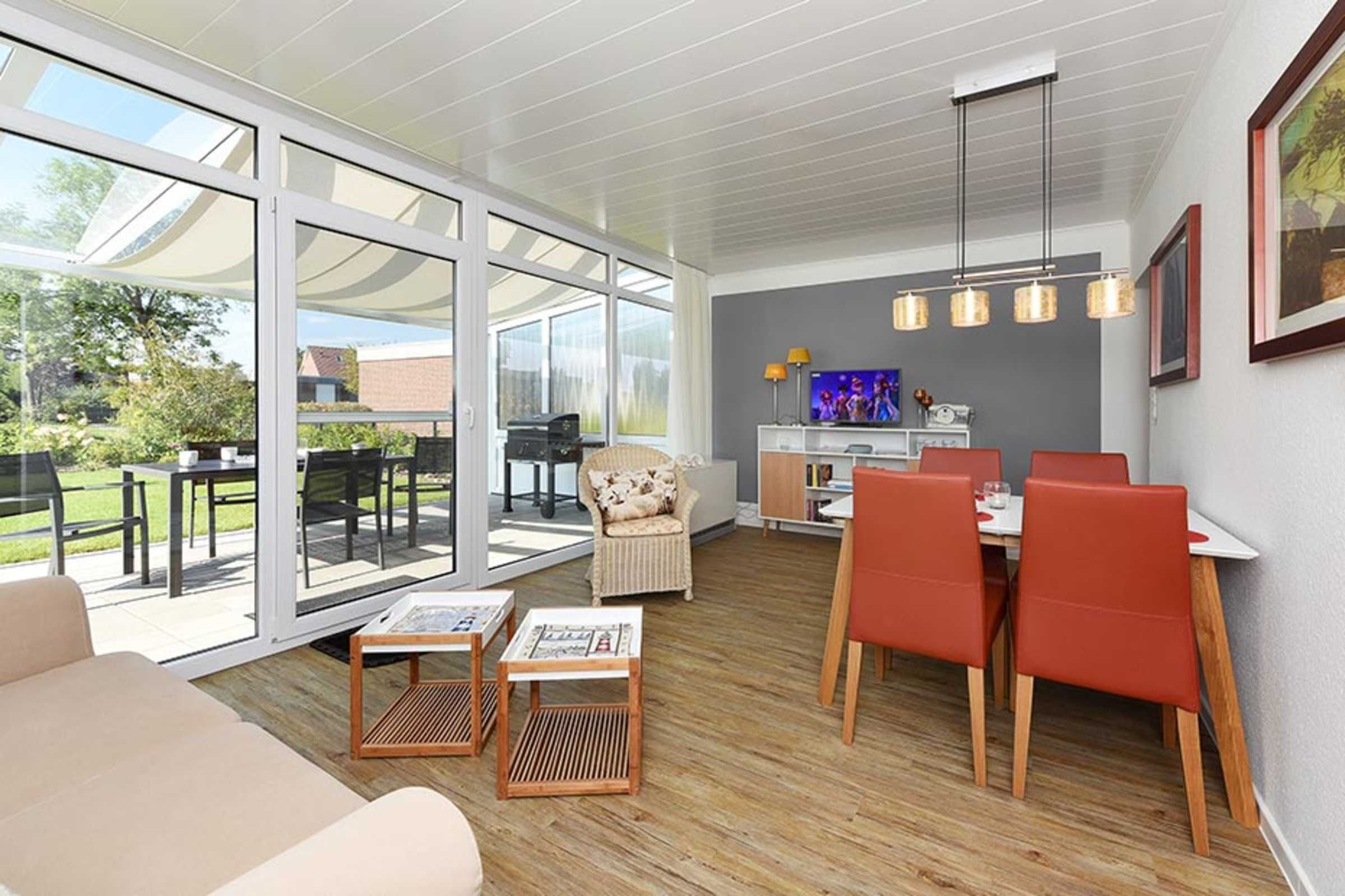 Das Ferienhaus ist ebenerdig im Stil eines Flachdach-Bungalows gebaut. Es ist freundlich-gemütlich gestaltet und aktuell eingerichtet sowie sehr gut ausgestattet mit allem, was Sie für Ihren Nordsee-Urlaub in Bensersiel benötigen werden. Es verfügt über eine Wohnfläche von ungefähr 55 Quadratmetern zuzüglich einer schönen, geschützten wintergarten-artigen Terrasse am Wohnzimmer. Einen Garten gibt es ebenfalls an der Terrassenseite. So ist das Ferienhaus „Meine Perle“ bestens urlaubsgeeignet für eine bis drei Personen.