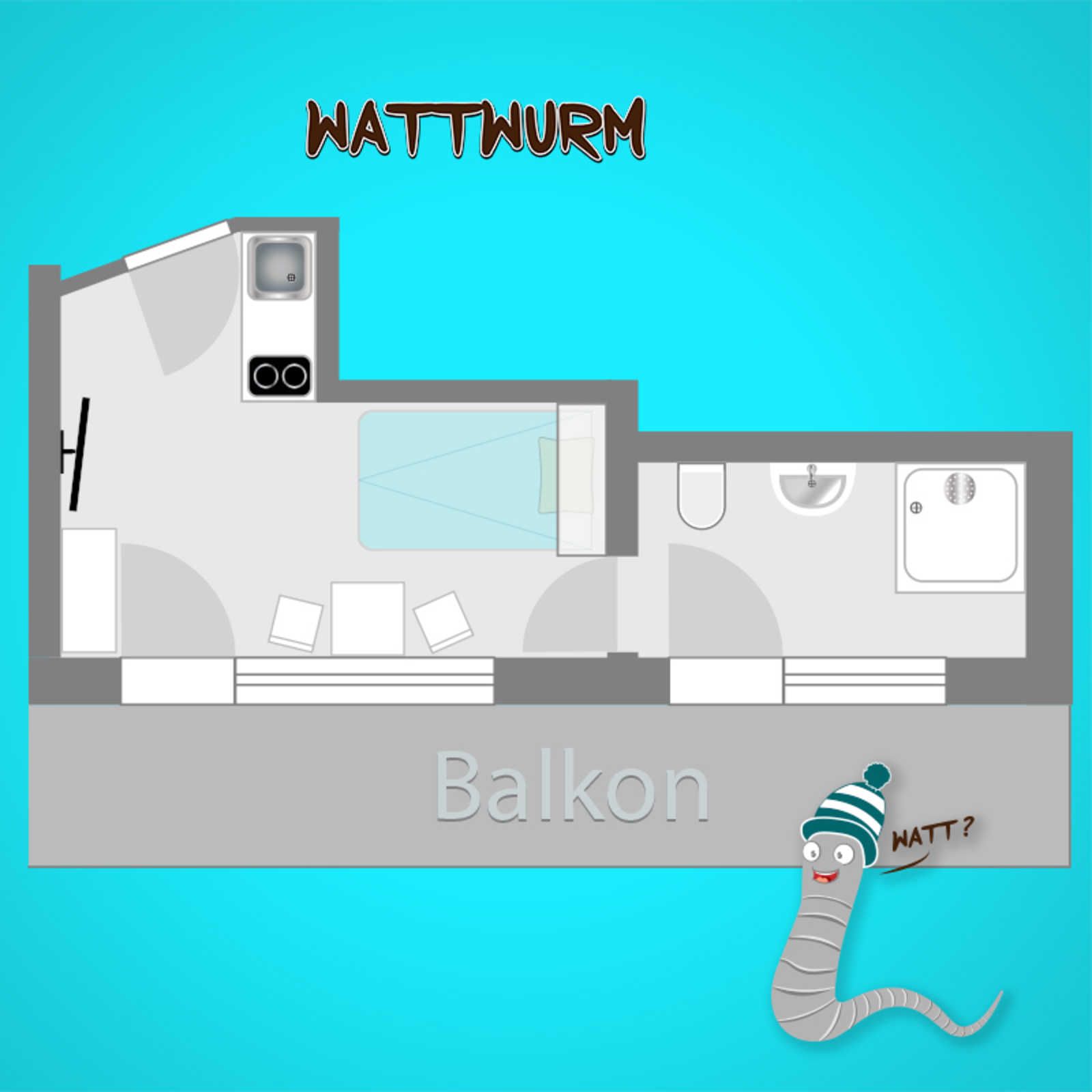 Unser Wattwurm ist eine schicke, kleine Ferienwohnung mit großzügigem Balkon. Der Wattwurm verfügt über alles, was das Urlauberherz begehrt.