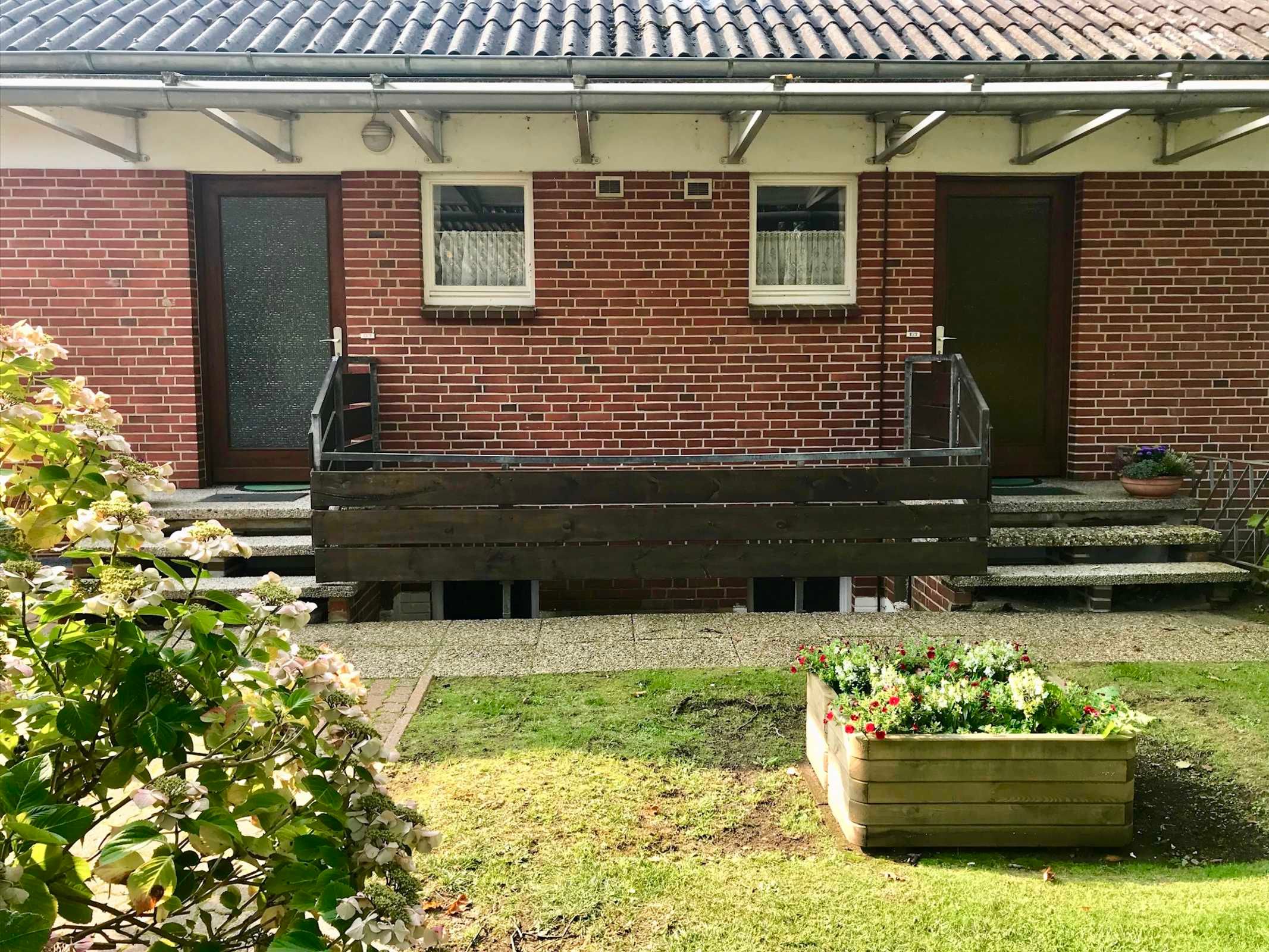 Zu dieser Wohnung gehört eine Terrasse  mit Strandkorb.