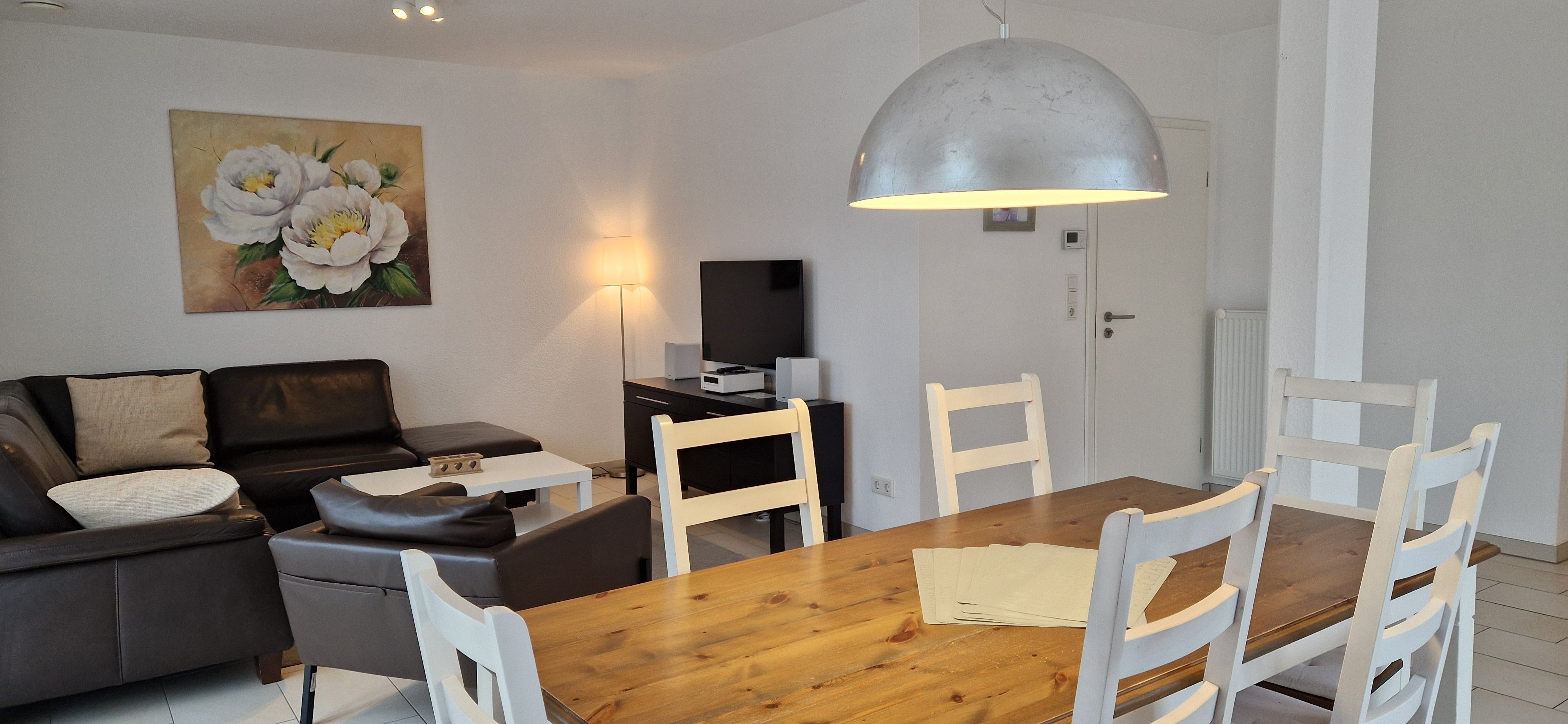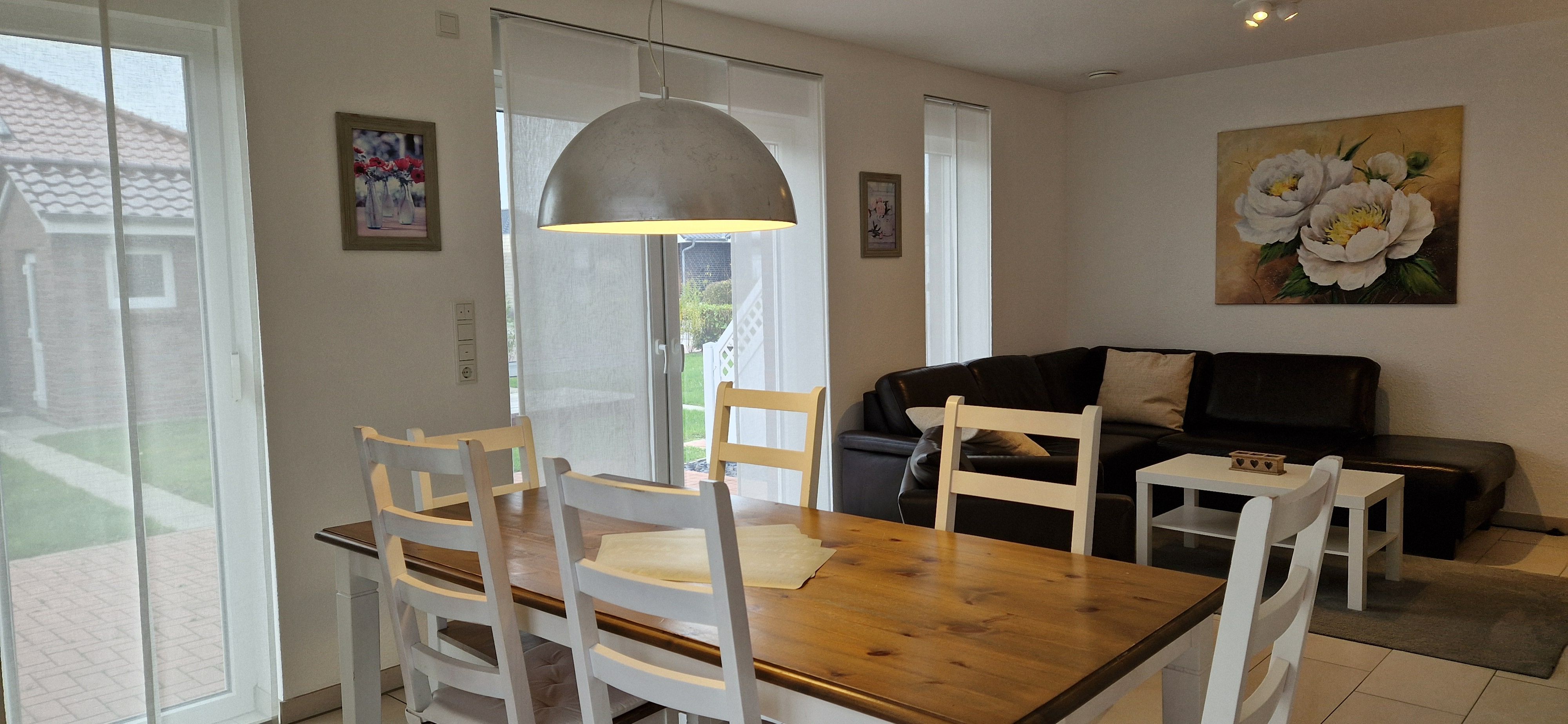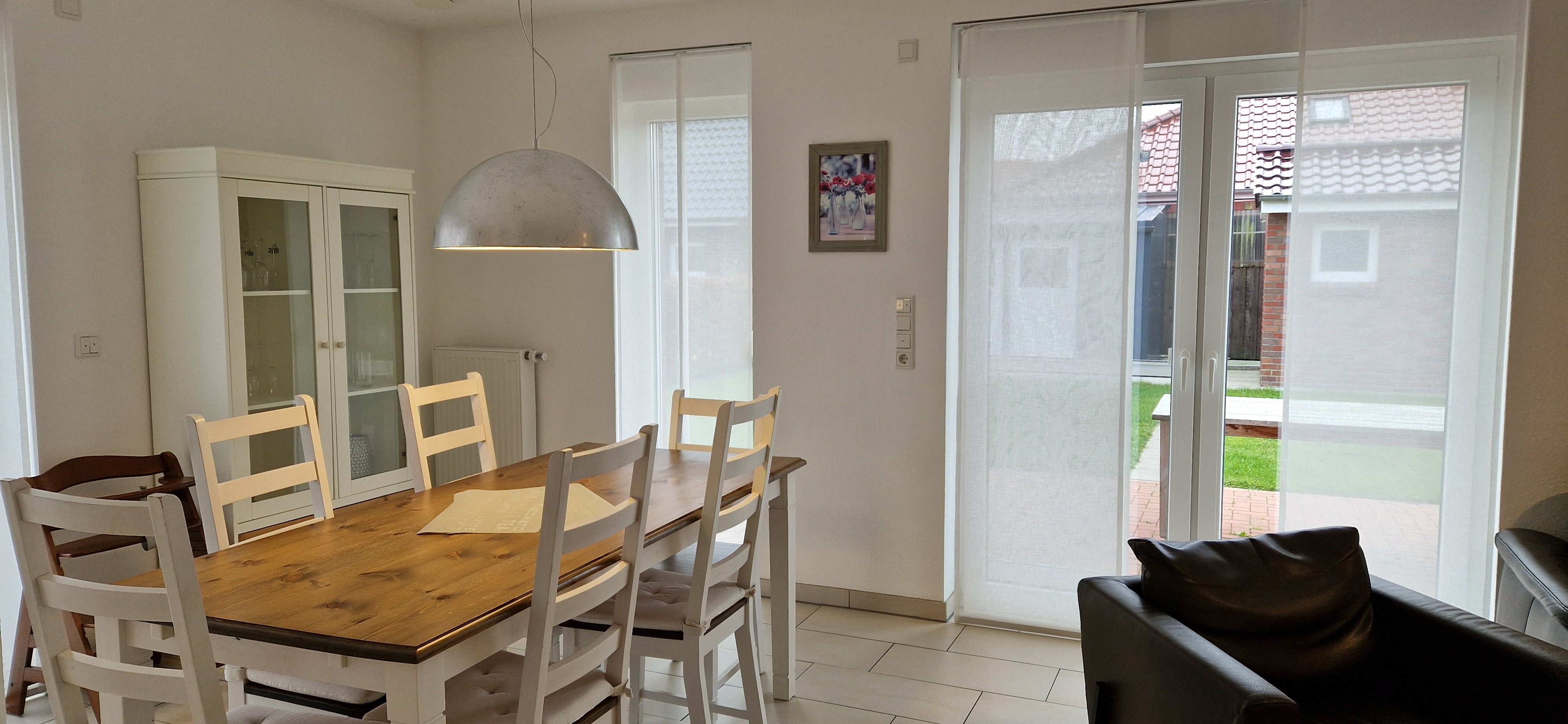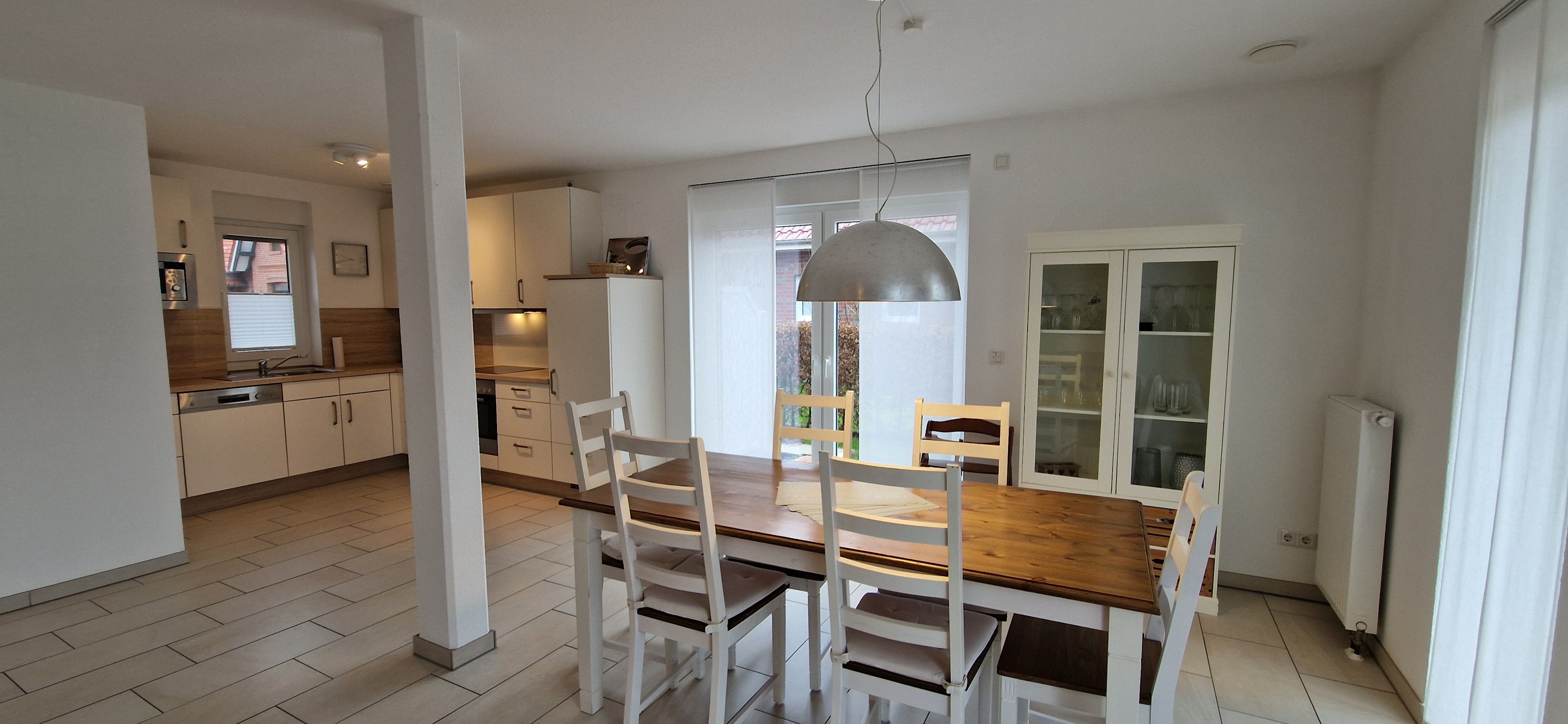 Diese schöne und neuwertige Doppelhaushälfte liegt weniger als 10 Gehminuten vom Ortskern entfernt in einem Neubaugebiet von Carolinensiel. Die zwei Sonnenterrassen des Ferienhauses (in Süd- und Ost-Ausrichtung) mit Garten laden zum Erholen und zu gemütlichen Abenden mit der ganzen Familie ein. Des Weiteren steht Ihnen ein Parkplatz direkt am Haus sowie ein Abstellraum für ihre Fahrräder zur Verfügung.