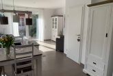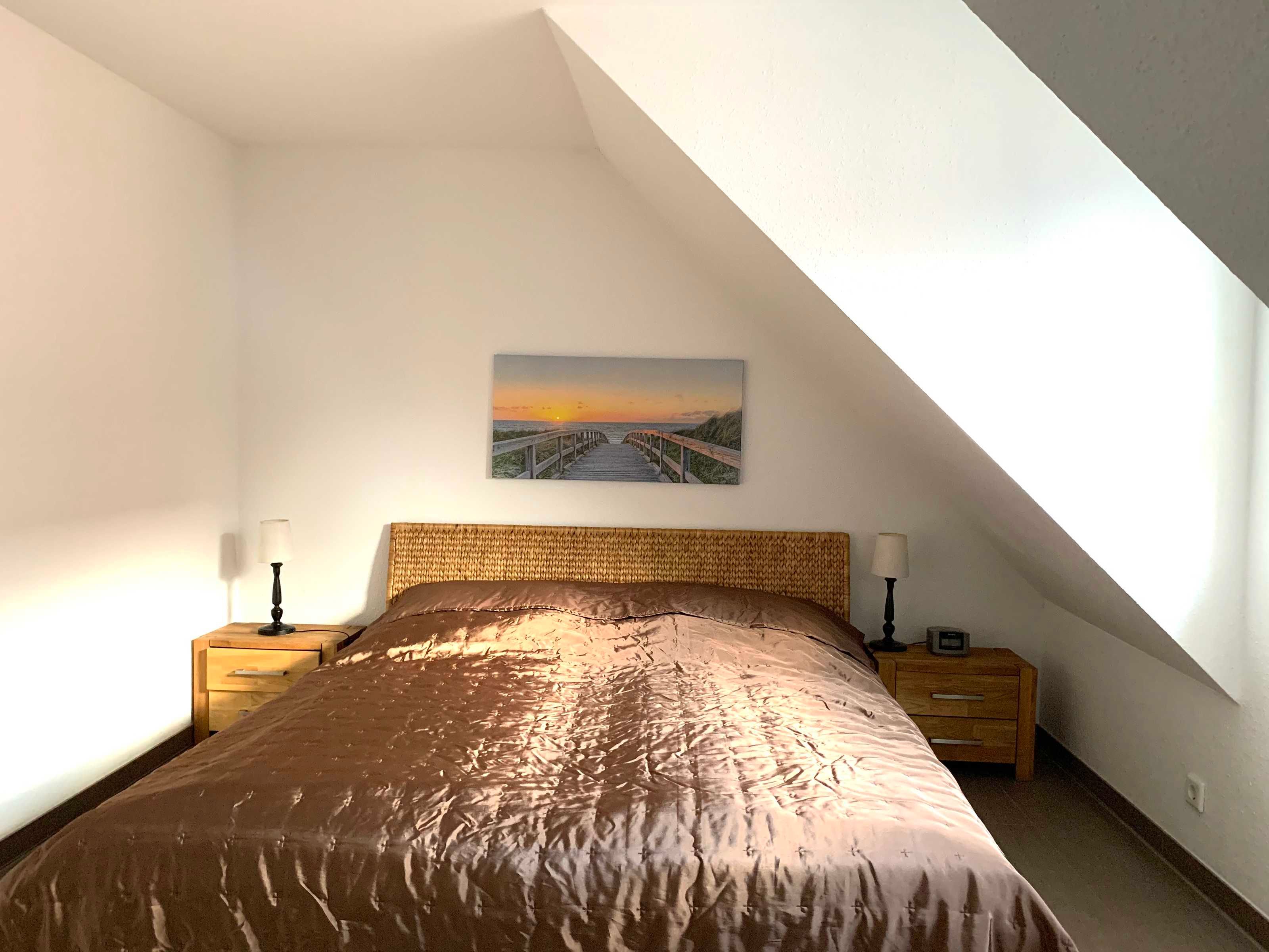 Im Erdgeschoss befinden sich ein großzügiger Bereich für Essen, Kochen und Wohnen. Zusätzlich sind ein Gäste-WC, sowie ein Abstellraum vorhanden. Im Obergeschoss befinden sich zwei Schlafzimmer (ein Schlafzimmer mit einem Doppelbett und ein Schlafzimmer mit zwei Einzelbetten) und ein weiteres großzügiges Bad mit Dusche. Das Ferienhaus ist allergikerfreundlich, da es komplett gefliest ist. Hochwertige Ausführung, familiengerechte Aufteilung und attraktive Ausstrahlung sorgen dabei für entsprechende Wohnqualität.