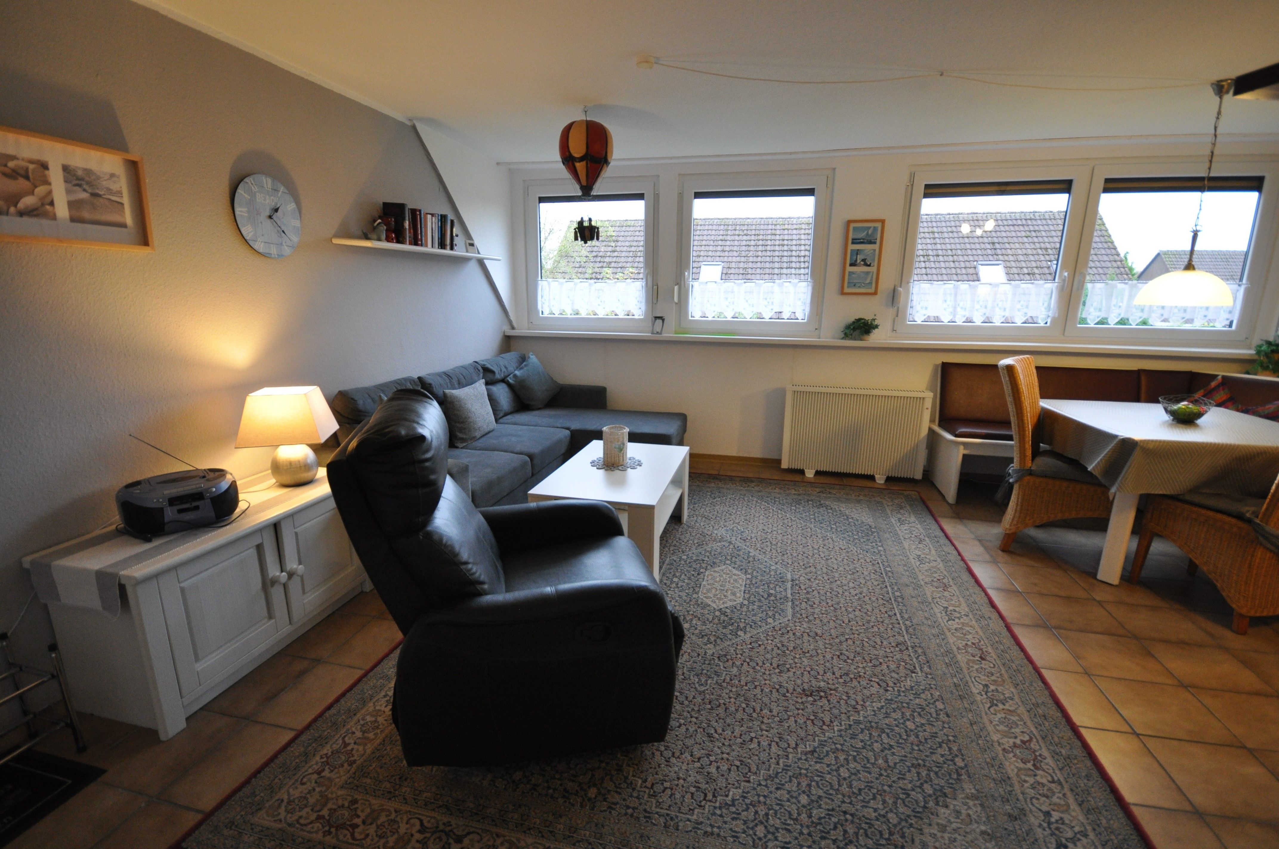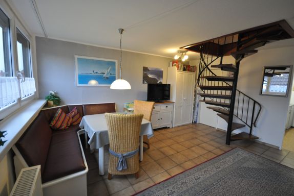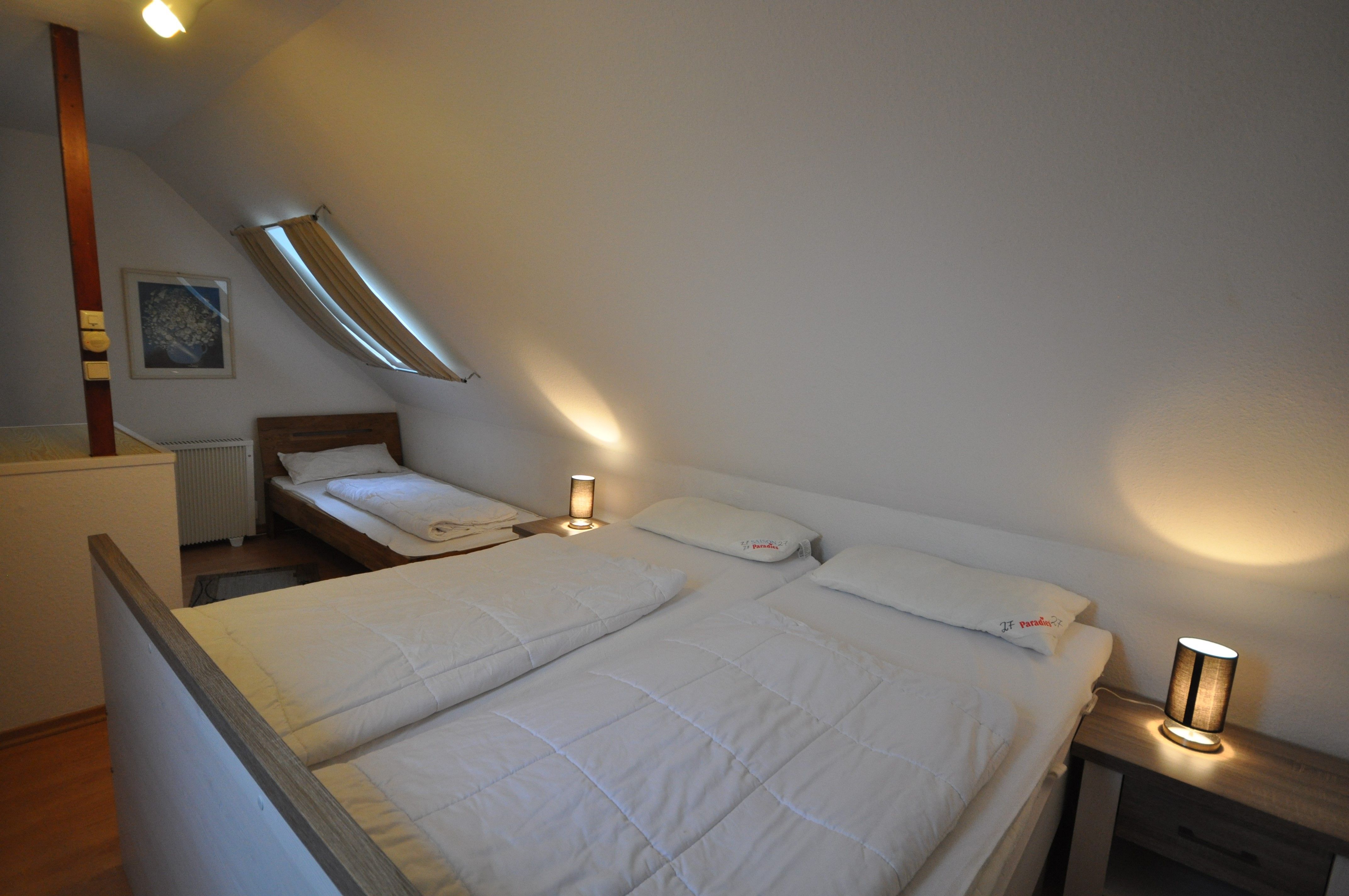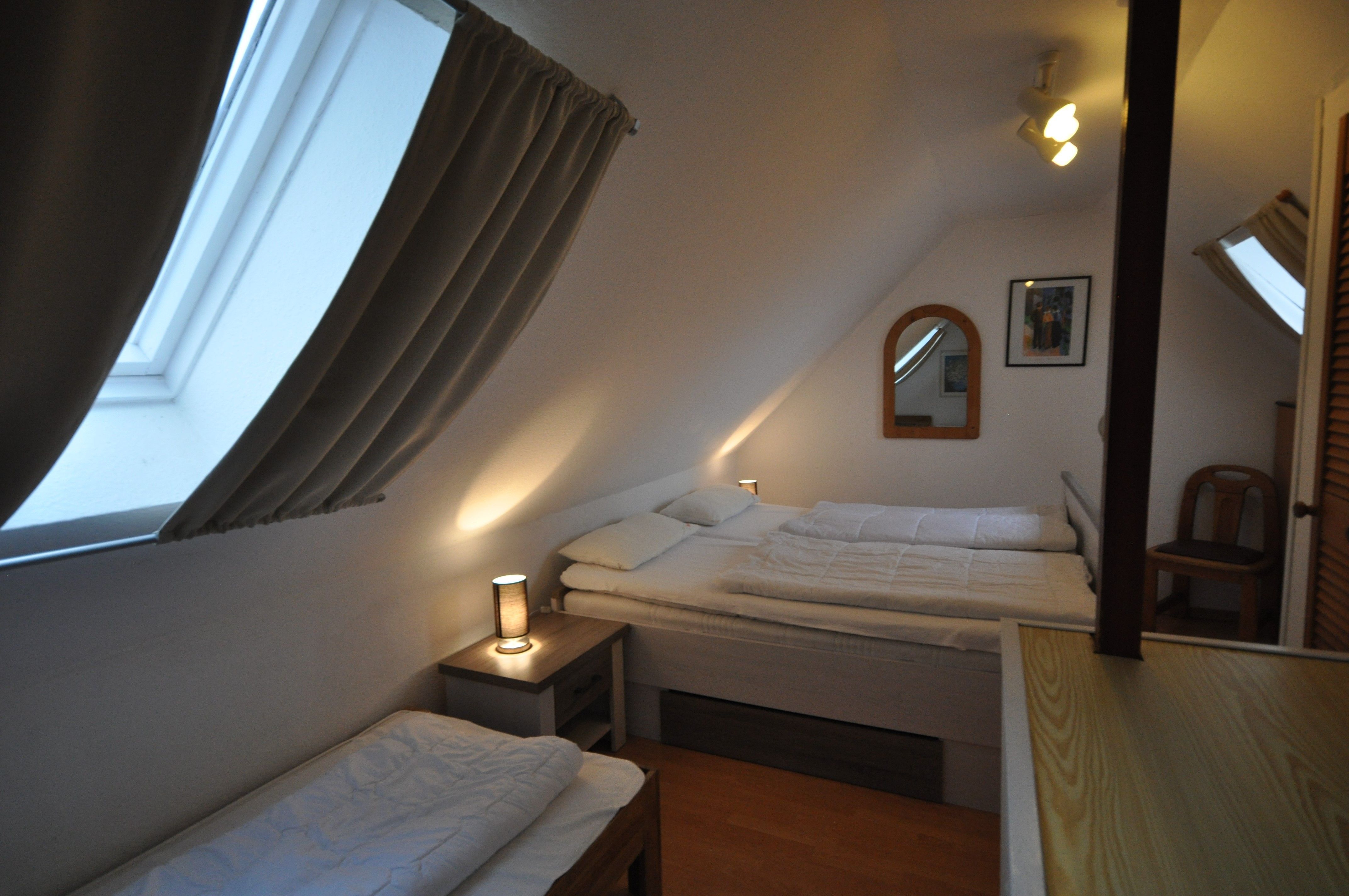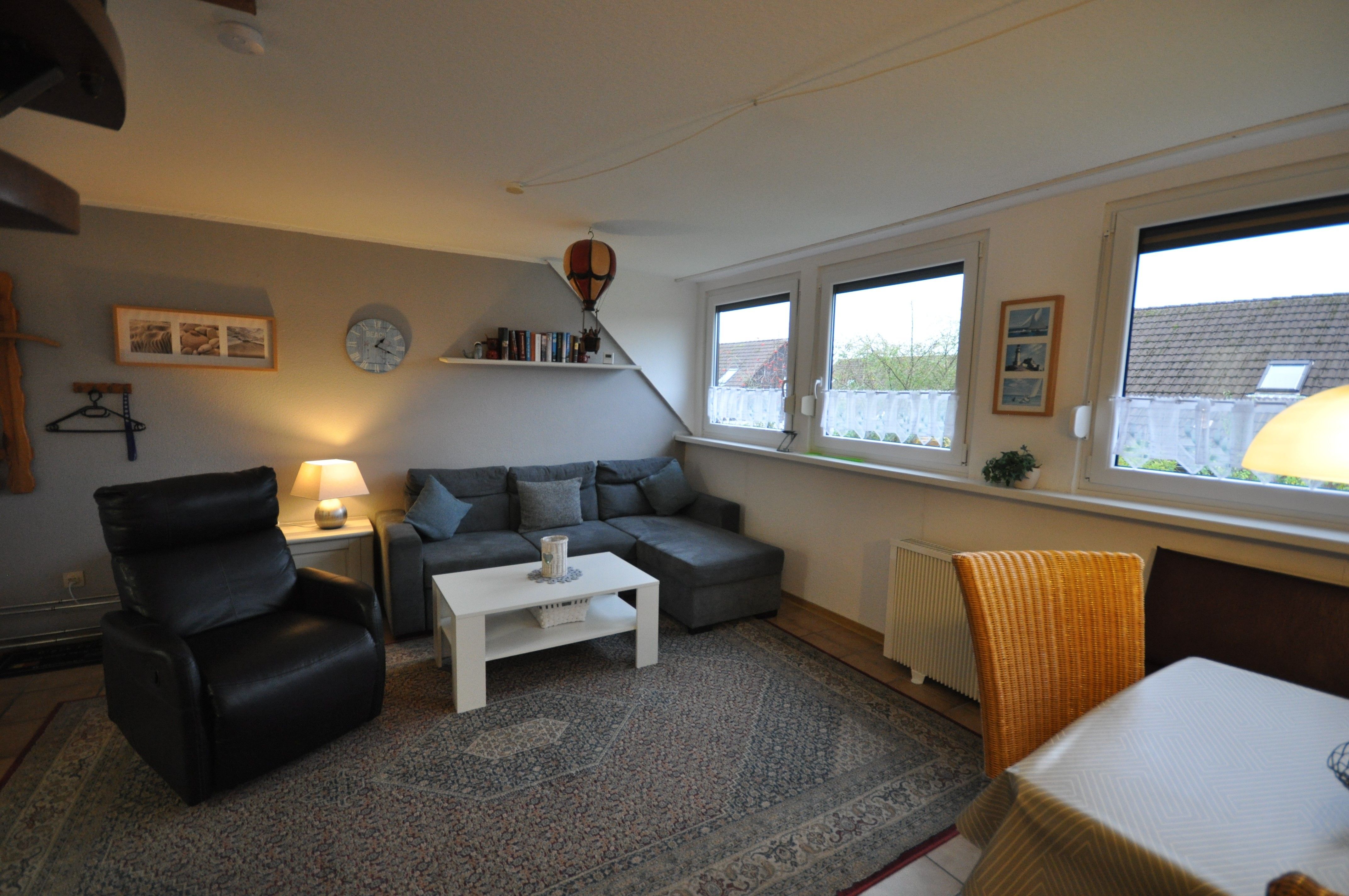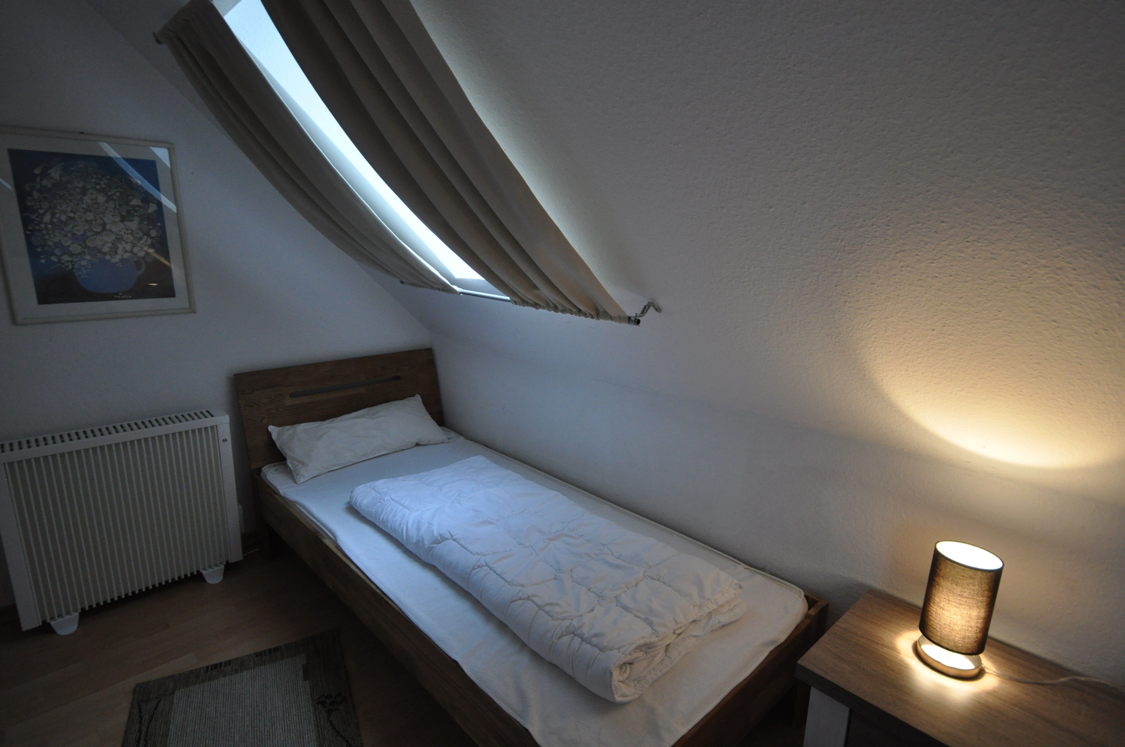 Die geschmackvoll eingerichtete Maisonette-Wohnung befindet sich in der 1. Etage und verfügt über ein Wohnzimmer, eine separate Küche, sowie ein Badezimmer mit Dusche und WC. Eine Spindeltreppe führt in ein geräumiges Schlafzimmer, in dem sich ein Doppelbett und ein Einzelbett befinden. Daher ist die Wohnung für eine Belegung mit maximal 2 Erwachsenen und einem Kind bis 12 Jahren zulässig. Für Fragen stehen wir Ihnen gerne zur Verfügung. Alle Fenster sind mit Rollläden bzw. Verdunkelungsvorhängen ausgestattet. Ebenso steht WLAN zur kostenlosen Nutzung für Sie bereit.