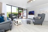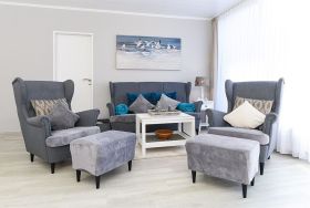 Das Ferienhaus ist sehr geräumig und gemütlich und es bietet allen Komfort einer modernen Ferienwohnung, eine hervorragende Ausstattung und z. B. eine schöne möblierte Terrasse an einem eigenen Garten mit Liegewiese. Das Haus hat ungefähr eine Wohnfläche von 65 Quadratmetern und bietet hervorragende Bedingungen für Paare oder Familien mit zwei bis vier Personen.