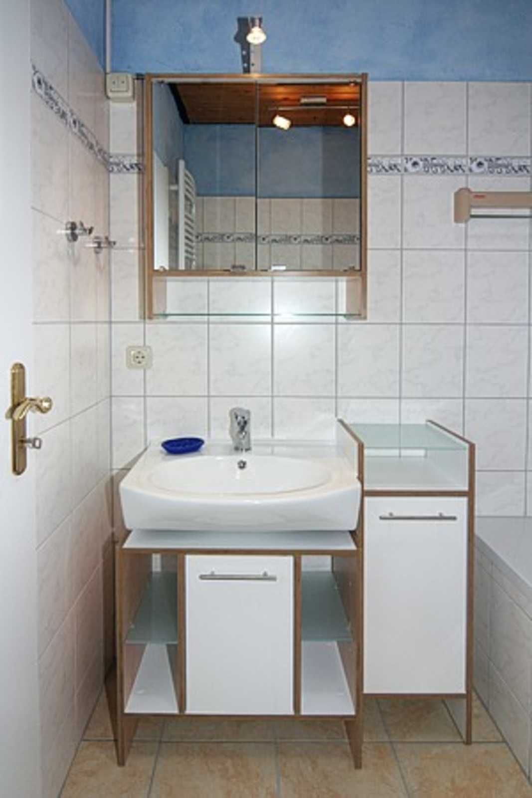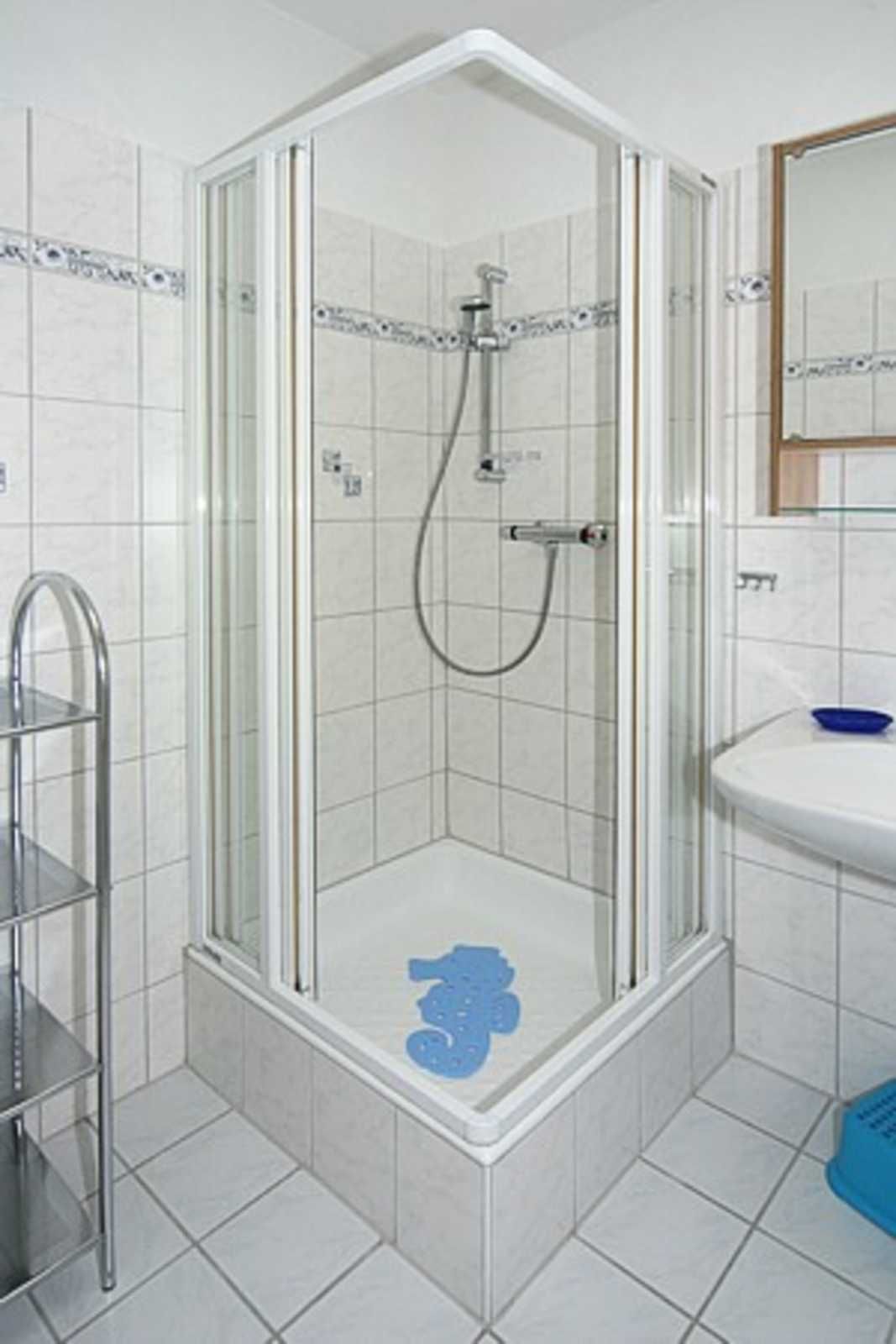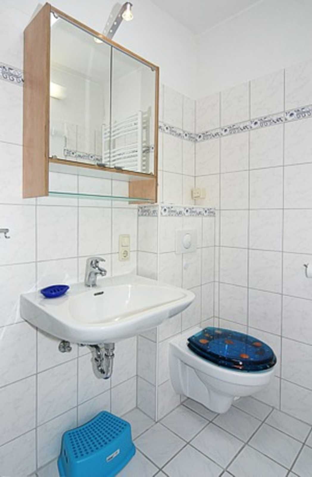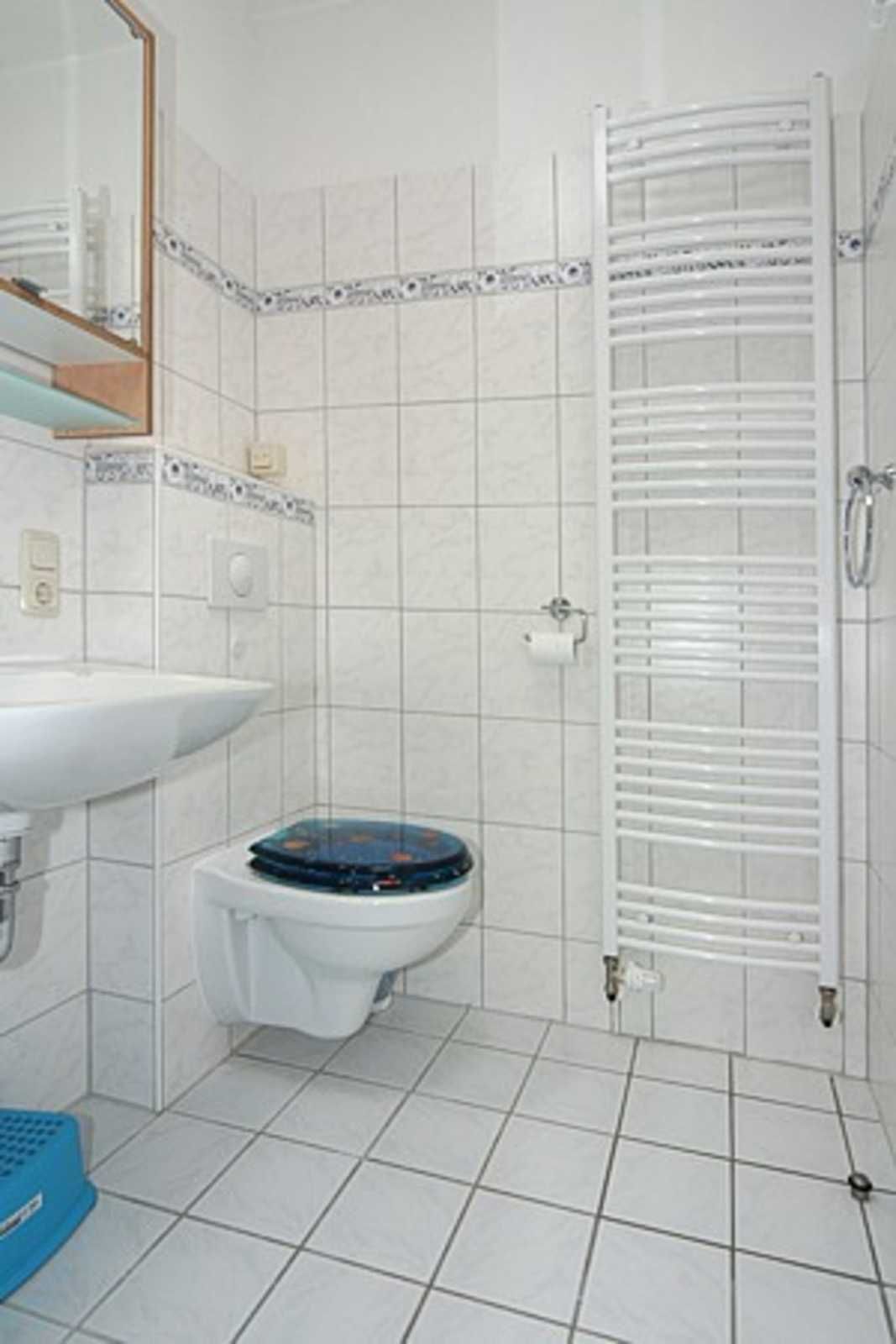 zweites Badezimmer mit Dusche, Waschtisch und WC