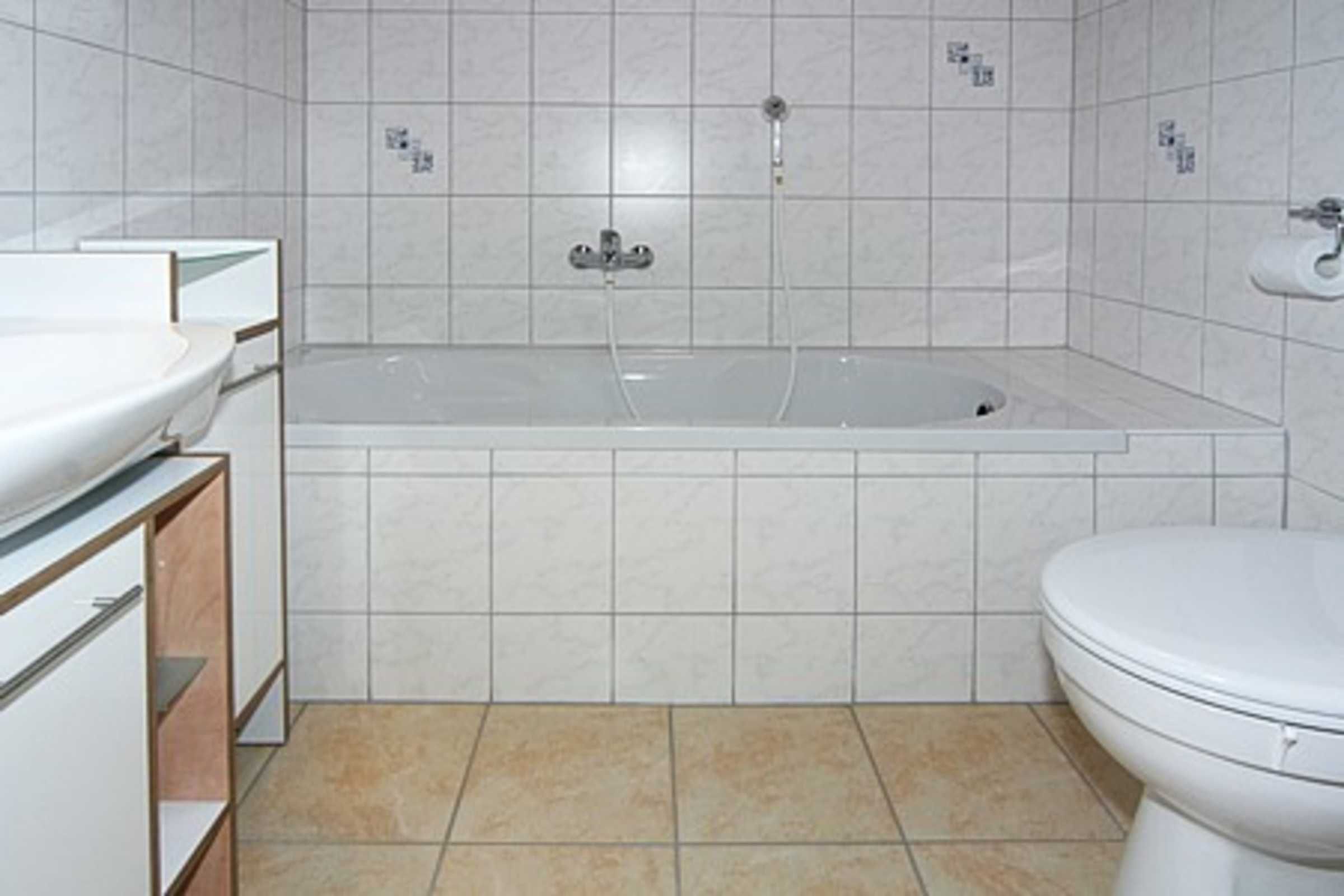 Badezimmer mit Badewanne und WC