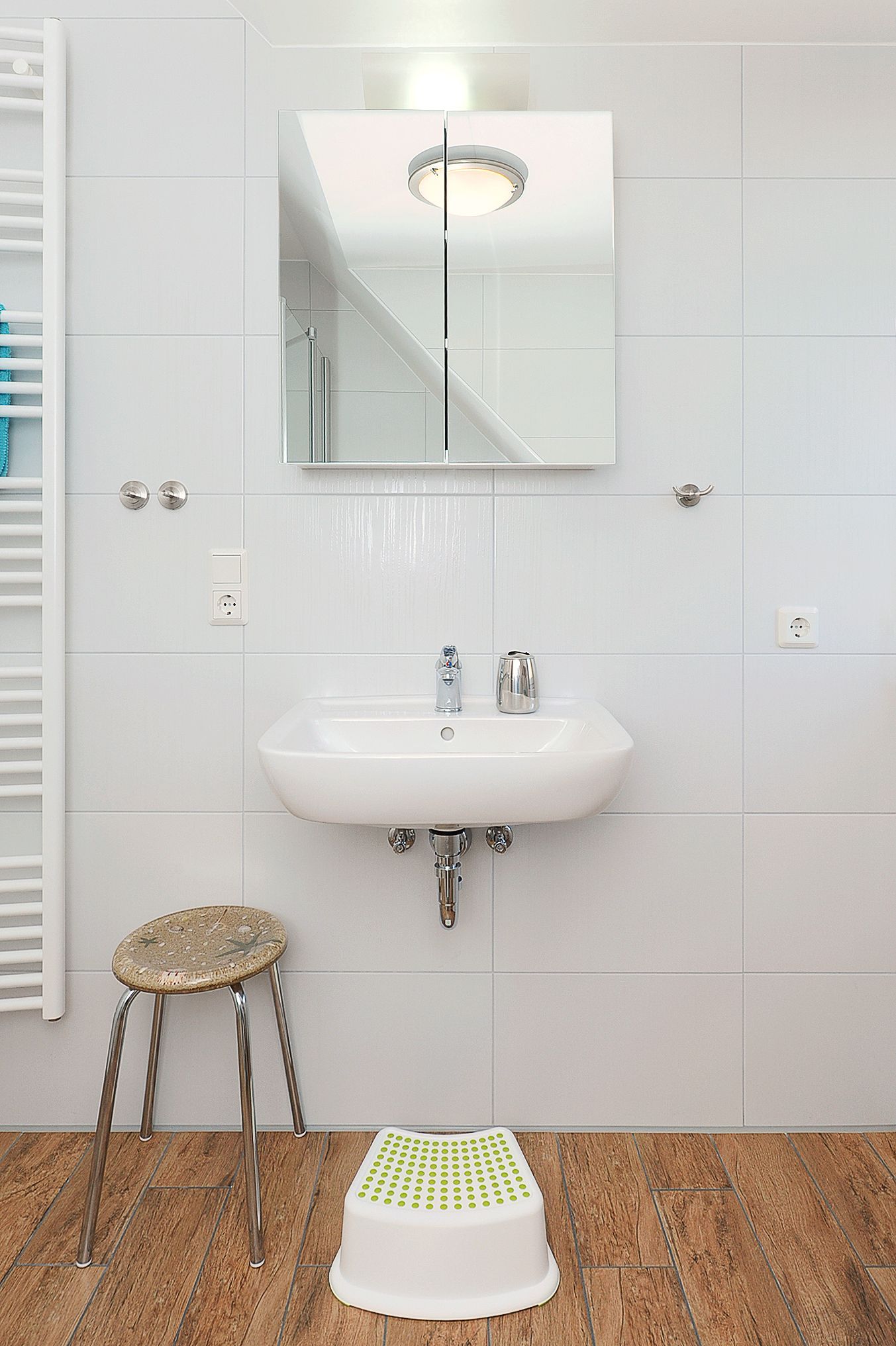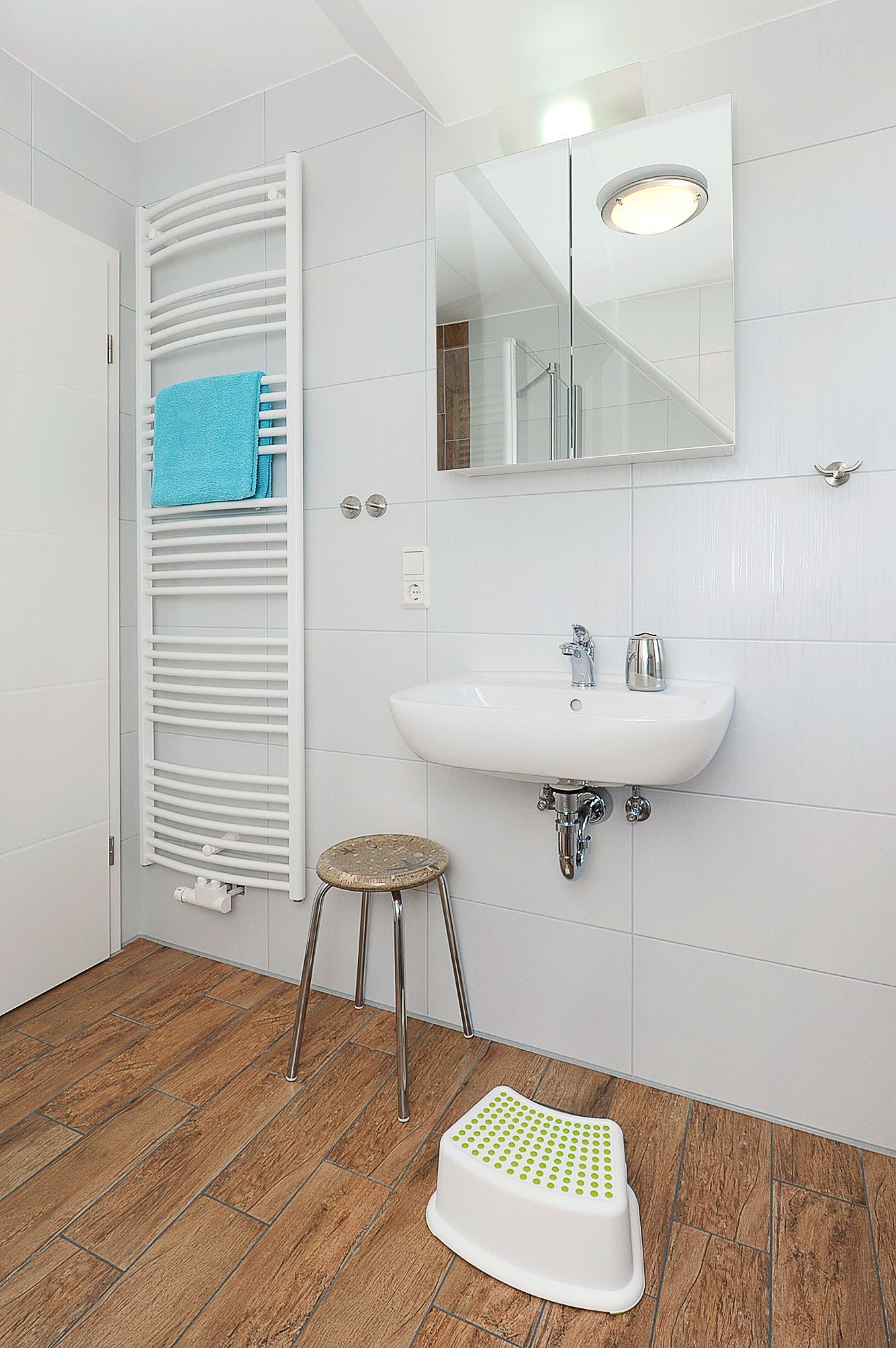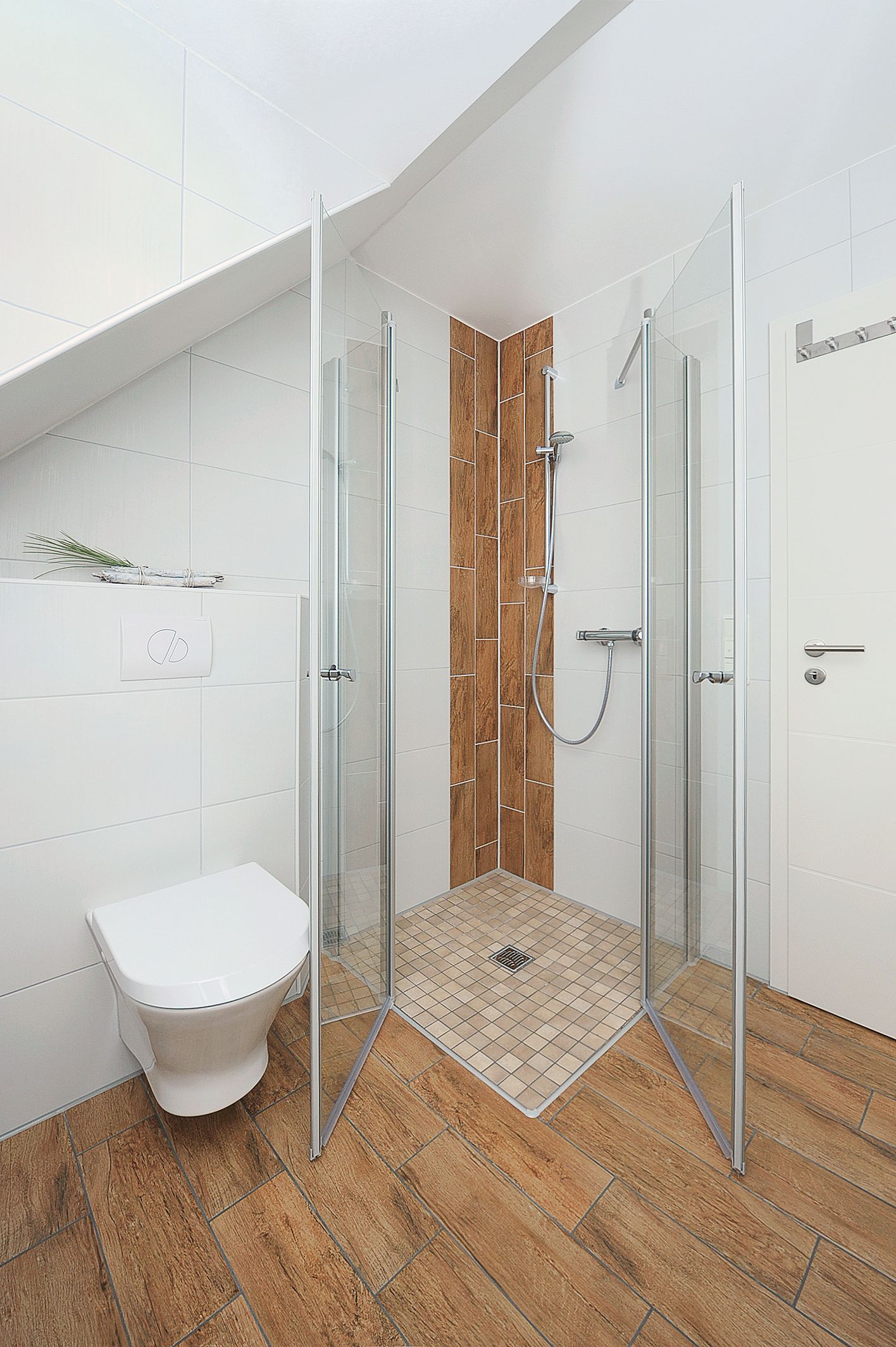 Badezimmer mit Dusche, Waschtisch und WC