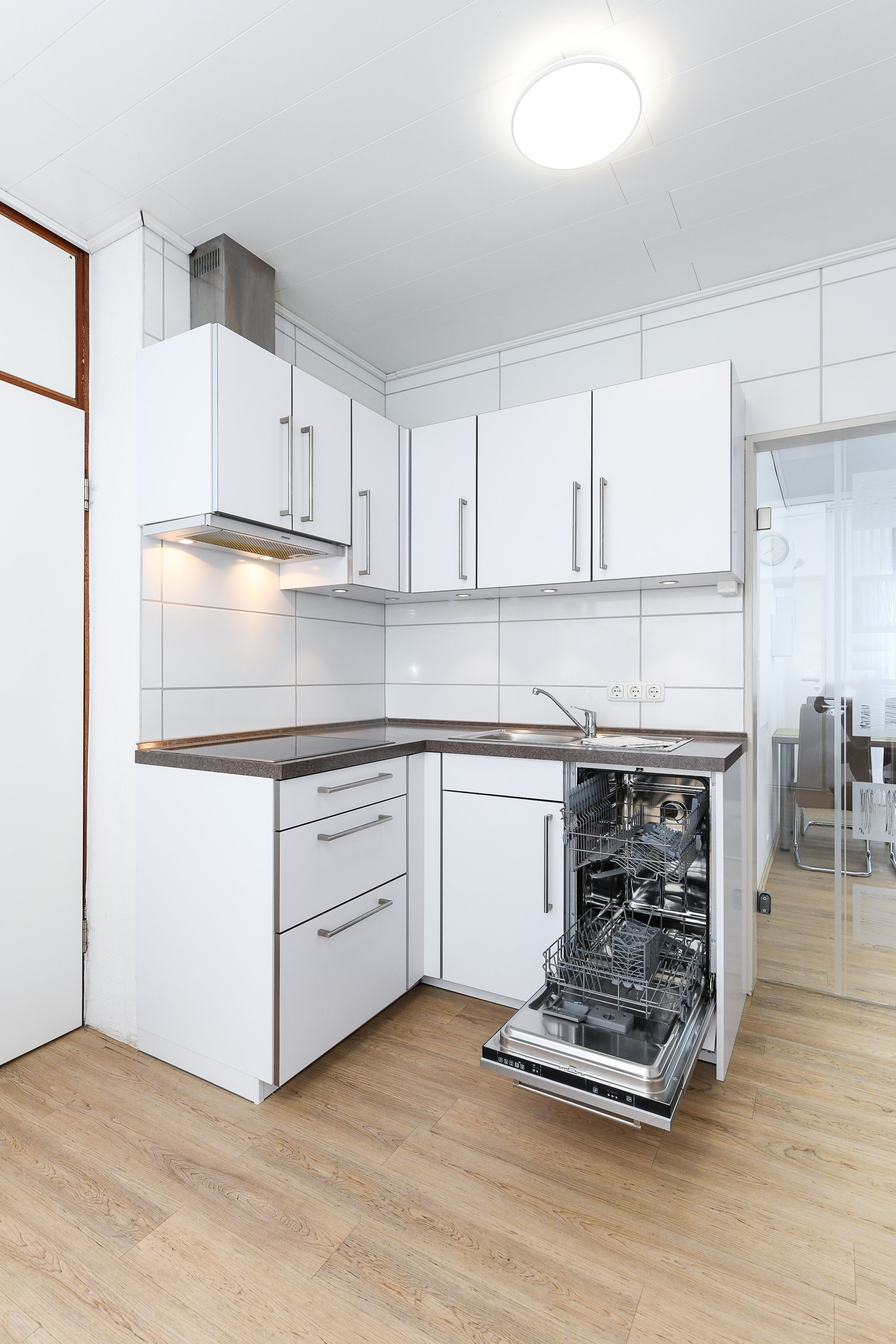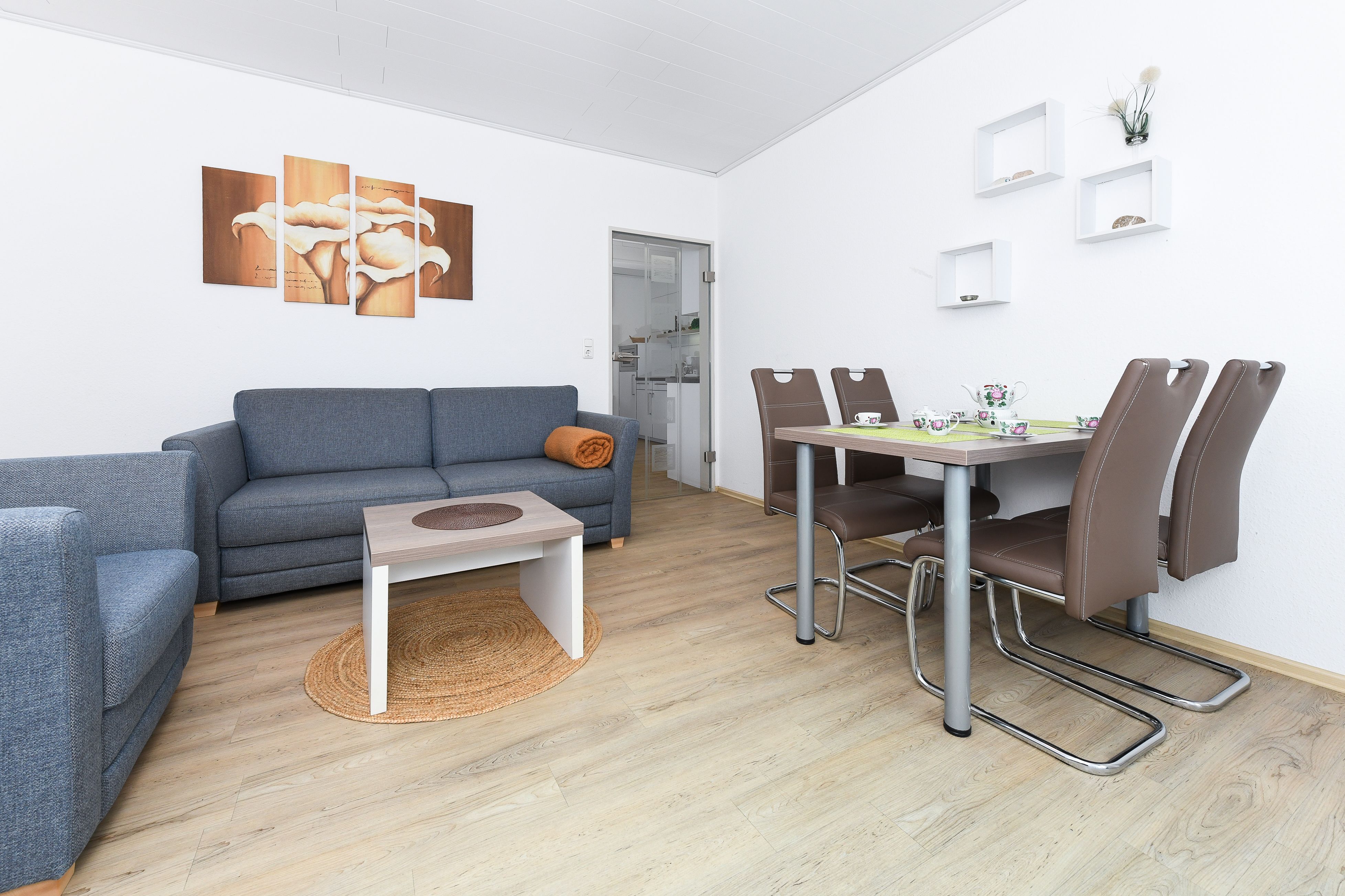 Wohnraum mit separatem Küchenteil bei offener Raumgestaltung