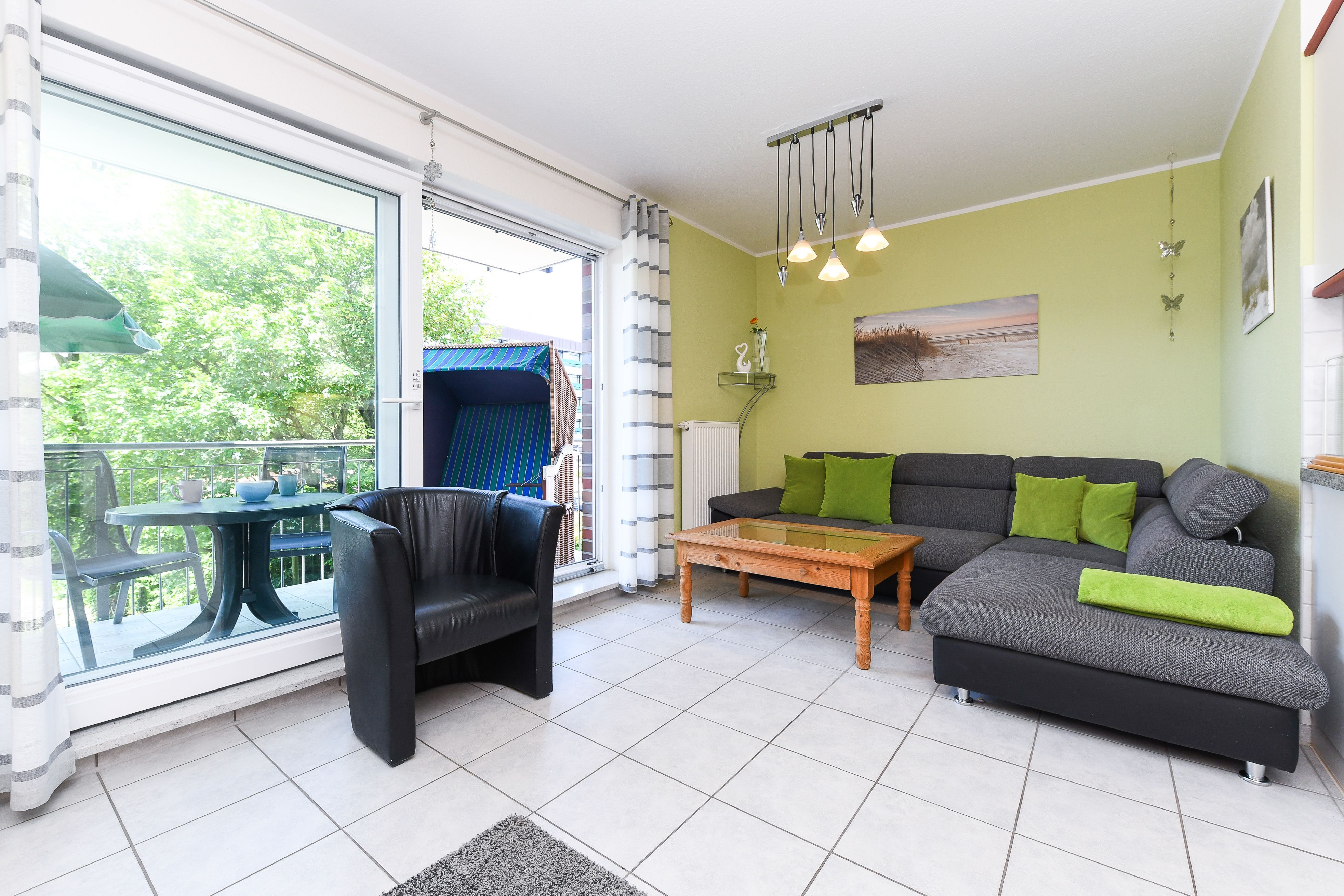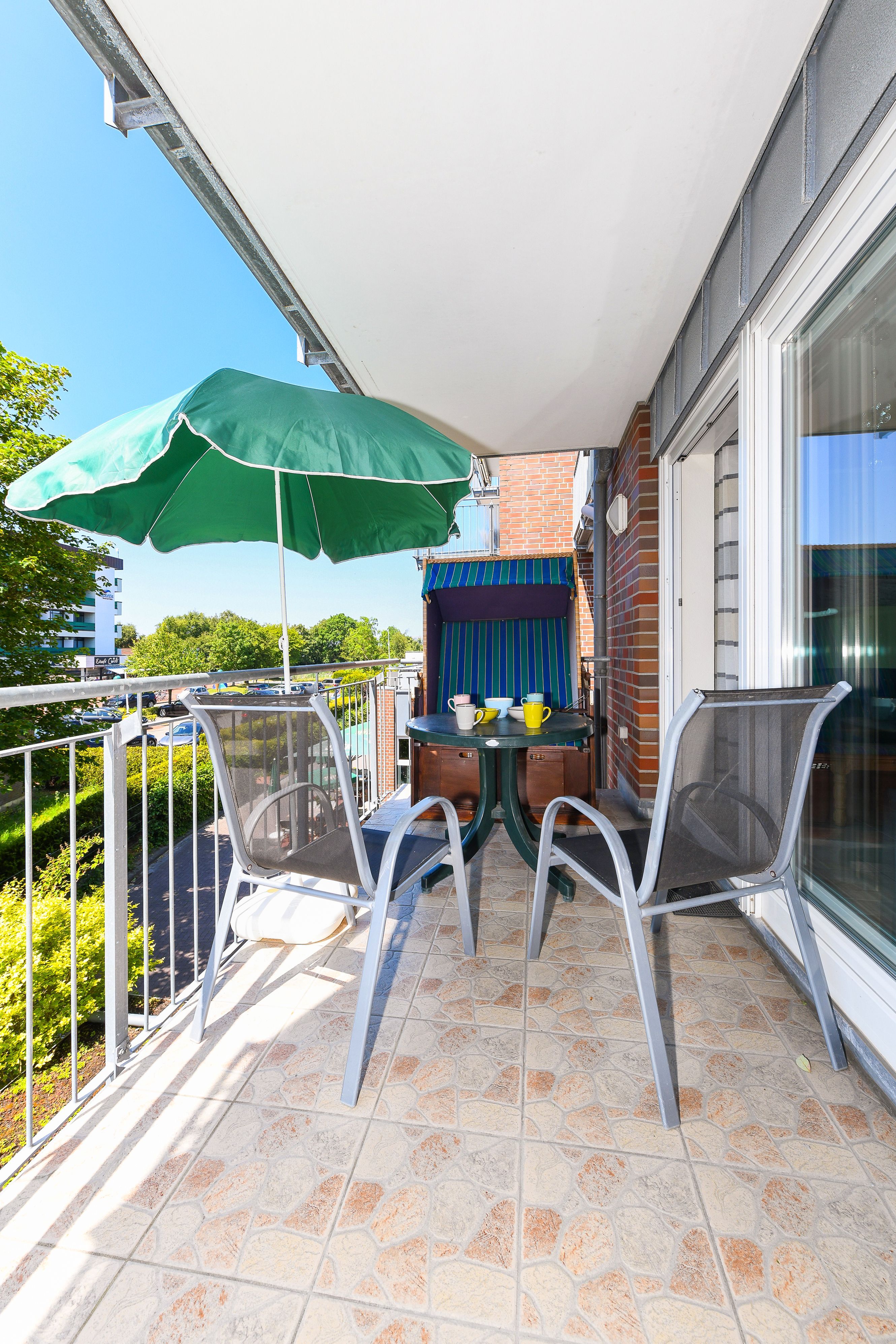 Balkone gibt es in allen Wohnungen, fast alle verdienen das Prädikat Balkonterrasse, denn sie sind groß und mit schönen Gartenmöbeln ausgestattet und sie sind windgeschützt angelegt und teilweise verfügen sie sogar über einen Strandkorb.