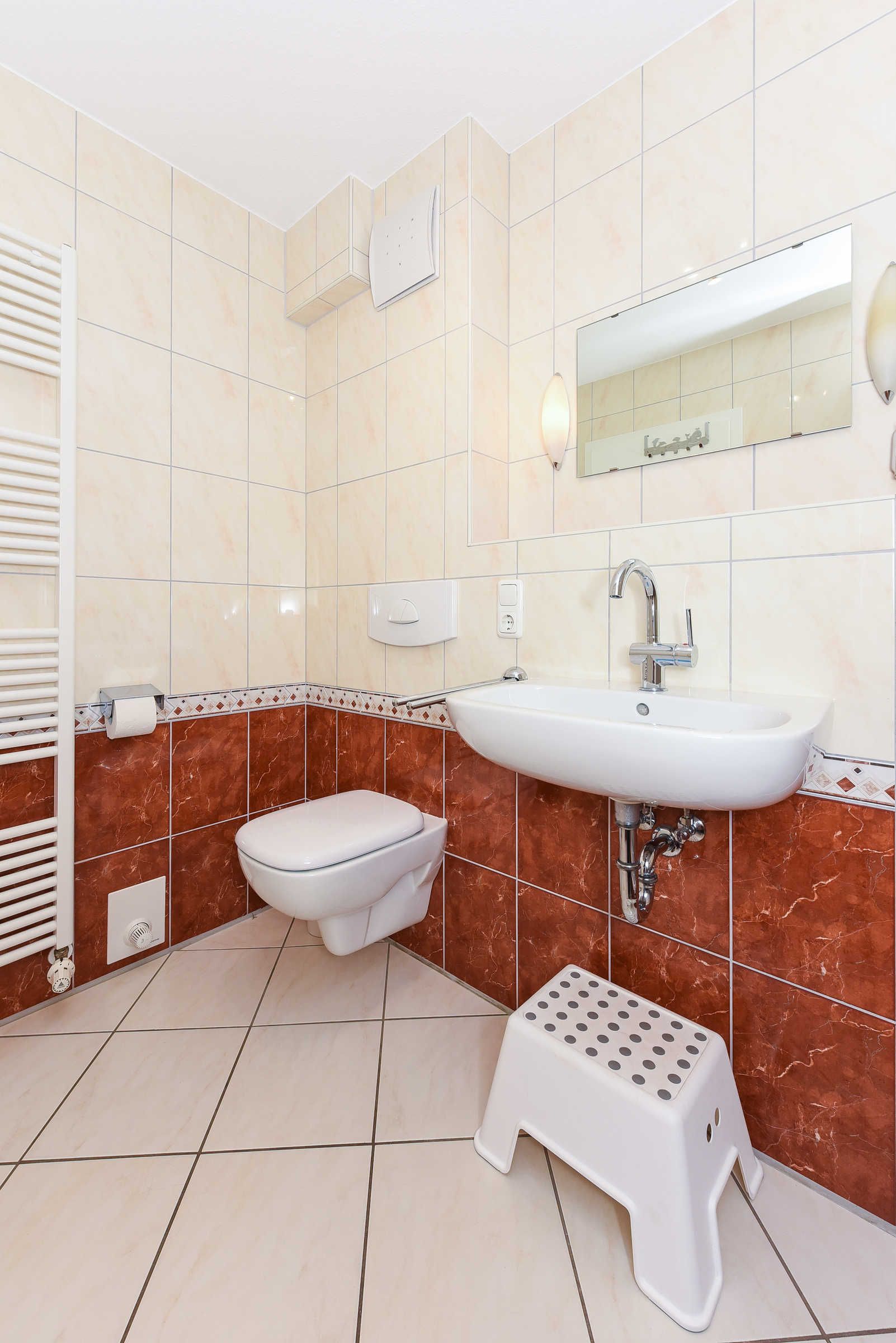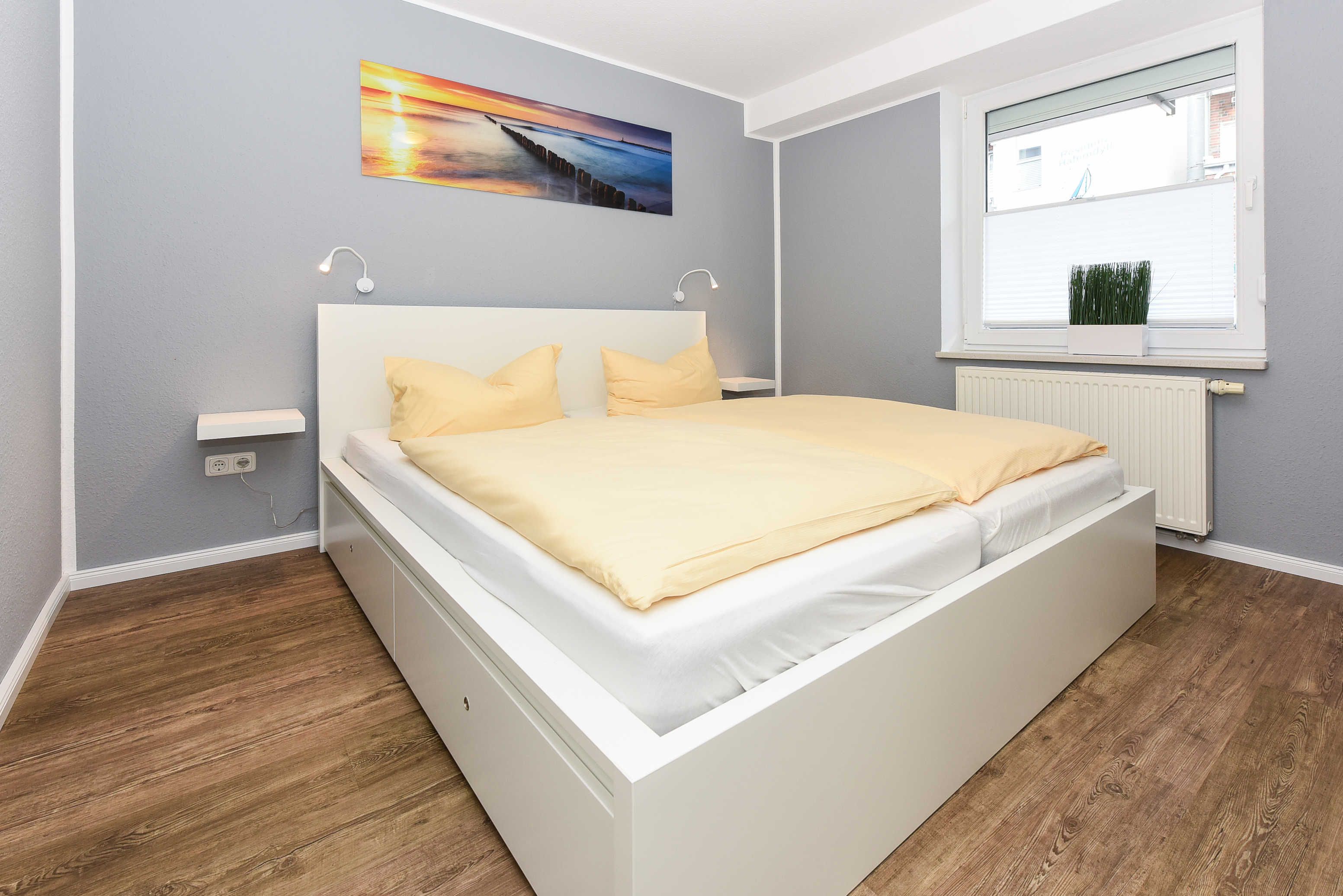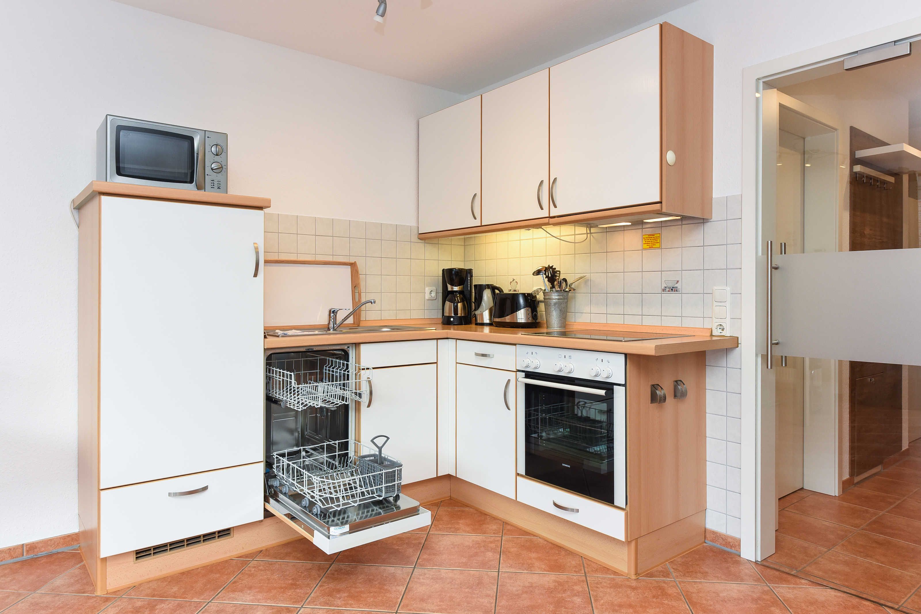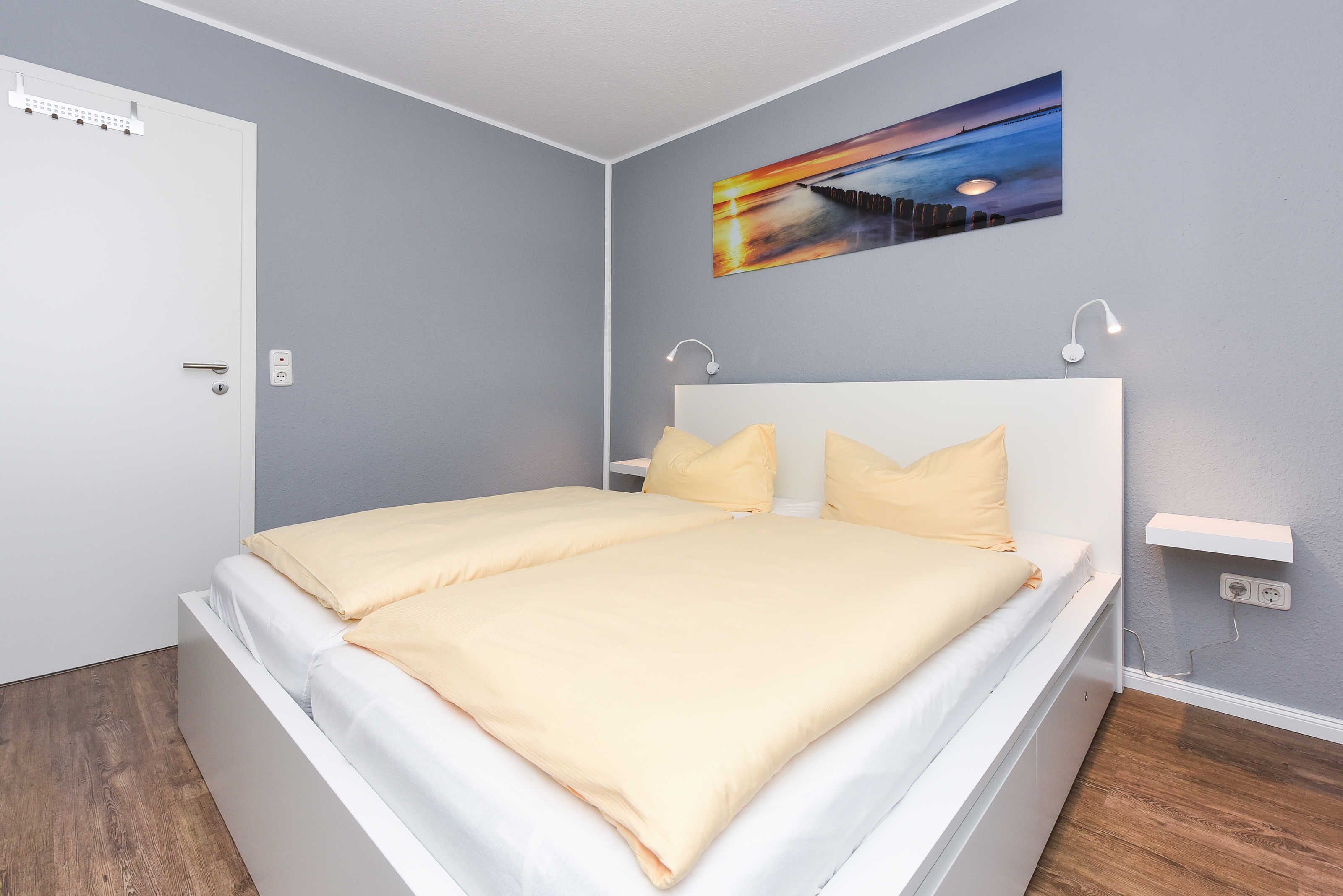 Jede Wohnung ist ausgestattet mit zwei bis drei Schlafzimmern mit je ein bis zwei Betten, eines dieser Zimmer ist natürlich jeweils auch als Kinderzimmer nutzbar und entsprechend vorbereitet. Die Ferienwohnungen haben moderne große Badezimmer, hervorragend ausgestattete Einbauküchen sowie jeweils eine große Terrasse. Unsere Gäste parken in der Tiefgarage und gelangen mit dem Aufzug in das Erdgeschoss. Treppen steigen ist also nicht nötig (nur zu einer einzelnen Wohnung sind einige wenige Treppenstufen zu steigen).