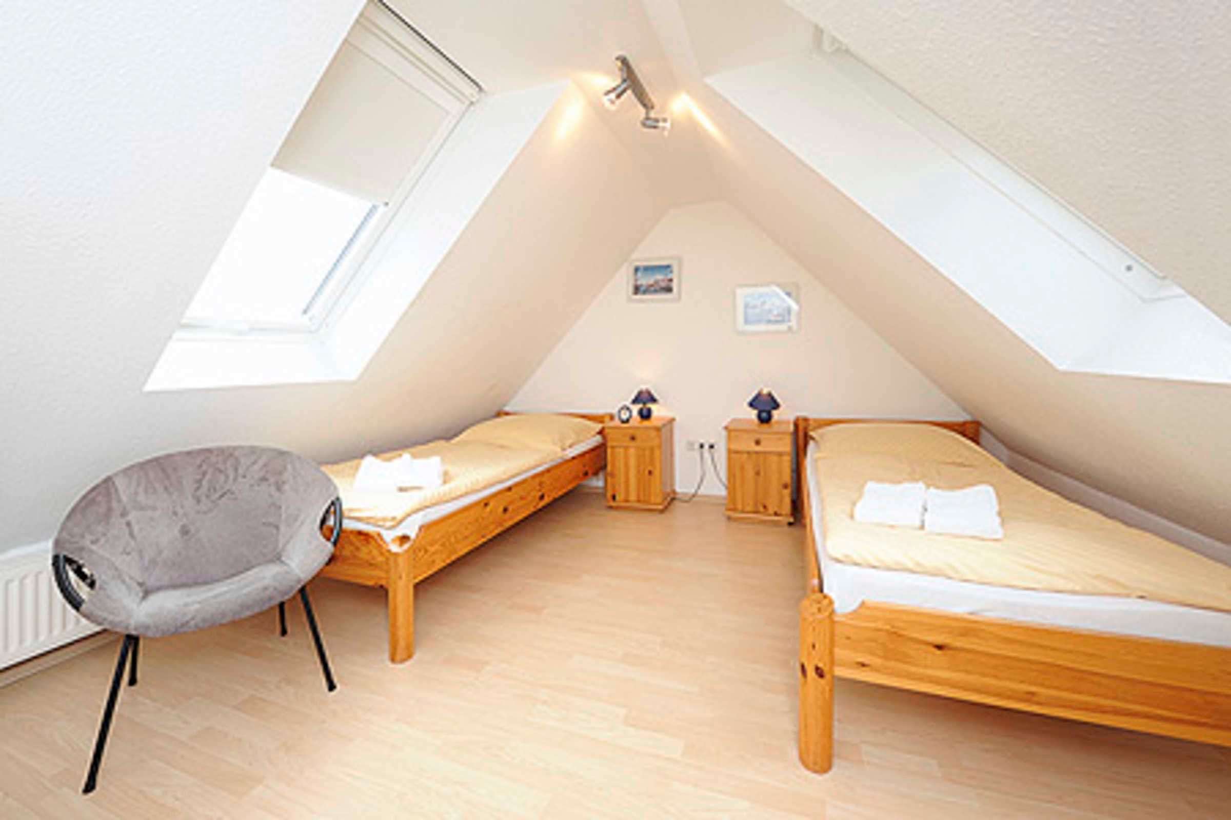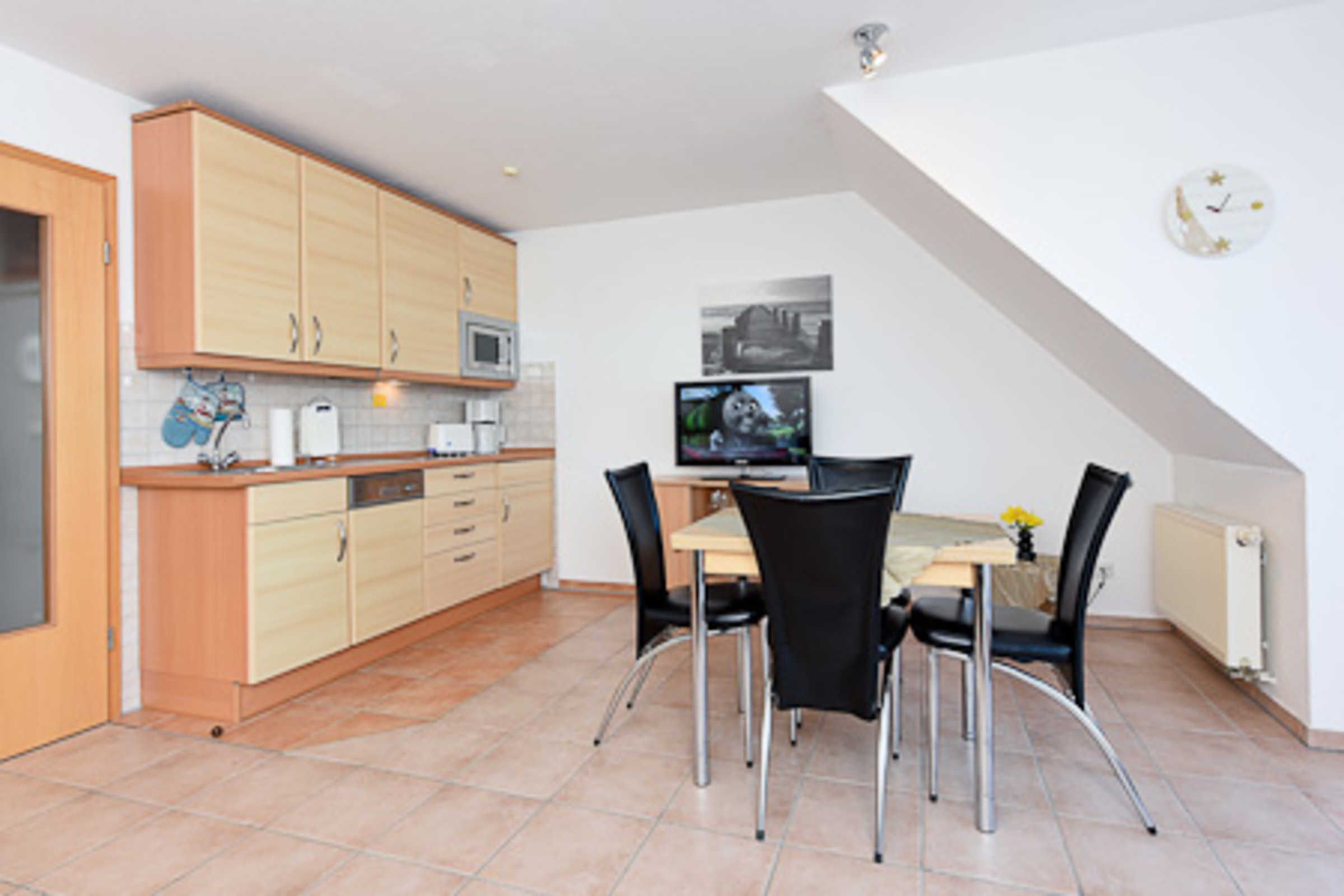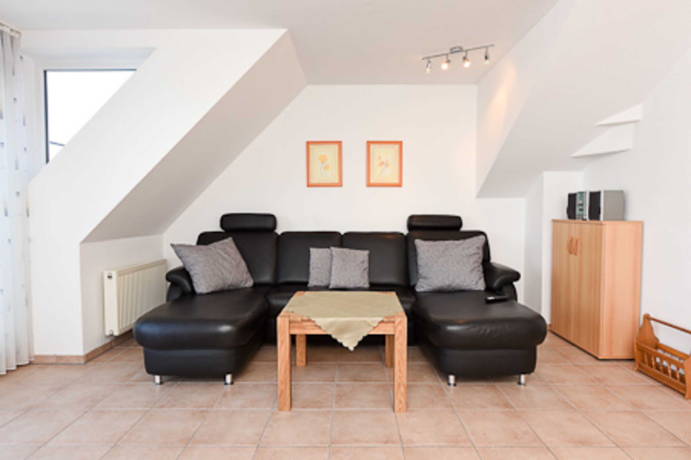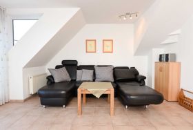 Die Wohnung befindet sich im 4. Obergeschoss des Nordseegartenparkes; vom Balkon aus haben Sie einen herrlichen Blick auf die Nordsee. Die Räume sind über zwei Wohn-Ebenen verteilt. Im zweiten Schlafzimmer, das sich im Dachstudio befindet, ist ein zweiter Fernseher untergebracht.
