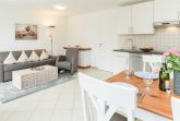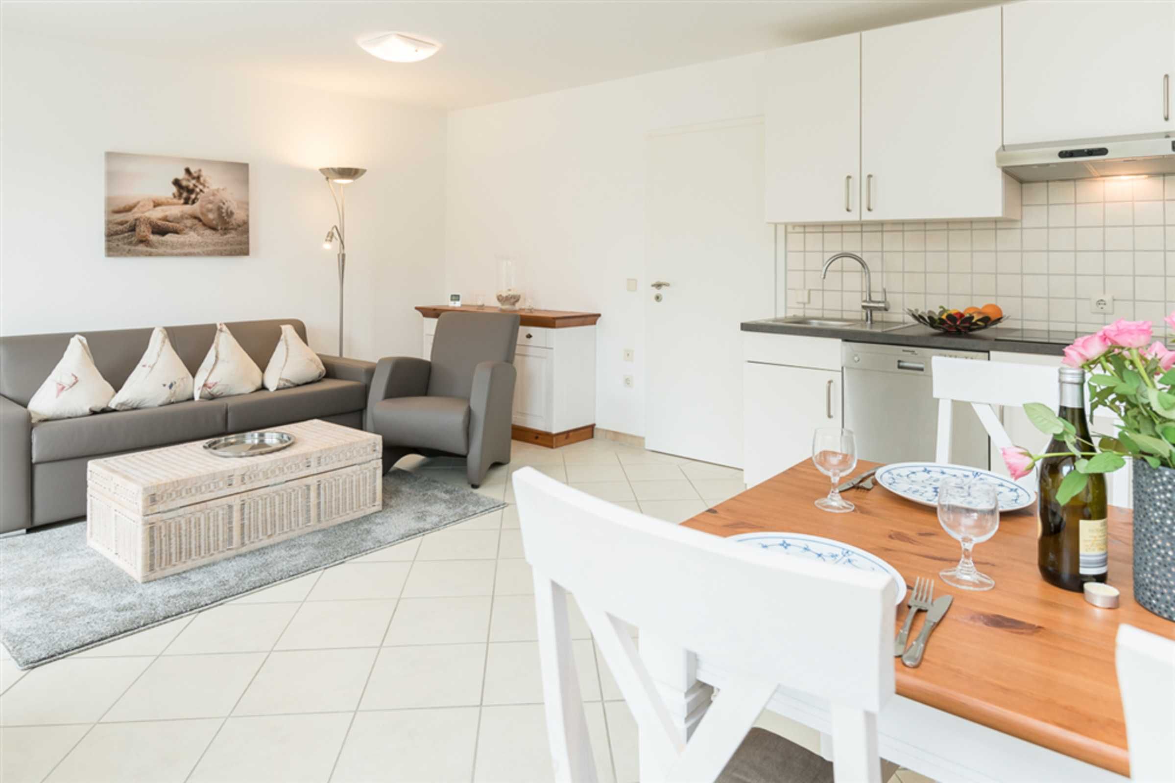 Das komplett renovierte 2 Zimmer Appartement befindet sich in absolut ruhiger Lage. Ihr Domizil verfügt über einen kleinen Flur mit Garderobe, einem Duschbad/WC, einem großzügigen gefliesten Wohnraum, neuer Küchenzeile, einem Essplatz und einer gemütlichen Sofaecke mit 2 Sesseln und großem Flat-TV. Vom Wohnzimmer aus gelangen Sie auch zur Süd-Terrasse, die mit Gartenmöbeln und Strandkorb ausgestattet ist!