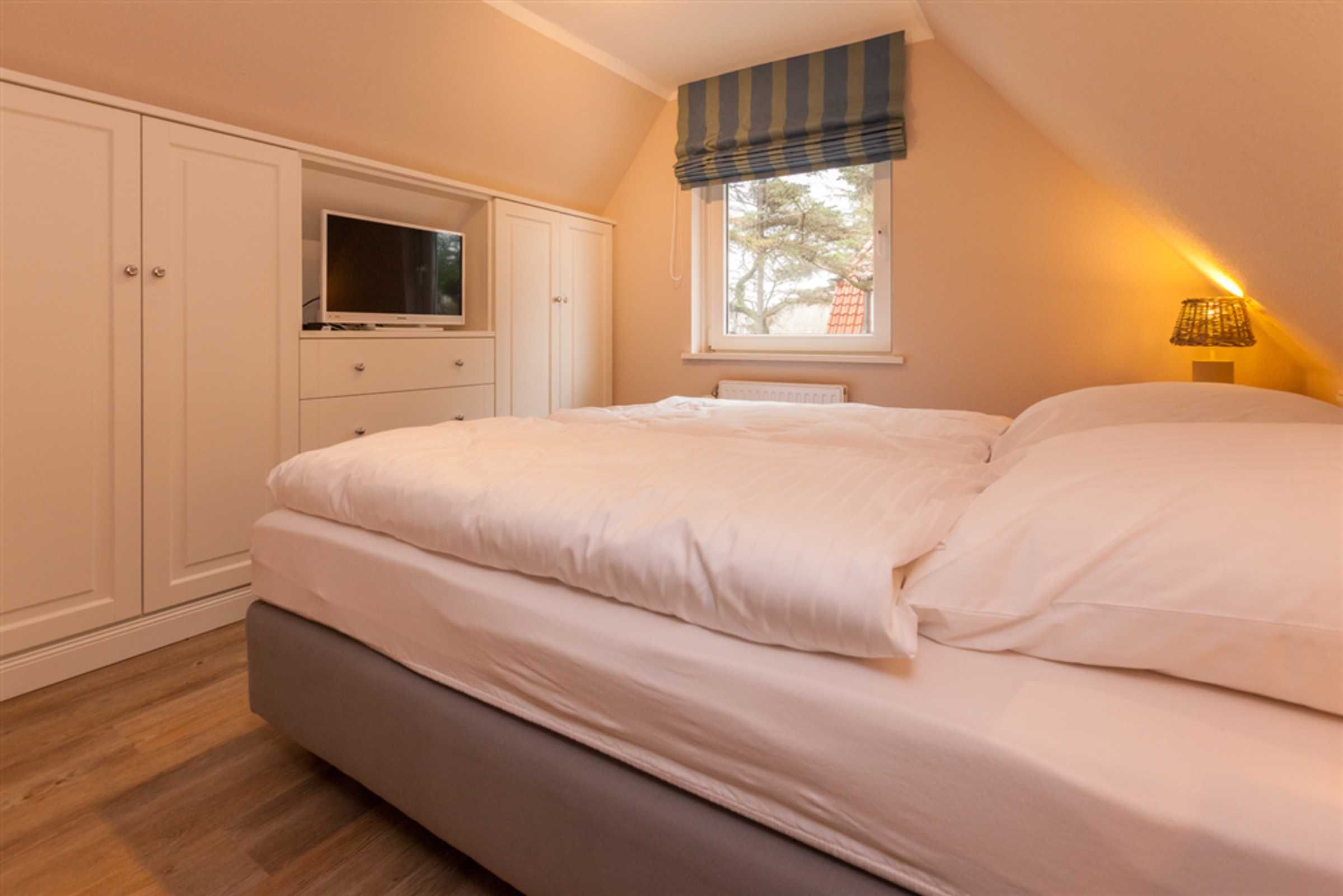 Aus diesem kleinen Juwel, dem Haus Möwennest unter Reet wollen Sie gar nicht wieder ausziehen. Wunderschönes Einzelhaus mit Reetdach und eingezäuntem und sehr schönem Garten in unmittelbarer Strandnähe. Zur Innenstadt läuft man ca. 10 Minuten. Das Haus verfügt über 3 Schlafzimmer, 2 davon jeweils mit Doppelbett (Boxspringbett Maße 160cm x 200cm) und jeweils einem Flachbildfernseher mit Kabelanschluss. Das dritte Schlafzimmer verfügt über ein Einzelbett (Boxspringbett Maße 90cm x 200cm). Das elegante Badezimmer und das Gäste-WC sind schlicht gehalten und passen sich dem hellen und freundlich gehaltenem Farbschema des restlichen Hauses an. Das Wohnzimmer mit I-Pod- Dockingstation und die separate Küche mit Backofen, Ceranfeld, Kühlschrank mit Gefrierfach, Geschirrspüler und allen wichtigen Küchenutensilie runden mit Ihrer stilvollen Einrichtung das Gesamtbild des Hauses perfekt ab. Erlaubt ist maximal 1 Haustier!!!!