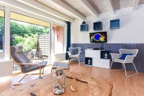 Das Ferienhaus „Nordseenixe“ ist hell und freundlich-modern gestaltet, komfortabel eingerichtet sowie hervorragend ausgestattet. Es verfügt zum Beispiel über eine geschützte möblierte Terrasse und einen eigenen Garten mit einer schönen Blockhaus-Sauna. Im Ferienhaus gibt es eine Waschmaschine und einen Wäschetrockner sowie zum Beispiel eine moderne Küche mit Geschirrspülmaschine sowie Ceran-Herd mit Umluft-Backofen. Das Ferienhaus ist ca. 75 Quadratmeter groß und ideal sowohl für den Urlaub von Familien mit 2 bis 5 Personen nebst zusätzlichem Kleinkind als natürlich auch für Paare geeignet.