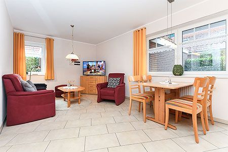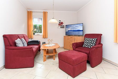 Die Ferienwohnung „Seehund“ befindet sich im Erdgeschoss des neuen Gästehauses (Neubau 2008). Es besteht grundsätzlich die Möglichkeit, zusätzlich zwei Doppelzimmer zu buchen. Damit wird dann die Ferienwohnung zu einem großen Ferienhaus (Doppelhaushälfte) mit Platz für vier oder sogar sechs Personen. Bitte fragen Sie uns danach am Telefon.
