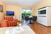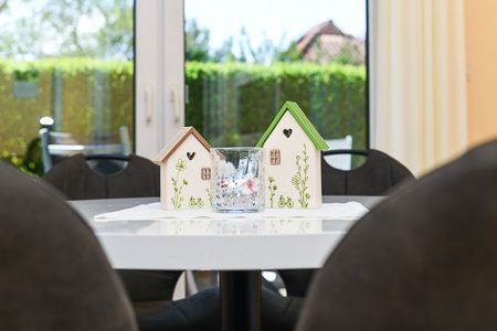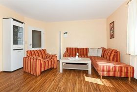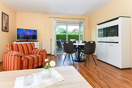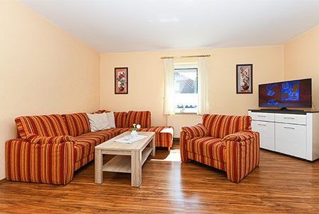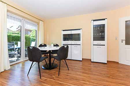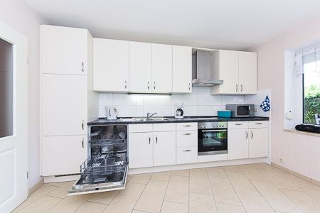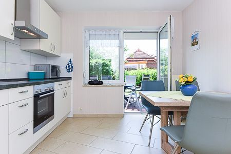 Beide Wohnungen sind geräumig und komfortabel sowie geschmackvoll eingerichtet und modern ausgestattet. Die Wohnung im Obergeschoss hat einen Balkon und an der Wohnung im Erdgeschoss gibt es eine Terrasse. Auch im Garten können Sie es sich gut gehen lassen. Die Ausstattung bietet Ihnen alles, was Sie für einen angenehm entspannten Urlaub benötigen. Zum Beispiel sind die Küchen mit Geschirrspülmaschinen und Mikrowellen ausgestattet und Waschmaschine und Wäschetrockner stehen im Waschraum zur Verfügung.