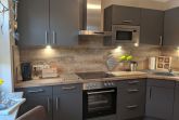 • Küche: mit Geschirrspüler und Dunstabzugshaube, 4 Platten-Ceran-Kochfeld, Backofen,Kühlschrank, Gefrierschrank, Mikrowelle, Kaffeemaschine und Kaffeepadmaschine Senseo, Toaster, Wasserkocher, Mixer, Besteck, Geschirr und Kochtöpfe