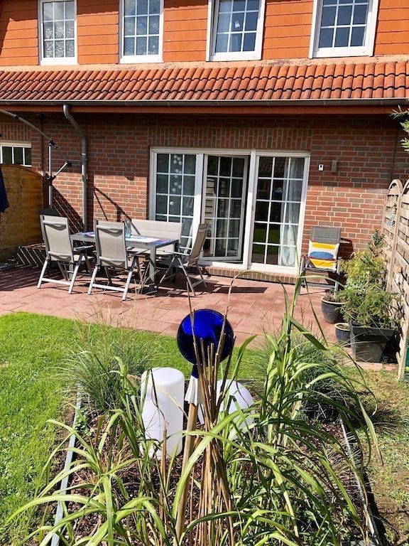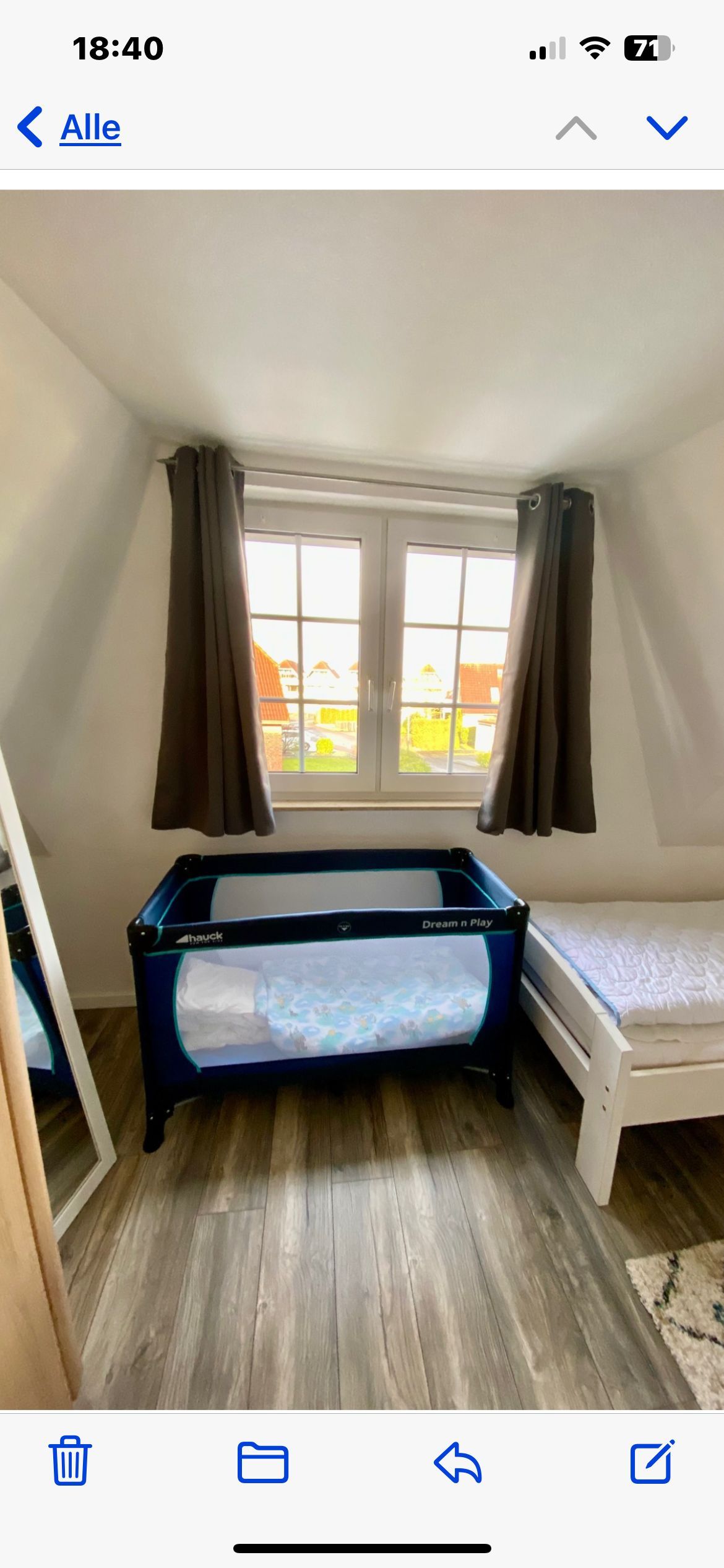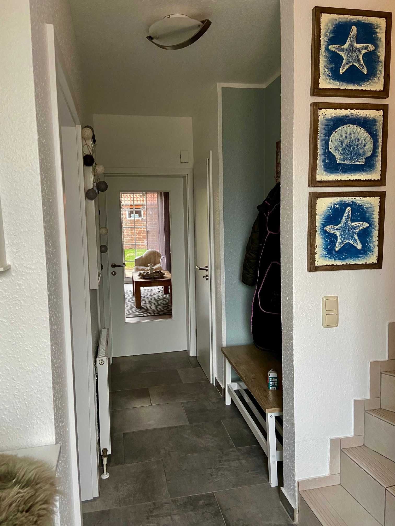 Das mittlere Reihenhaus Meeresleuchten wurde vollständig renoviert und mit viel Liebe zum Detail neu eingerichtet. Das Haus ist für bis zu 8 Personen incl. Schlafcouch und Kinderreisebett ausgestattet. Im Erdgeschoß finden Sie die Küche mit Geschirrspüler, Kühlschrank, Gefrierschrank, Ceranfeld, Backofen, Kaffeemaschine und ganz neu einem DeLonghi Kaffeevollautomaten etc., sowie ein Essplatz mit 2 Stühlen. Des weiteren finden Sie im EG ein Gäste-WC, ein Extra-Raum mit Dusche und Trockner, einen Abstellraum mit Staubsauger, Kinderhochstuhl etc. und natürlich das gemütliche Wohn- und Esszimmer mit Kamin, Sofa, Sessel, großem Flachbildschirm mit Magenta TV, und jetzt ganz neu: superschneller Glasfasertechnik, großer Essecke mit 8 Sitzplätzen. Von dort gelangen Sie auf die Terrasse mit ansprechenden Gartenmöbeln und eingezäuntem Garten. Im Obergeschoß befinden sich 2 Schlafzimmer, eine Sauna und das Badezimmer mit großer Dusche, WC, Waschmaschine, Waschbecken und Fön. Das erste Schlafzimmer ist mit einem Doppelbett und Schrank eingerichtet, das Zweite mit 2 Einzelbetten und Schrank. Im Dachgeschoss befindet sich das dritte Schlafzimmer mit Doppelbett, Kommode, Sitzecke und Schrank und einem Schreibtisch für Homeoffice. Das Haus ist ein Nichtraucherhaus und Haustiere sind nach Anfrage max. 2 erlaubt. Die Fenster sind mit Rollläden versehen. Sie haben vorm Haus 2 Pkw-Einstellplätze, dort können Sie auch Ihre Fahrräder abstellen.