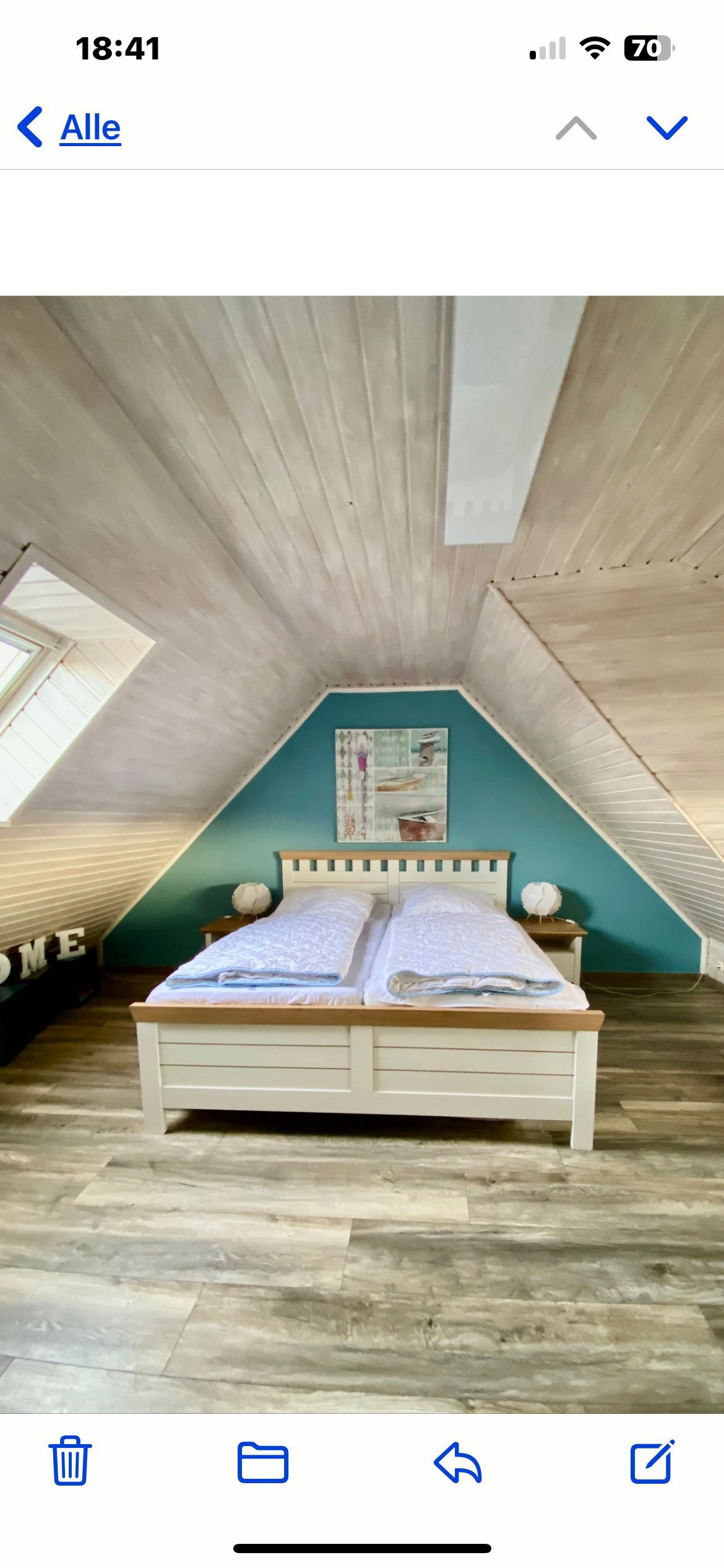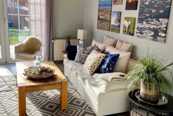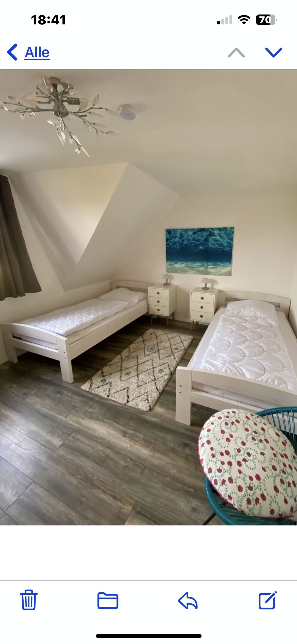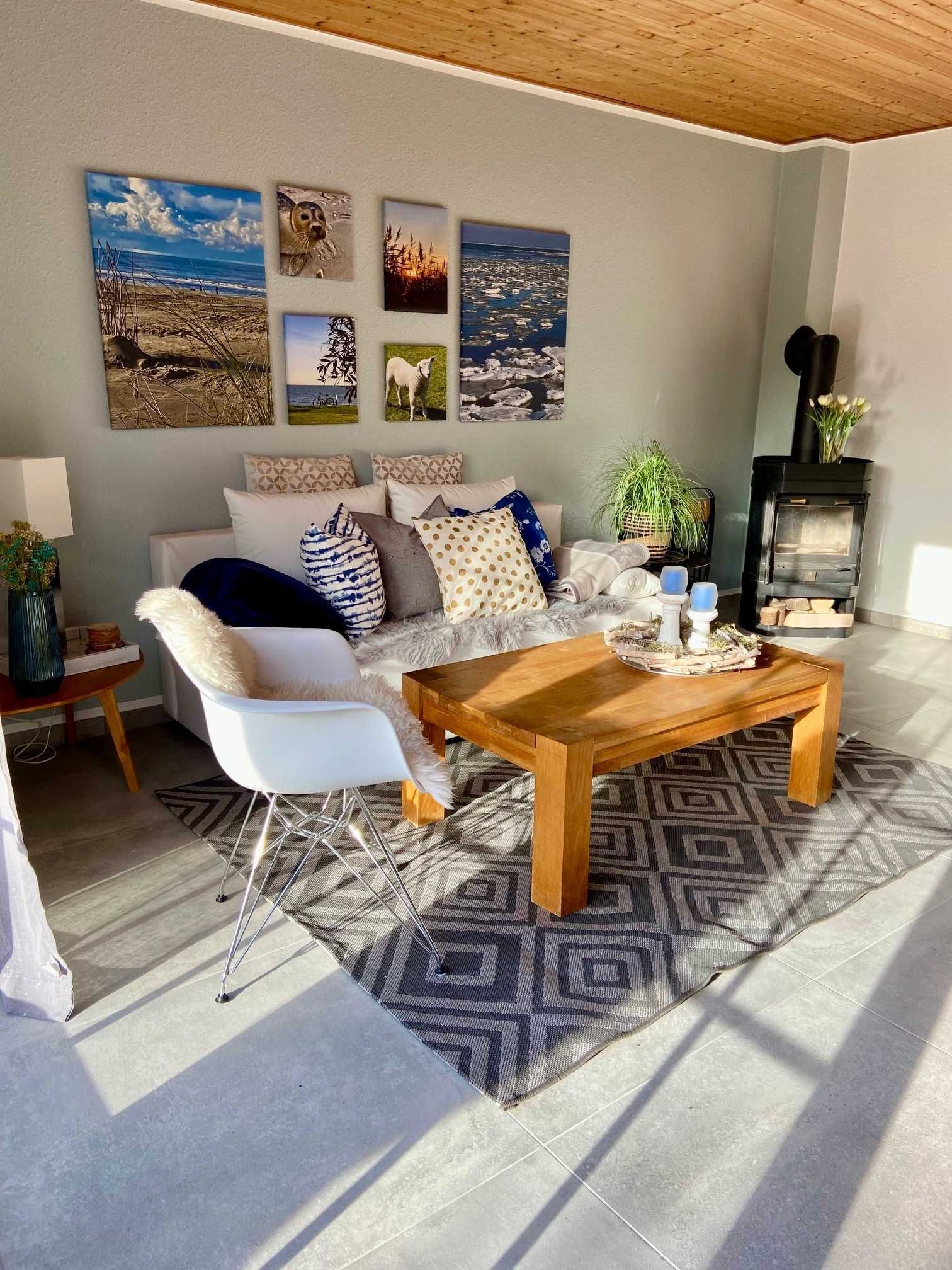 Das mittlere Reihenhaus Meeresleuchten wurde vollständig renoviert und mit viel Liebe zum Detail neu eingerichtet. Das Haus ist für bis zu 8 Personen incl. Schlafcouch und Kinderreisebett ausgestattet. Im Erdgeschoß finden Sie die Küche mit Geschirrspüler, Kühlschrank, Gefrierschrank, Ceranfeld, Backofen, Kaffeemaschine und ganz neu einem DeLonghi Kaffeevollautomaten etc., sowie ein Essplatz mit 2 Stühlen. Des weiteren finden Sie im EG ein Gäste-WC, ein Extra-Raum mit Dusche und Trockner, einen Abstellraum mit Staubsauger, Kinderhochstuhl etc. und natürlich das gemütliche Wohn- und Esszimmer mit Kamin, Sofa, Sessel, großem Flachbildschirm mit Magenta TV, und jetzt ganz neu: superschneller Glasfasertechnik, großer Essecke mit 8 Sitzplätzen. Von dort gelangen Sie auf die Terrasse mit ansprechenden Gartenmöbeln und eingezäuntem Garten. Im Obergeschoß befinden sich 2 Schlafzimmer, eine Sauna und das Badezimmer mit großer Dusche, WC, Waschmaschine, Waschbecken und Fön. Das erste Schlafzimmer ist mit einem Doppelbett und Schrank eingerichtet, das Zweite mit 2 Einzelbetten und Schrank. Im Dachgeschoss befindet sich das dritte Schlafzimmer mit Doppelbett, Kommode, Sitzecke und Schrank und einem Schreibtisch für Homeoffice. Das Haus ist ein Nichtraucherhaus und Haustiere sind nach Anfrage max. 2 erlaubt. Die Fenster sind mit Rollläden versehen. Sie haben vorm Haus 2 Pkw-Einstellplätze, dort können Sie auch Ihre Fahrräder abstellen.