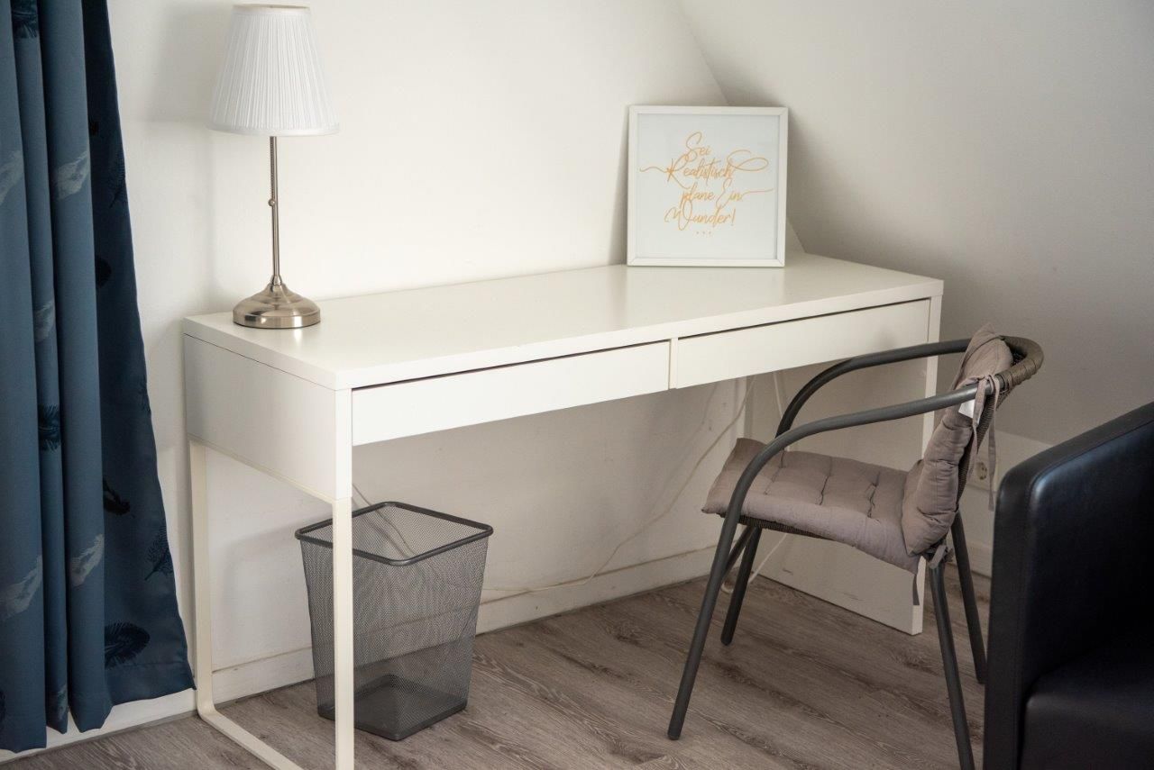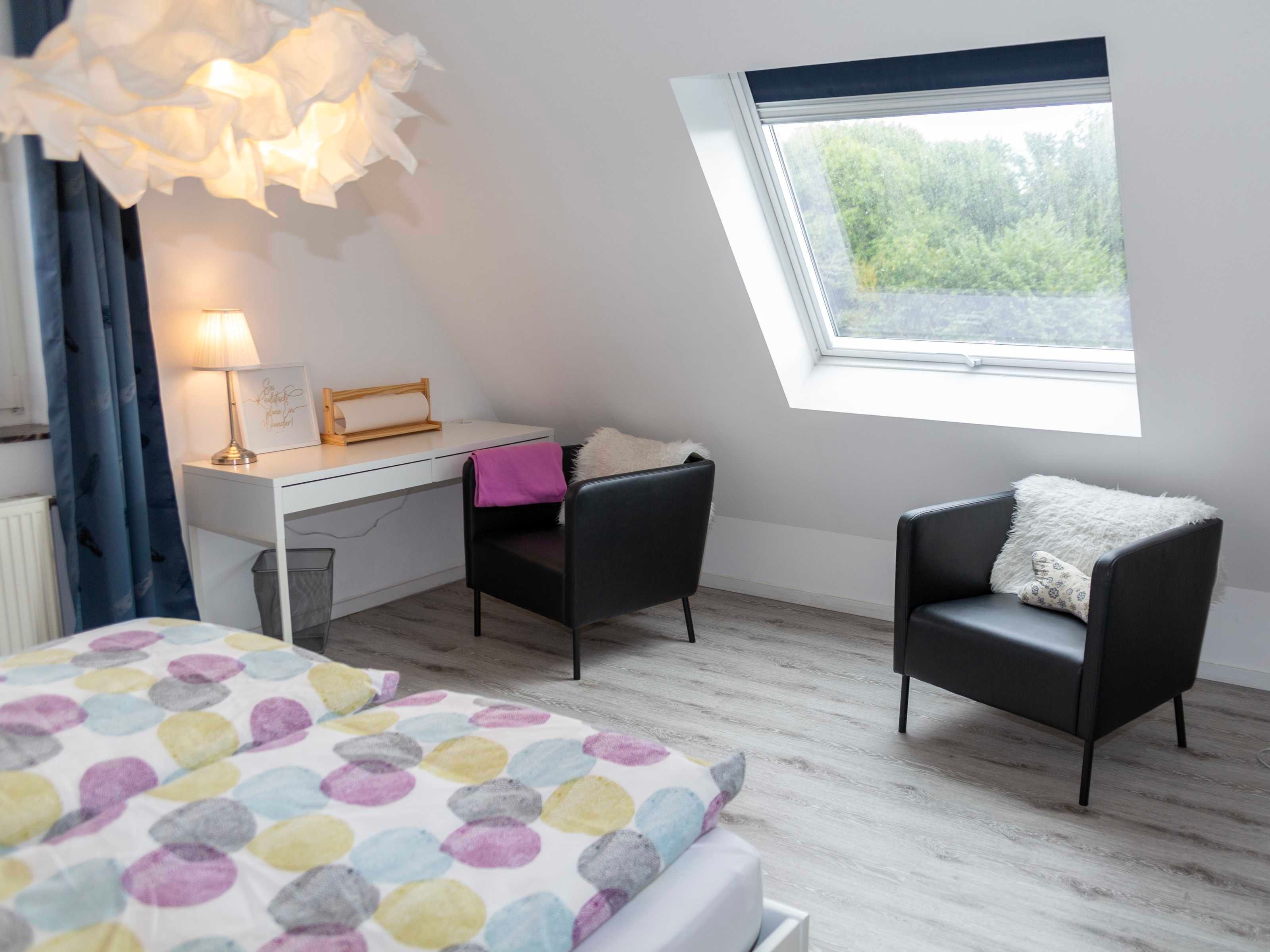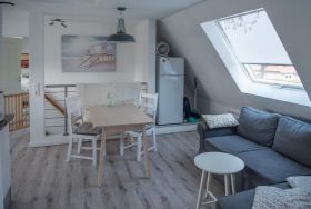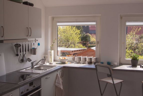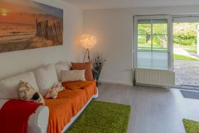 Die 75qm große Ferienwohnung ist für maximal 5 Personen plus Kleinkind ausgelegt. Das Feriendomizil befindet sich in der ersten Etage und der Eingang zur Wohnung ist links, wenn Sie von der Straße aus schauen. Sie verfügt über einen großen offenen Wohn-, und Kochbereich, zwei Schlafzimmer, ein Bad sowie einen Garten mit überdachter Terrasse. Das Tageslicht-Bad ist modern ausgestattet. Die Küche ist voll ausgestattet. Über den Geschirrspüler, einer Kaffeemaschine, einer Mikrowelle, einem Wasserkocher, dem Ceranfeld-Herd mit Backofen bis hin zum Kühlschrank mit Gefrierfächern ist alles vorhanden. In den Schlafzimmern befindet sich ein große Doppelbetten (1,80x 2m und 1,60x2m) Das Ecksofa im Wohnbereich kann mit einem Griff zu einer gemütlichen Lümmelecke bzw. Bettlandschaft umgebaut werden. Schnelles WLAN gehört bei diesem Feriendomizil zur Selbstverständlichkeit. Hunde sind in der Wohnung nicht erlaubt.