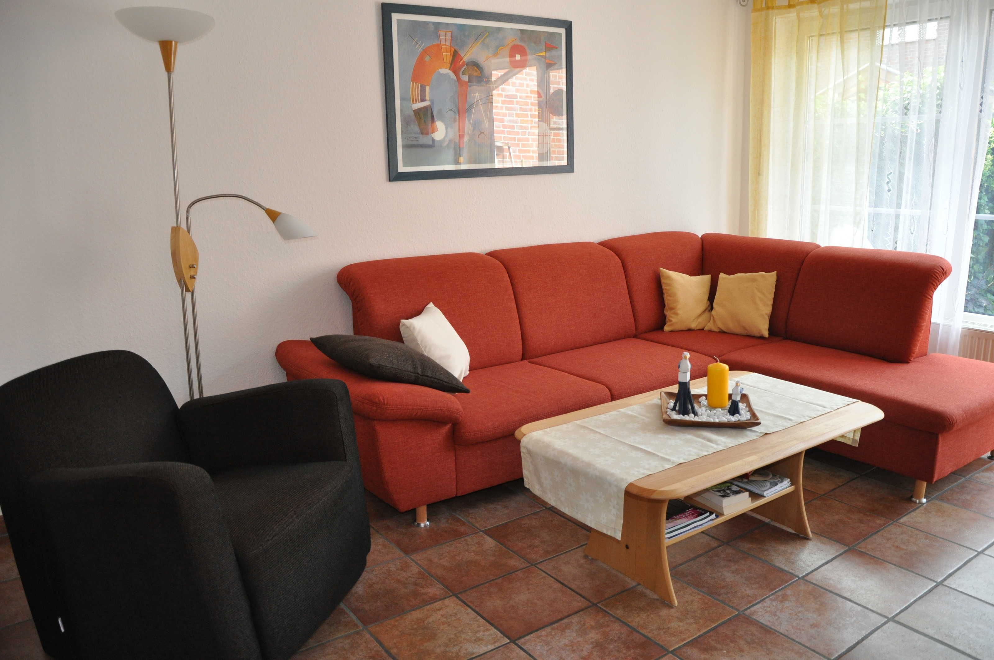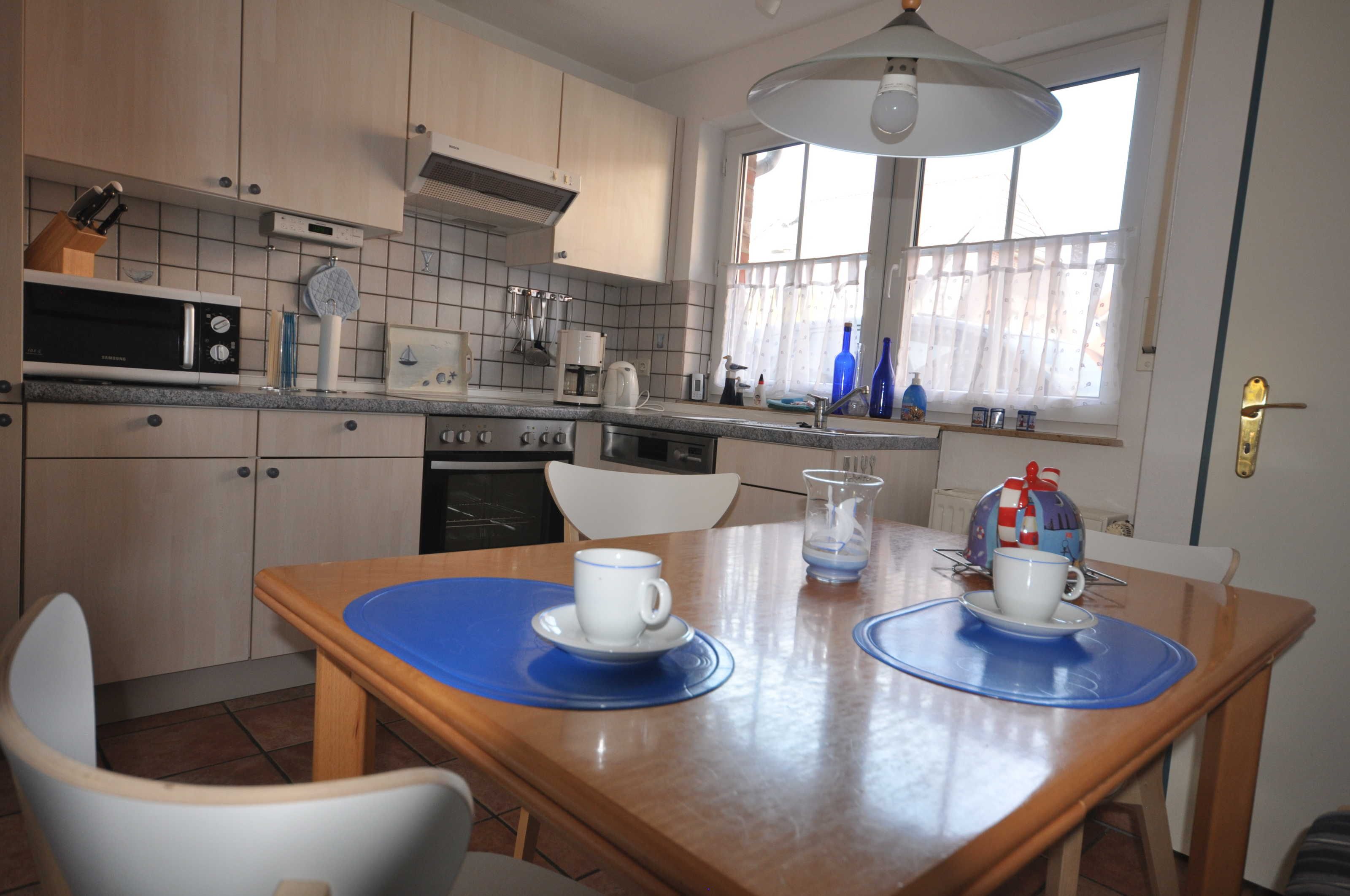 Haus Jade ist ein liebevoll eingerichtete Reihenendhaus über 3 Etagen. Im Erdgeschoss befindet sich die komplett eingerichtete, abgeschlossene Küche mit Essplatz, (Geschirrspüler, Backofen, Kühlschrank mit Gefrierfach usw.), ein Gäste-WC mit Fenster, ein kleiner Flur mit Garderobe und das große Wohnzimmer mit Zugang zur abgeschlossenen möblierten Südterrasse. Im ersten Stock wartet ein Schlafzimmer mit Doppelbett, ein Zimmer mit 2 Einzelbetten sowie dazwischen das Duschbad mit Waschmaschine und Haartrockner. Ein zusätzliches Zimmer mit zwei Einzelbetten, Sitzgelegenheit und kleinem Tisch für Gesellschaftsspiele usw. befindet sich im Dachgeschoss. Reisebettchen und Hochstuhl sind vorhanden. SAT-TV, WLAN, Telefon, Stereoanlage lassen keinen Komfort vermissen.