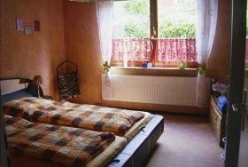 Betten: Ein Doppelzimmer mit einem Doppelbett mit zwei separaten Matratzen der Größe 90 cm x 200 cm und ein Einzelzimmer mit einem Bett der Größe 90 cm x 200 cm.