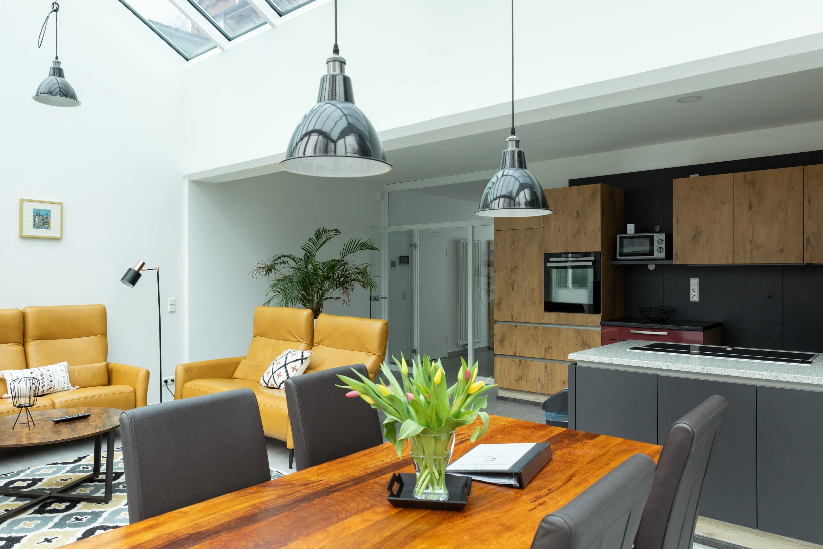 Hier wohnen Sie auf 123 qm. Lassen Sie sich von den Bildern der Wohnung verzaubern und buchen Sie und schauen Sie, wenn Sie auf der Couch sitzen, den Vögeln oder den Wolken über Ihnen zu.