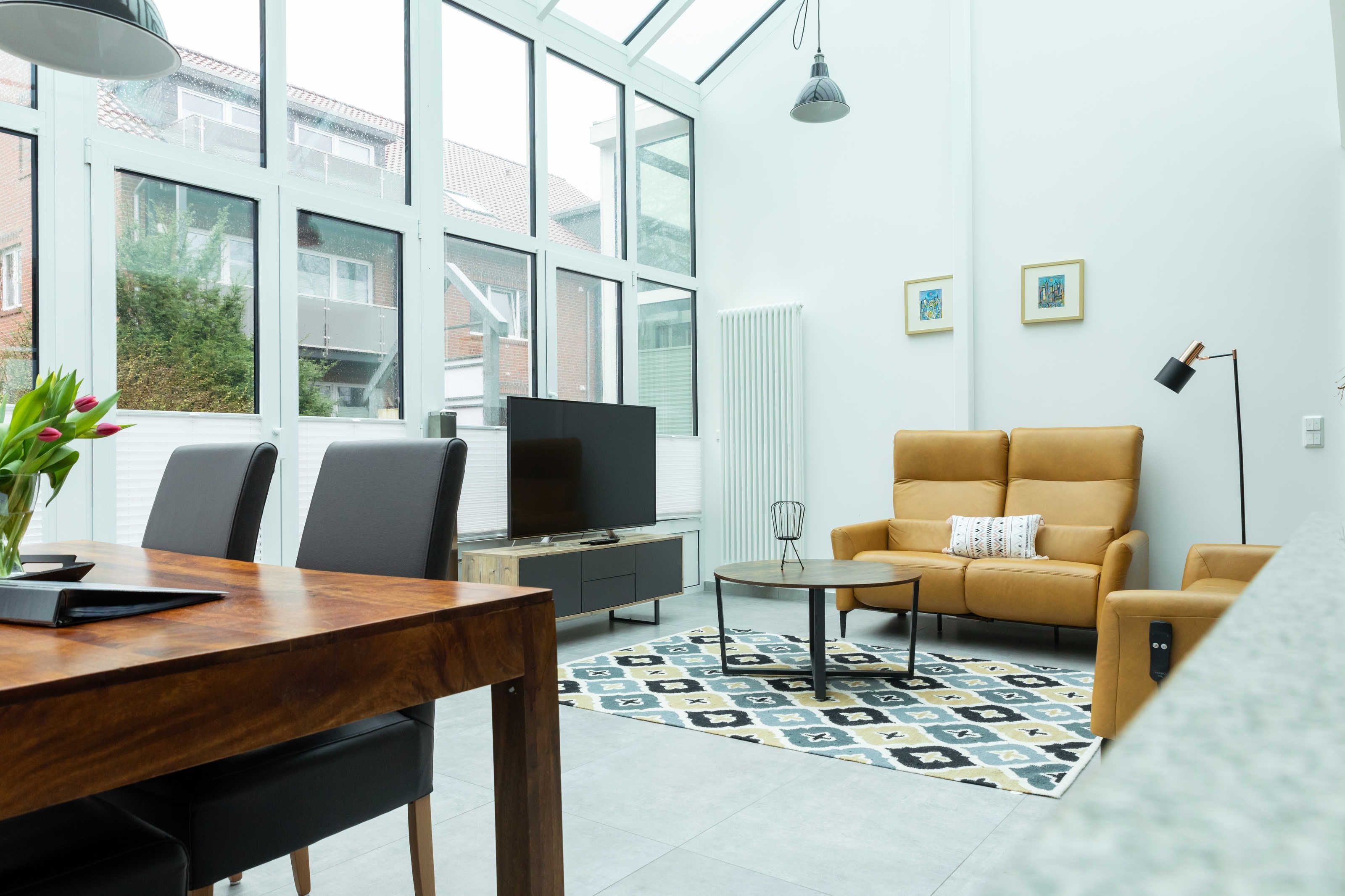 Im Anbau, dem Glashaus, mit eigenem Eingang, sind lediglich 2 Ferienwohnungen untergebracht, Altschwoog und Neermoor.