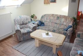 Die Ferienwohnung 3 hat eine Wohnfläche von 75 m² und enthält ein Doppelbettzimmer und ein weiteres Zimmer mit 4 Betten (ein Hochbett, zwei normale Betten). Nach Bedarf kann noch eine siebte Schlafgelegenheit eingerichtet werden.