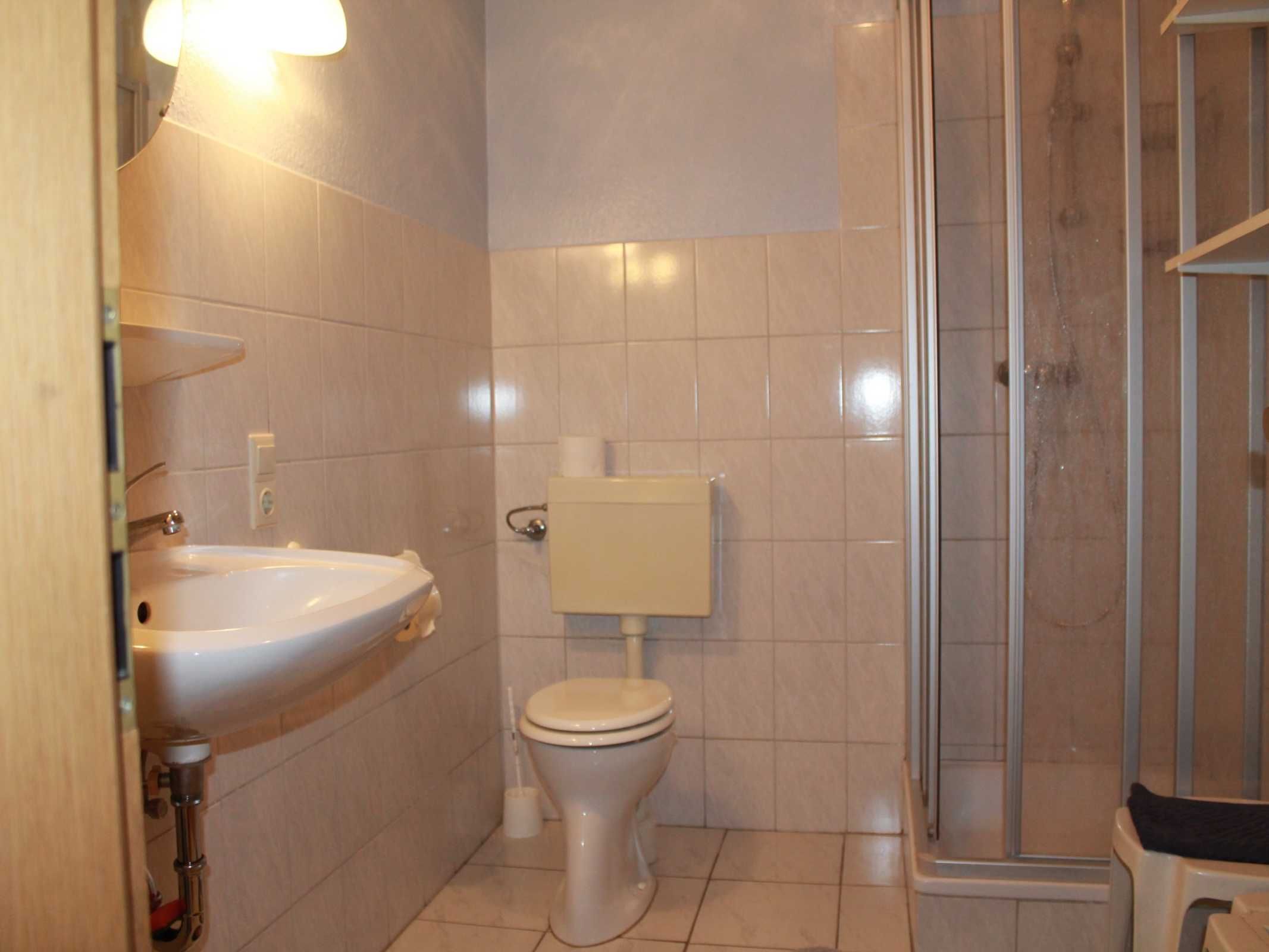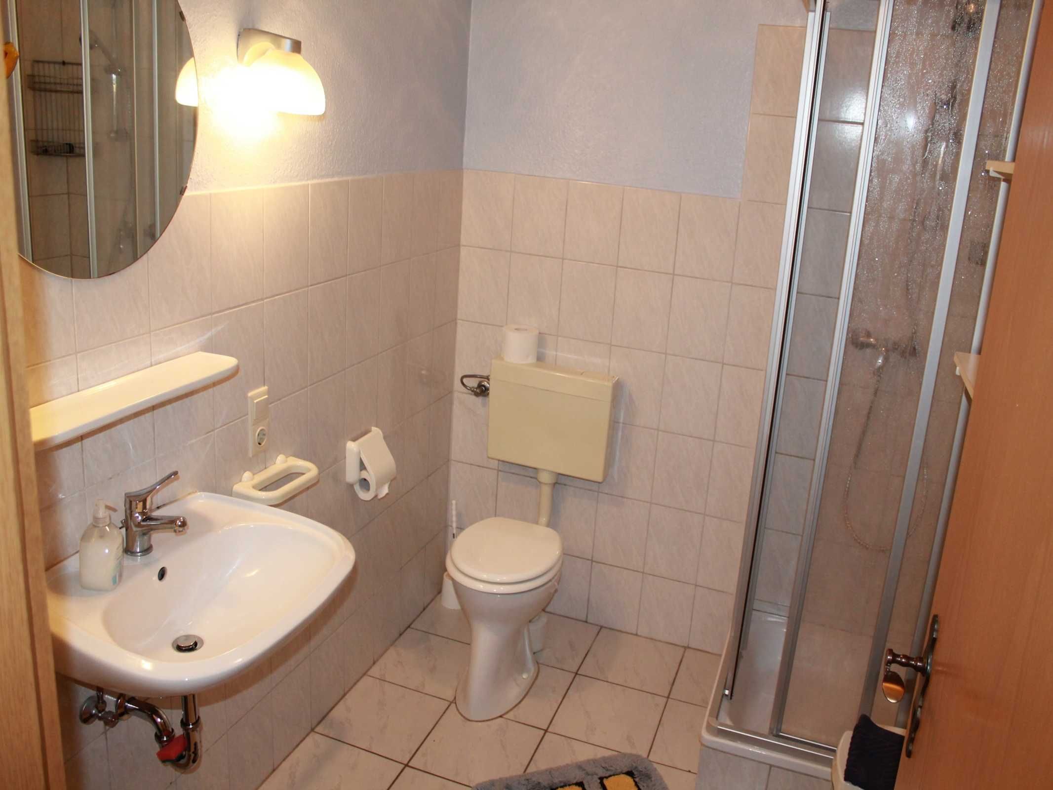Badezimmer mit Dusche und WC.