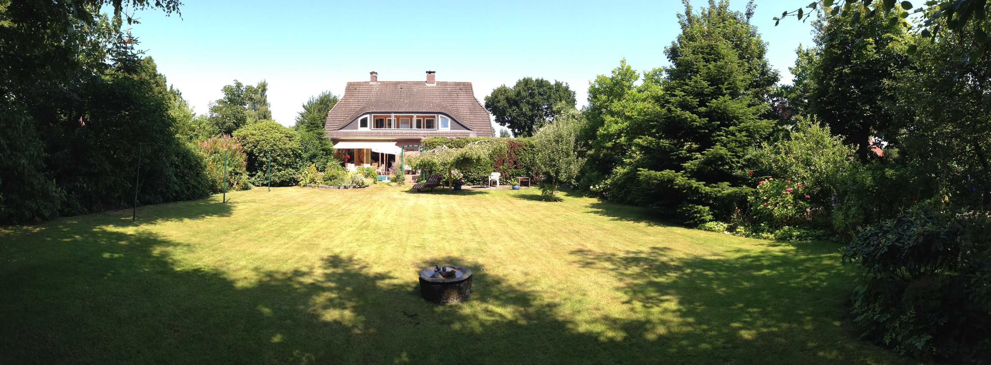 Im großzügigen Wohnzimmer mit Kamin kann man sich treffen, Tee trinken oder zusammen essen am großen Tisch für 12 Personen. In der geräumigen Küche mit Stehtisch lässt sich hervorragend zusammen kochen oder einfach schnacken. Auf der Terrasse, im Garten oder in der sog. „Lounge“ geht am gemeinsamen Grillen fast kein Weg vorbei. Die Kinder können jederzeit raus in den großen, eingewachsenen Garten.