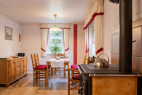 im angrenzenden Essbereich. Das Wohnzimmer mit 3er, -2er Sitzgarnitur und Sessel, Geschirr- und Bücherschrank, Fernseher (Satelitenempfang) und Original-Stuhl von Mientje, laden zum gemütlichen Verweilen ein. Über WLAN können Sie im gesamten Wohnbereich das Internet nutzen.