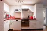 Die im Küchenbereich vorhandenen Geräte (E- Herd, Geschirrspülmaschine, Kühlschrank, Microwelle, Heißwasserkocher, Kaffeemaschine, Toaster, Eierkocher, Stabmixer und Handmixer) sowie Geschirr und