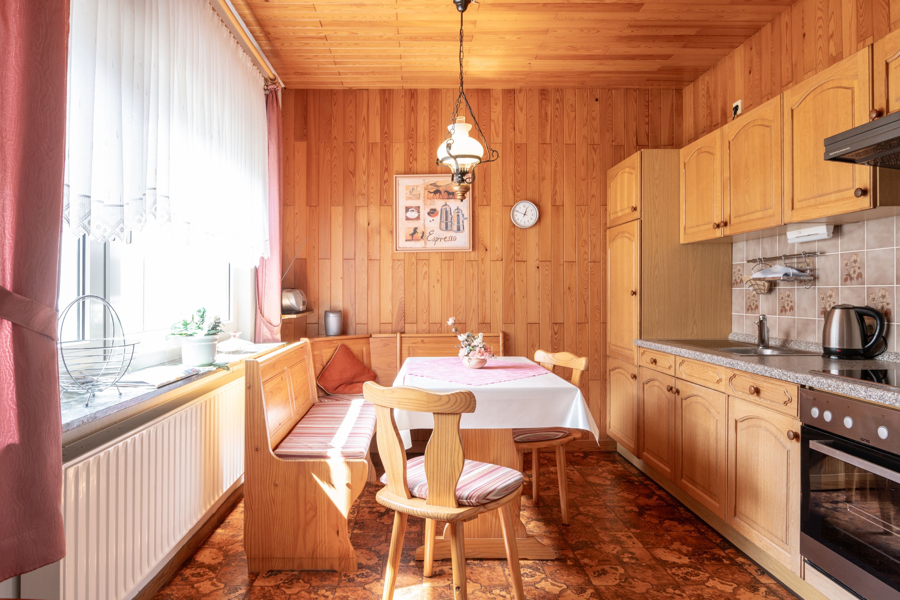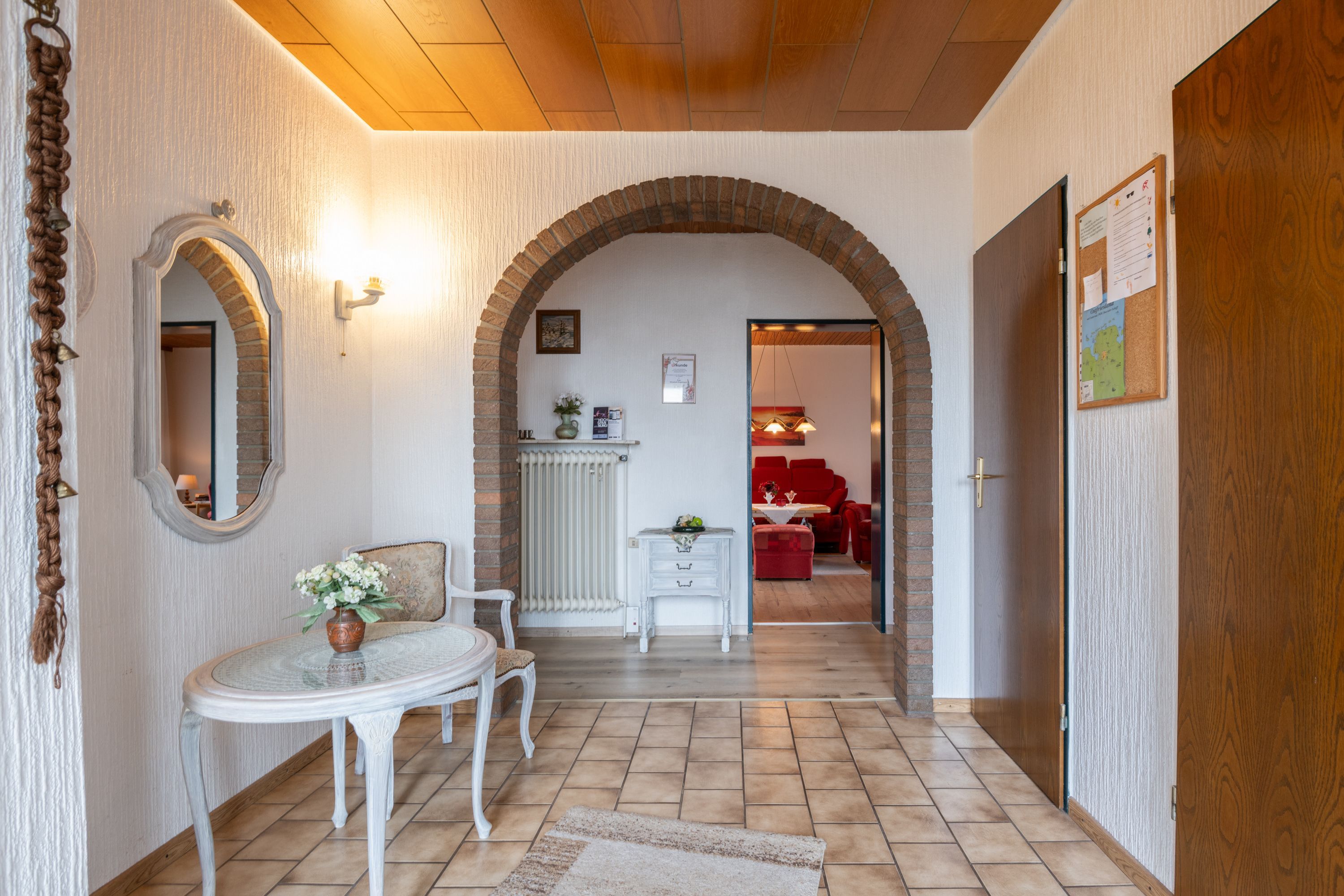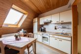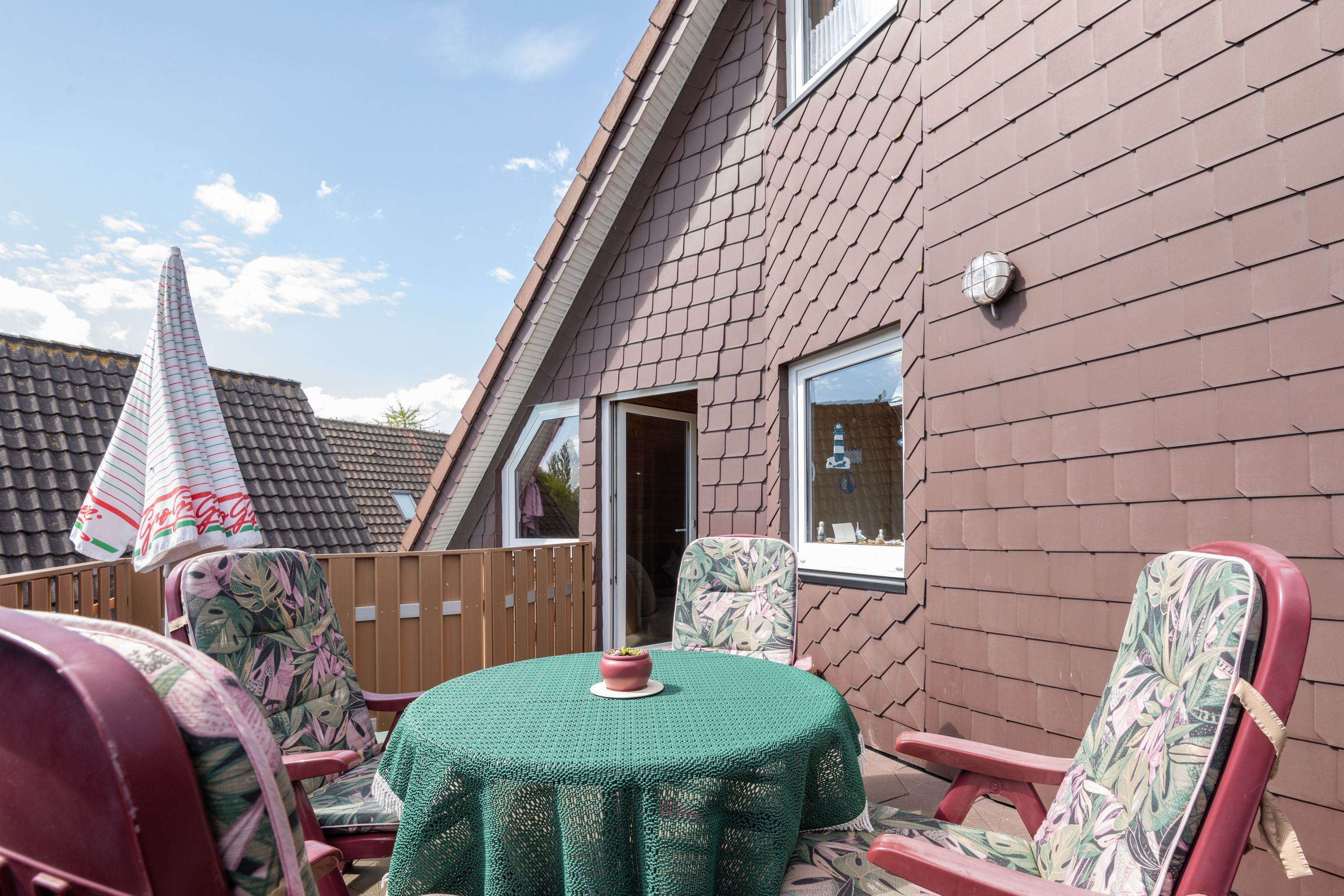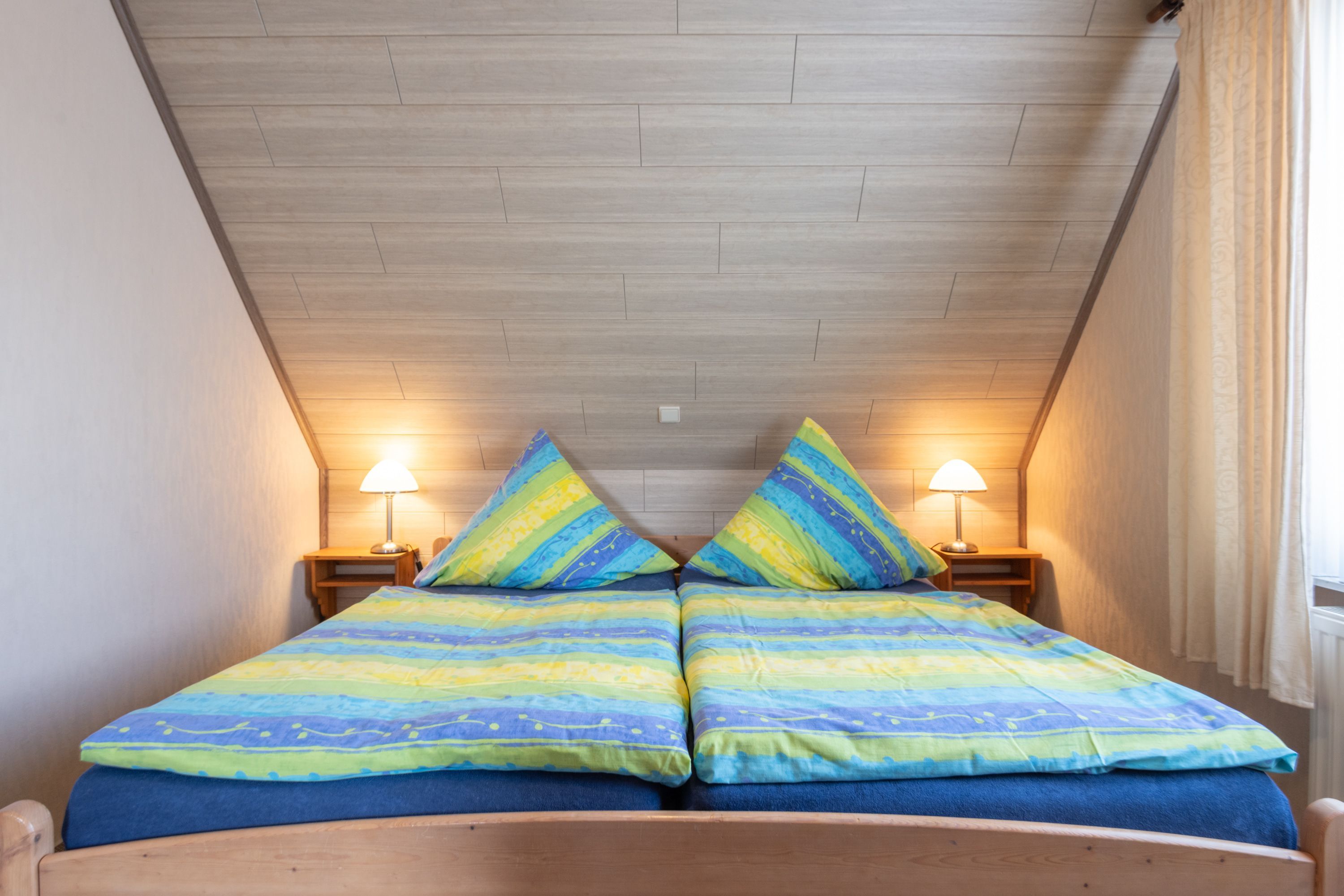 Schöne geräumige Ferienwohnung im ersten Obergeschoss mit einer großen Wohnküche und einem angrenzenden großen Balkon. Über drei Schlafzimmer verfügt die Ferienwohnung, ein Schlafzimmer mit einem Doppelbett (2,00 x 2,00 m) befindet sich im ersten Obergeschoss und im zweiten Ober-/Dachgeschoss befinden sich zwei weitere Schlafzimmer/Zweibettzimmer mit je zwei getrennt stehenden Betten (1,00 x 2,00 m). Eine Badezimmer mit einer Dusche und ein separates WC befindet sich im ersten Obergeschoss und über eine schmale Treppe gelangen Sie zu den Zweibettzimmer im Dach/Obergeschoss. Im Küchenbereich finden Sie eine komplette Ausstattung an Küchengeräte und einem Tisch mit sechs Stühlen, im Wohnzimmerbereich befindet sich eine gemütliche Garnitur. Der Balkon ist mit Gartenmöbeln und einen Grill ausgestattet. Nützungsgebühr für Waschmaschine und/oder Trockner jeweils 3,00 EUR.