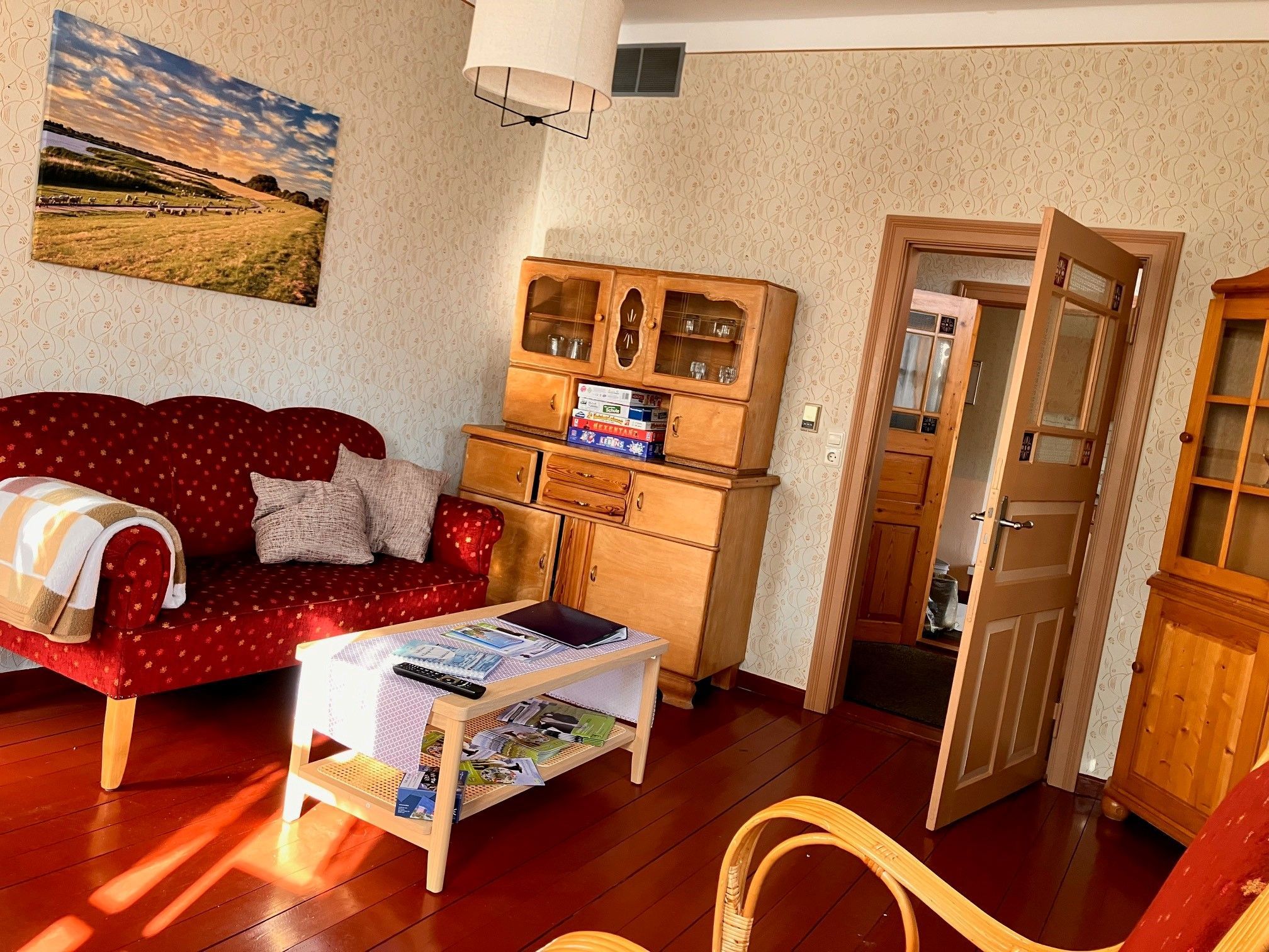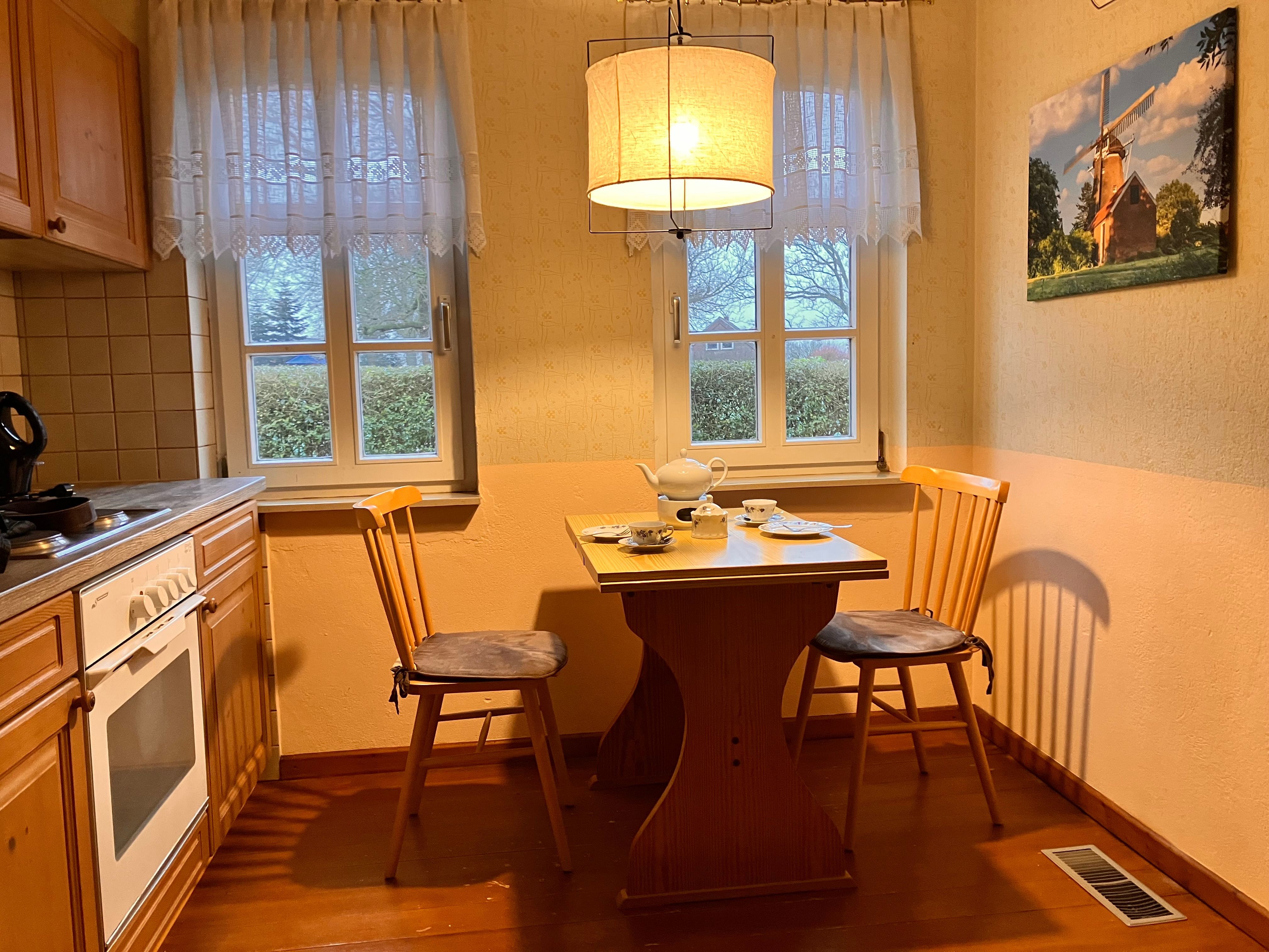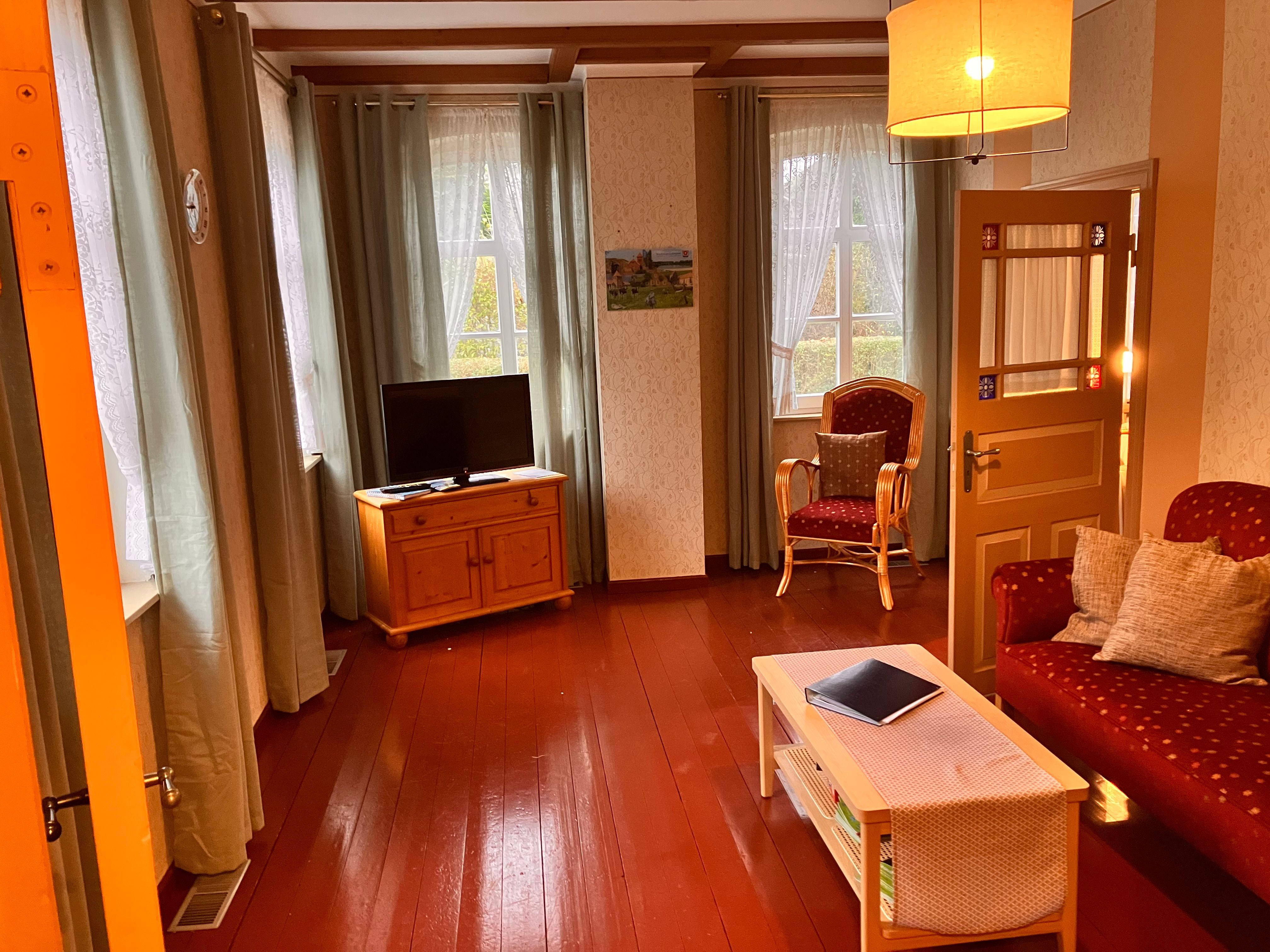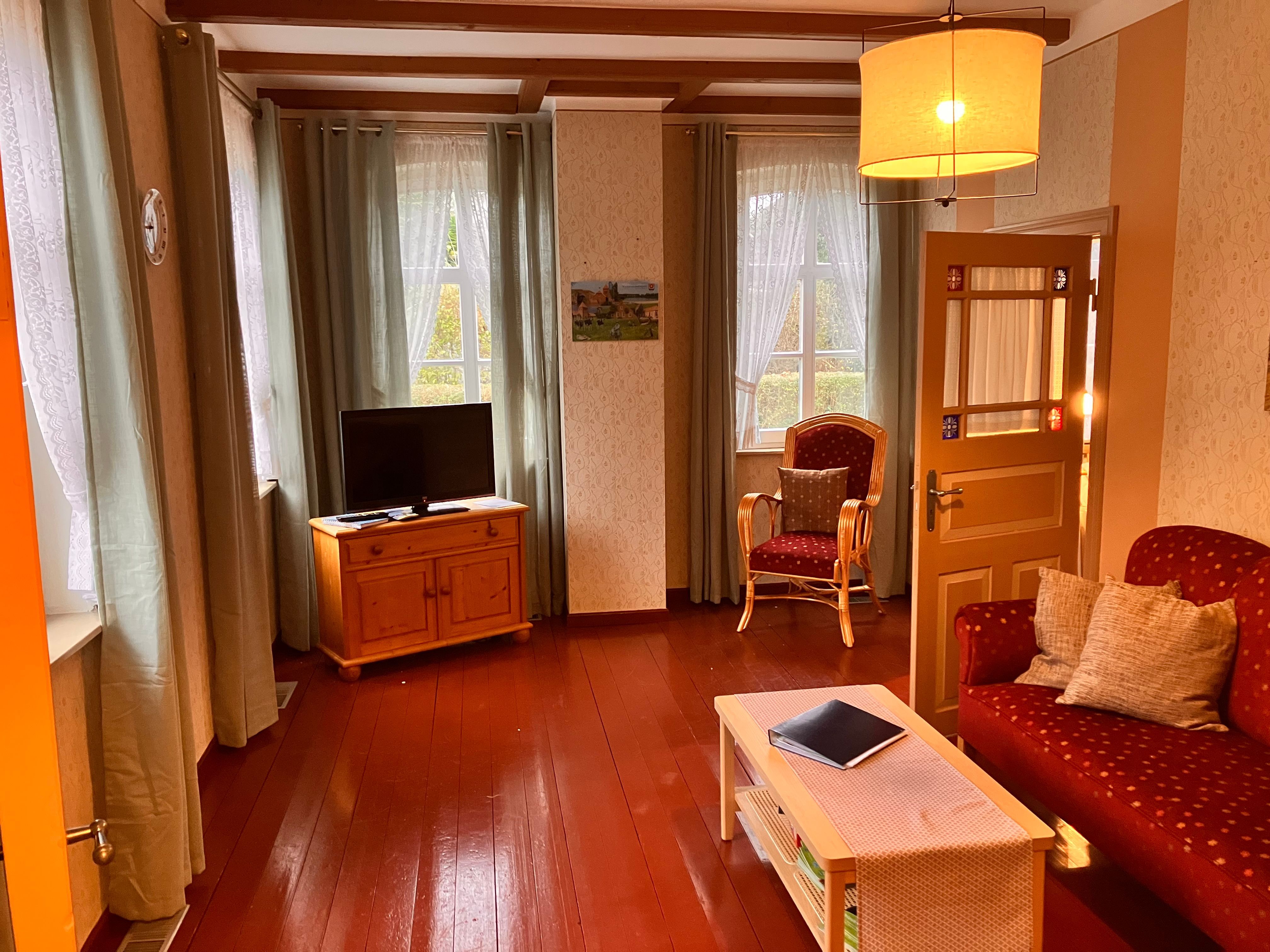 Unser gemütliches und typisch ostfriesisches Gulfhaus im idyllischen Emsdorf Mitling-Mark, lädt Sie zum entspannten Urlaub zum WO(h)L-fühlen ein. Das komplett ausgestattete Ferienhaus läst keine Wünsche offen. Die wohnliche gute Stube mit altem Buffetschrank, das sowie das behagliche Schlafzimmer mit Doppelbett und zwei Butzenbetten sowie zusätzlichen Decken und Kopfkissen sorgen für Entspannung und Erholung. In der kleinen Landhausküche mit Geschirrspülmaschine und Essecke können Sie sich nach einer ausgedehnten Radtour bekochen oder auf der Terrasse an lauen Sommerabenden grillen. Für ostfriesische Schietwettertage steht Ihnen eine umfangreiche Buch- und Spieleauswahl für Jung und Alt zur Verfügung. Waschmaschinen- und Trocknerbenutzung auf Anfrage beim Verwalter möglich. Infomappe und Infomaterial vorhanden.
