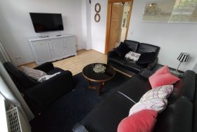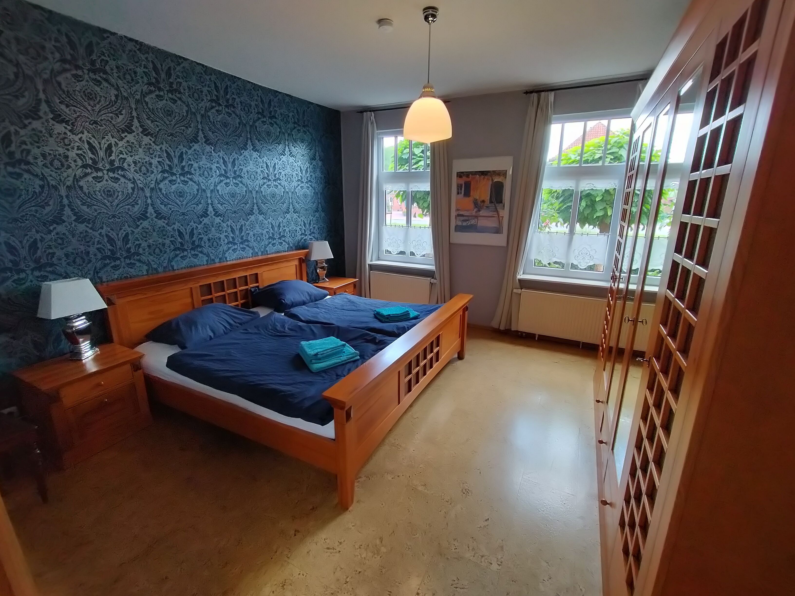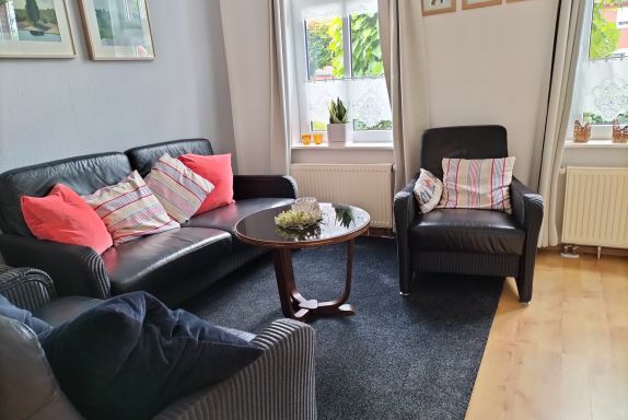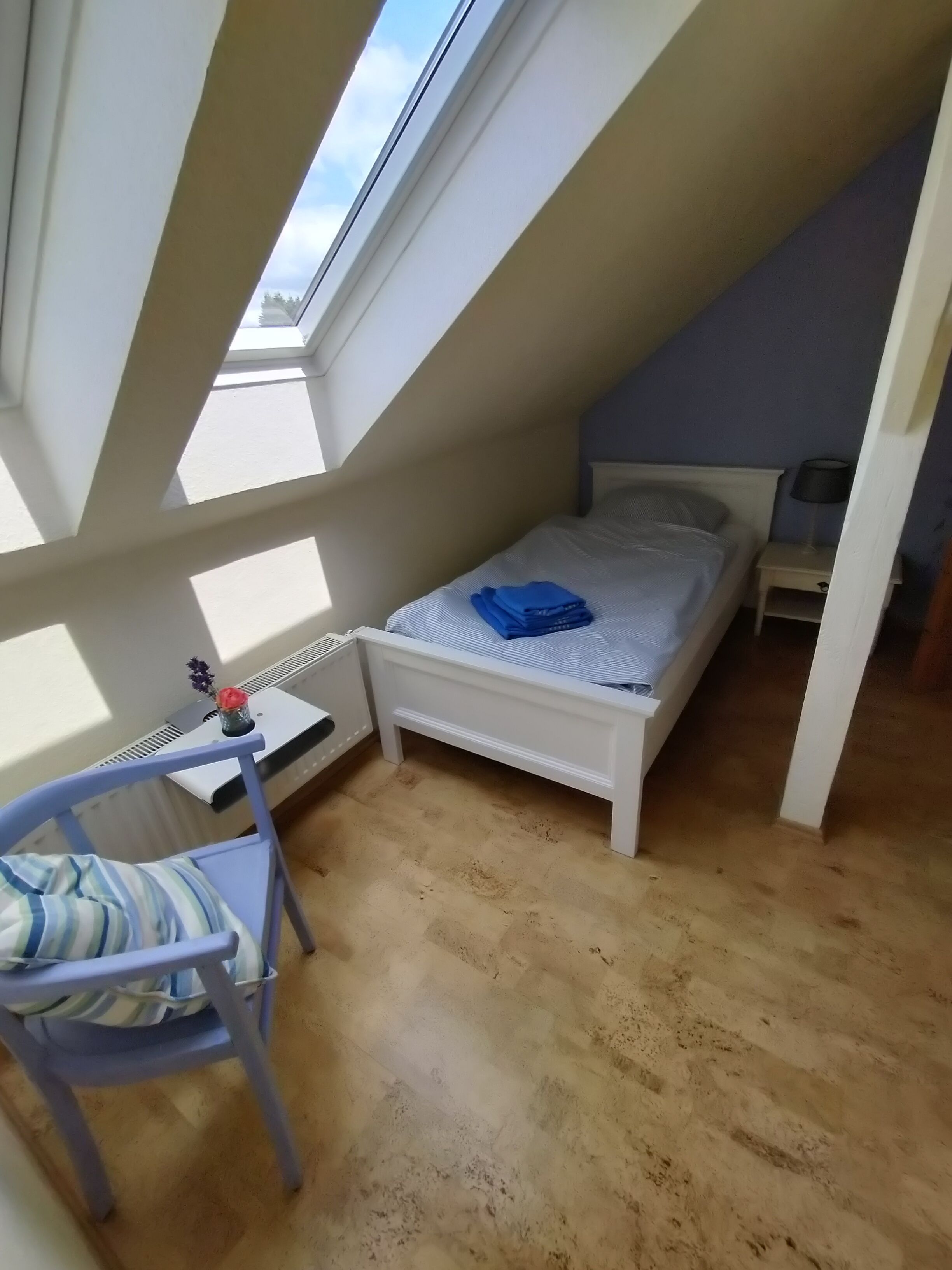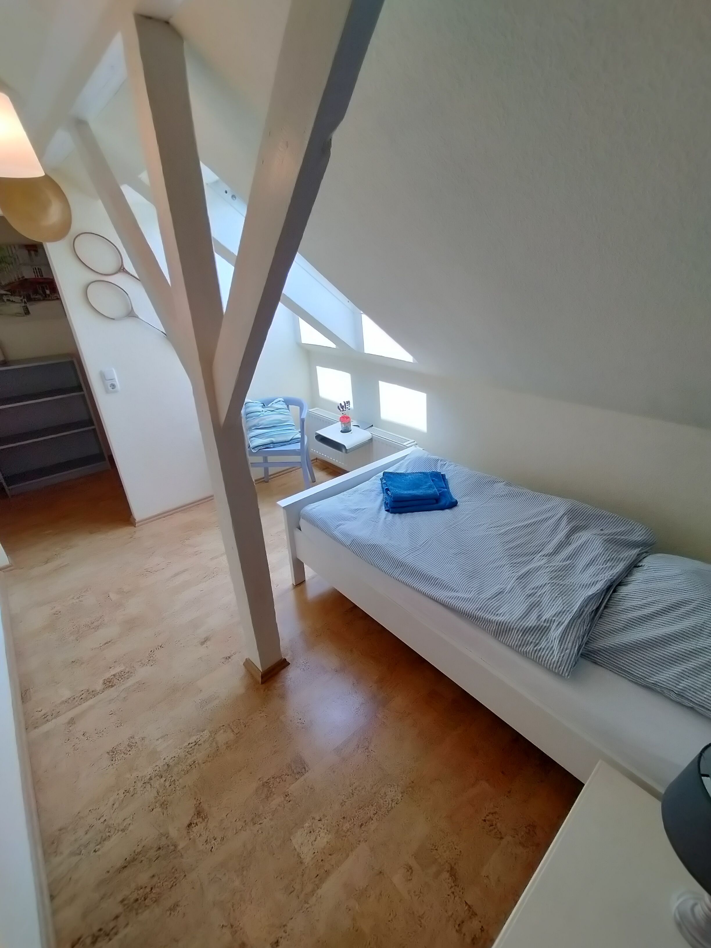 Die Wohnung erstreckt sich über 2 Etagen und verfügt über 2 Schlafzimmer mit Doppelbetten im Erdgeschoss. Im Dachgeschoss befinden sich 3 Schlafzimmer mit Einzelbetten. Das große Familienbad befindet sich im Dachgeschoss und verfügt über Badewanne, Dusche und WC. Im Erdgeschoss ist die Küche mit Essplatz und einem extra Wohnzimmer mit TV. Eine Spielesammlung für Spieleabende mit der ganzen Familie steht zur Verfügung.