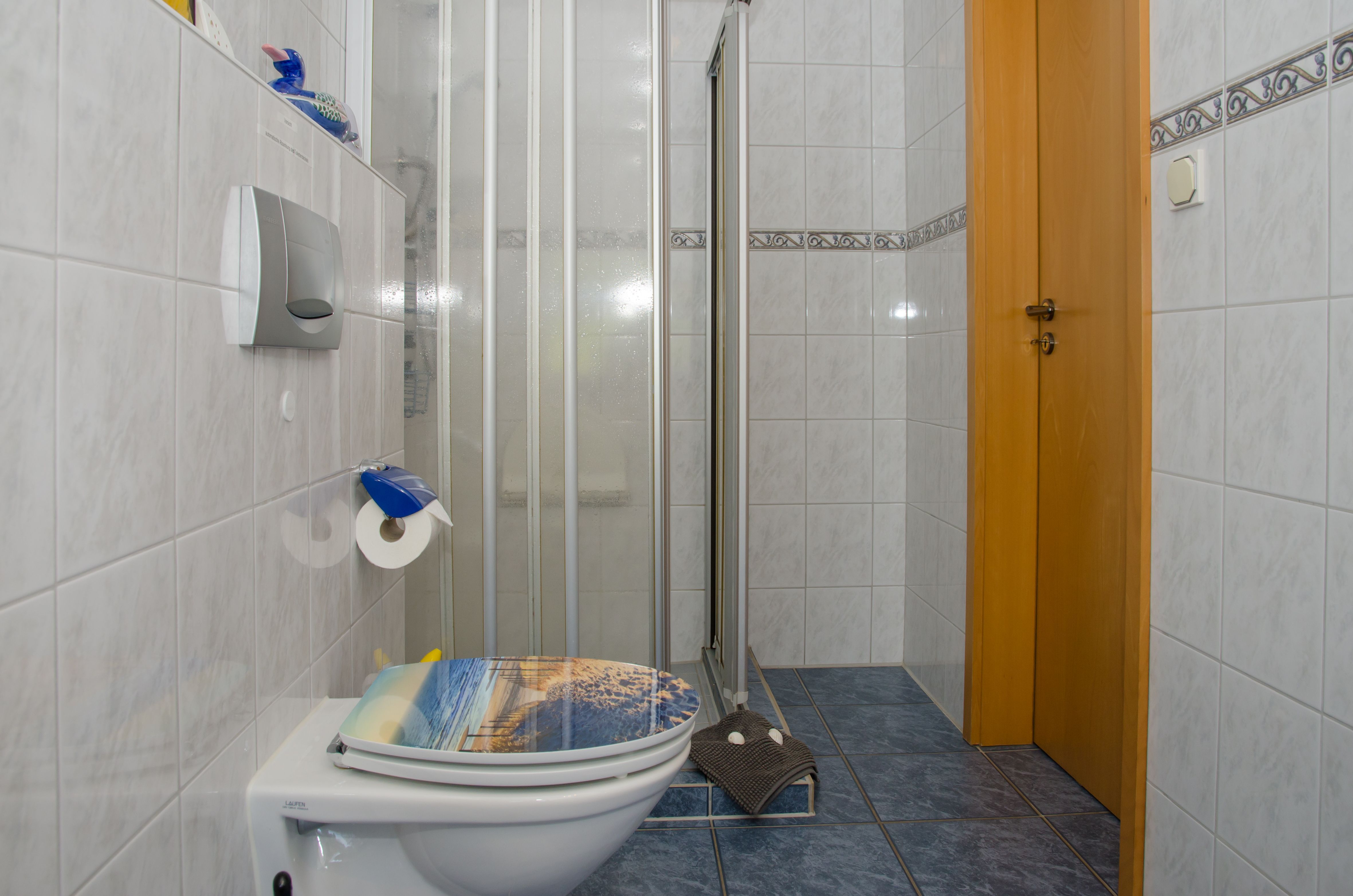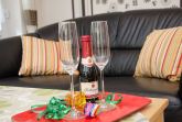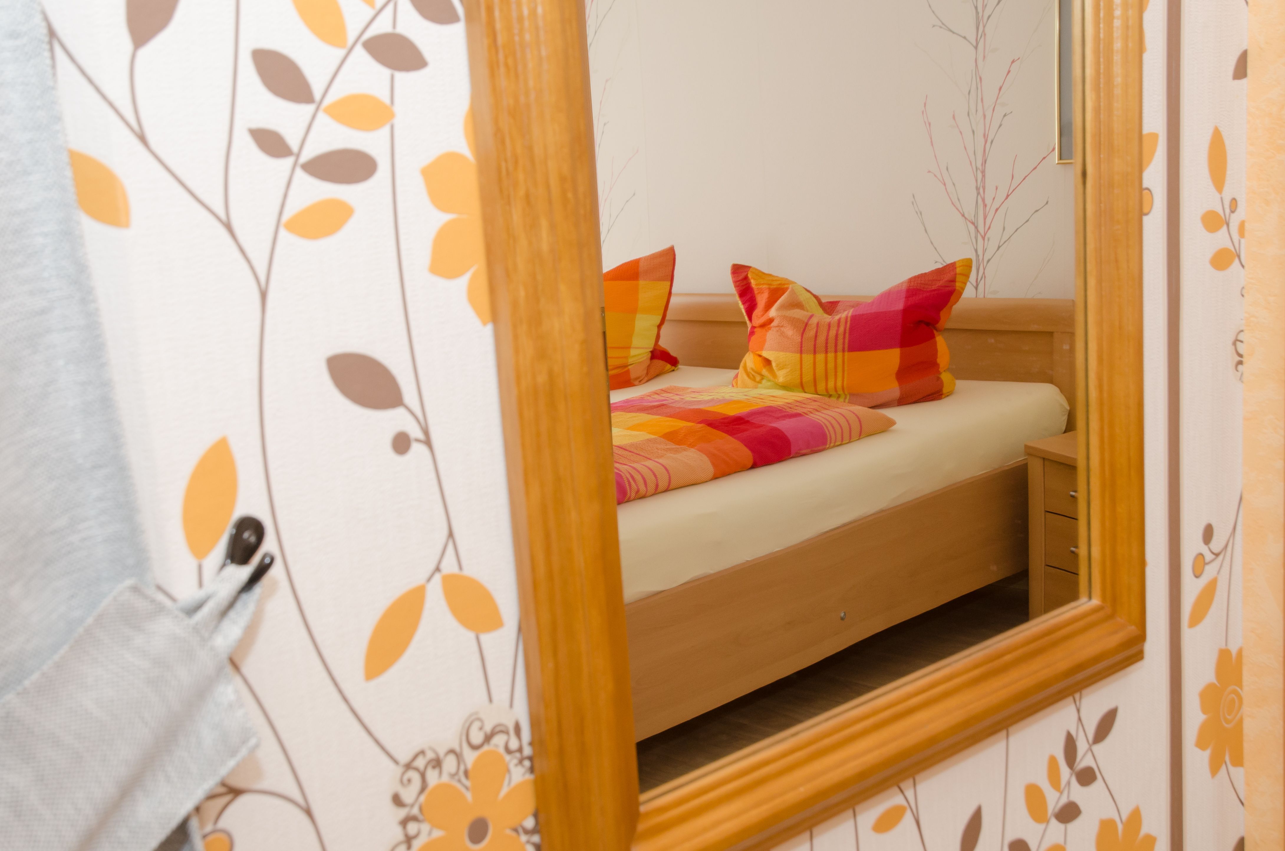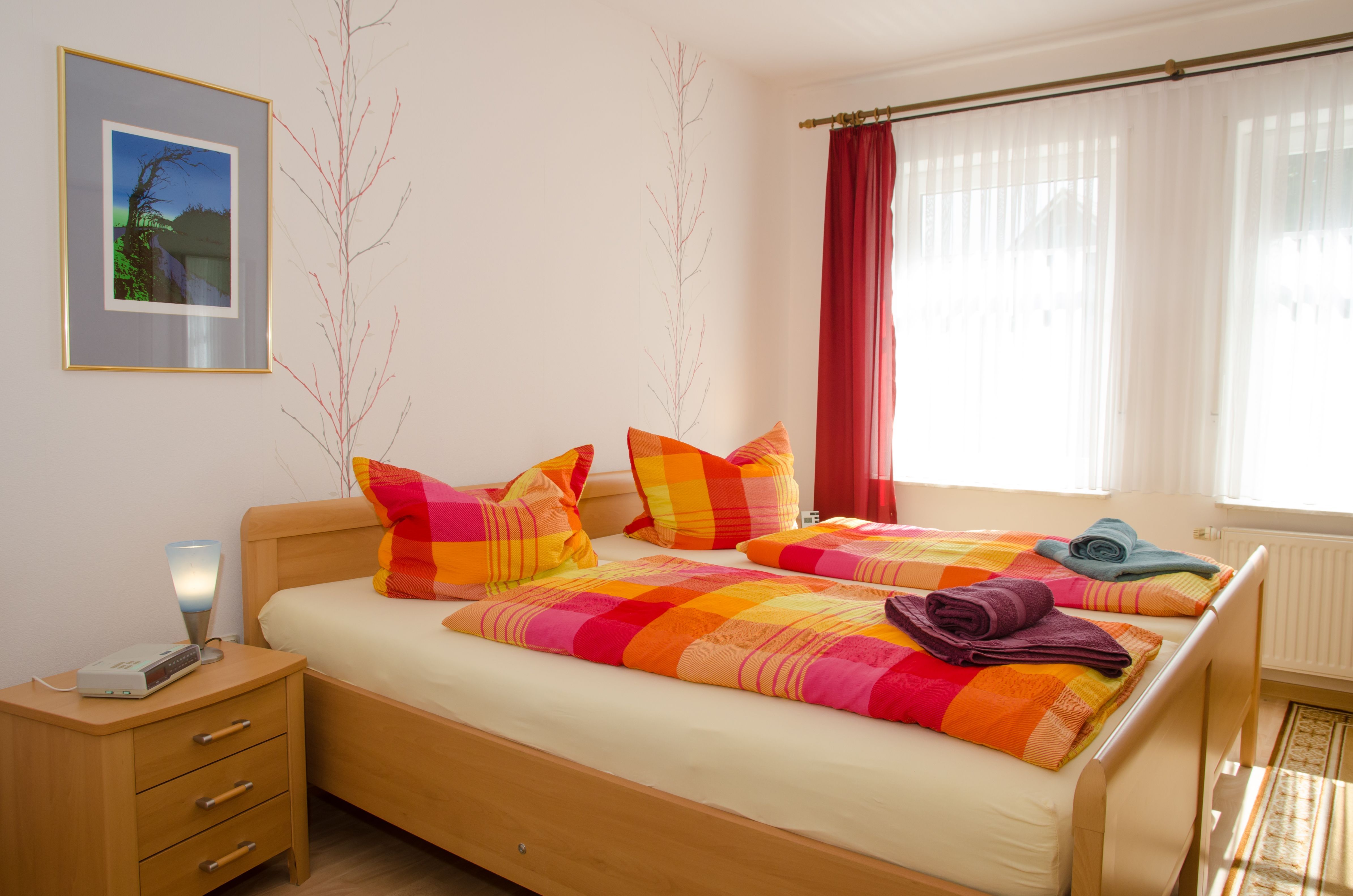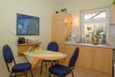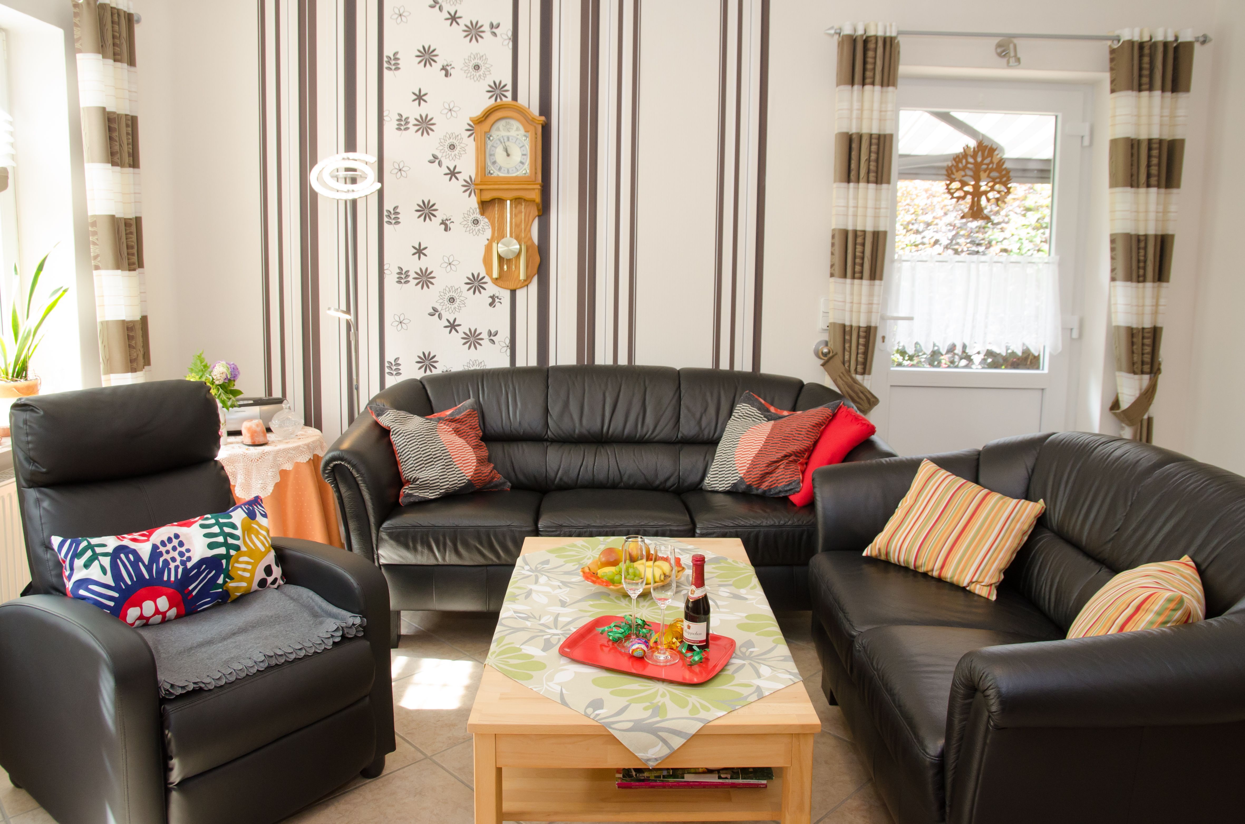 In dem großen, hellen Wohnzimmer steht eine Couchgarnitur mit einem Fernsehsessel mit Tisch und eine Schrankwand mit großem Flachbildschirm. Außerdem können Sie ein einer kleinen Stuhl-und-Tisch-Combi gemütlich ein Buch lesen. In der Küche finden Sie alles was Sie benötigen: Wasserkocher, Kaffeemaschine, kleiner Backofen sowie einen Kühlschrank und eine 2 Herdplatte. Im geräumigen Schlafzimmer steht ein Doppelbett, ein großer Wandschrank sowie zwei Stühle. Badezimmer mit Dusche und WC. Maximal 2 Erwachsene Personen und 1 Kleinkind sind unterzubringen.