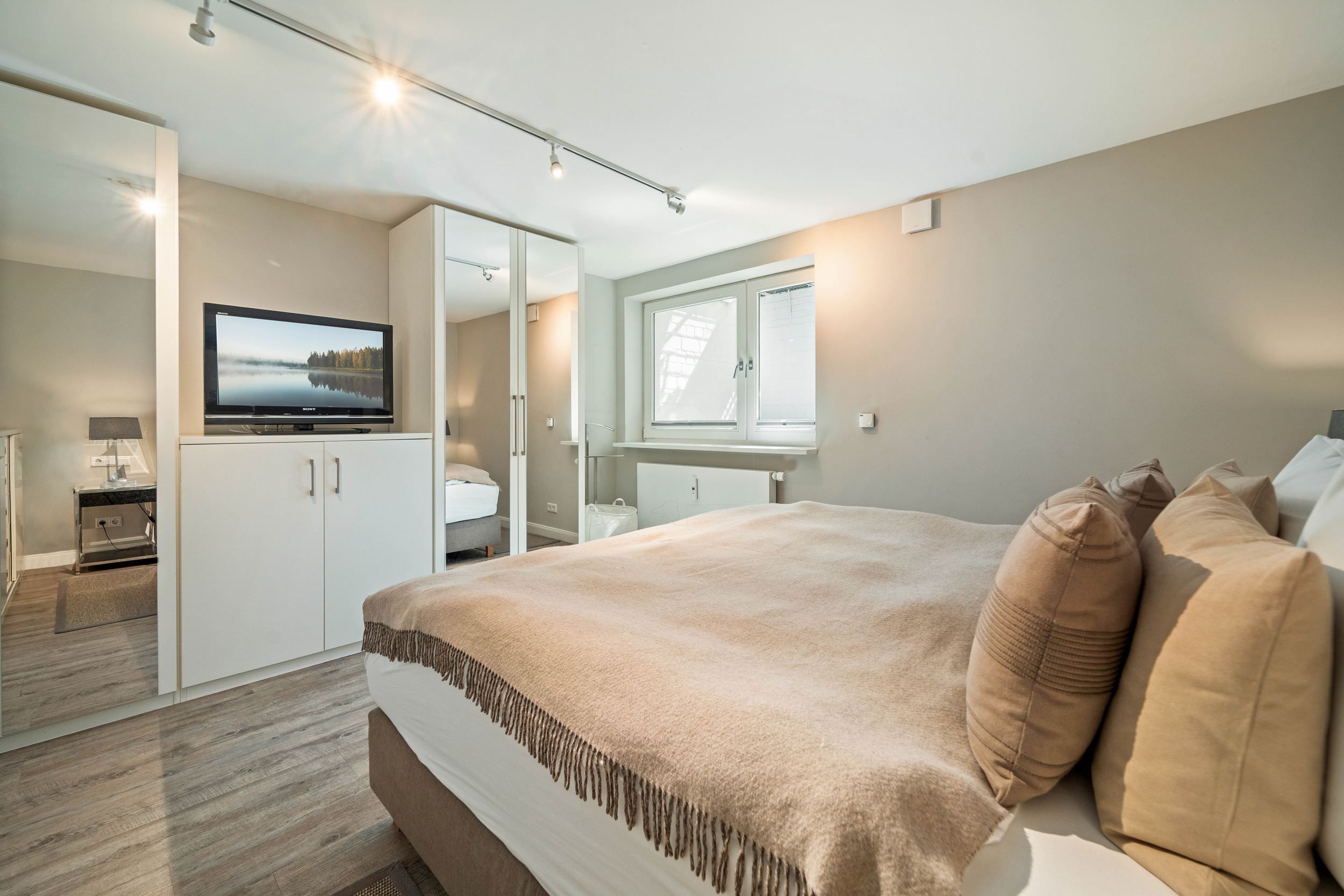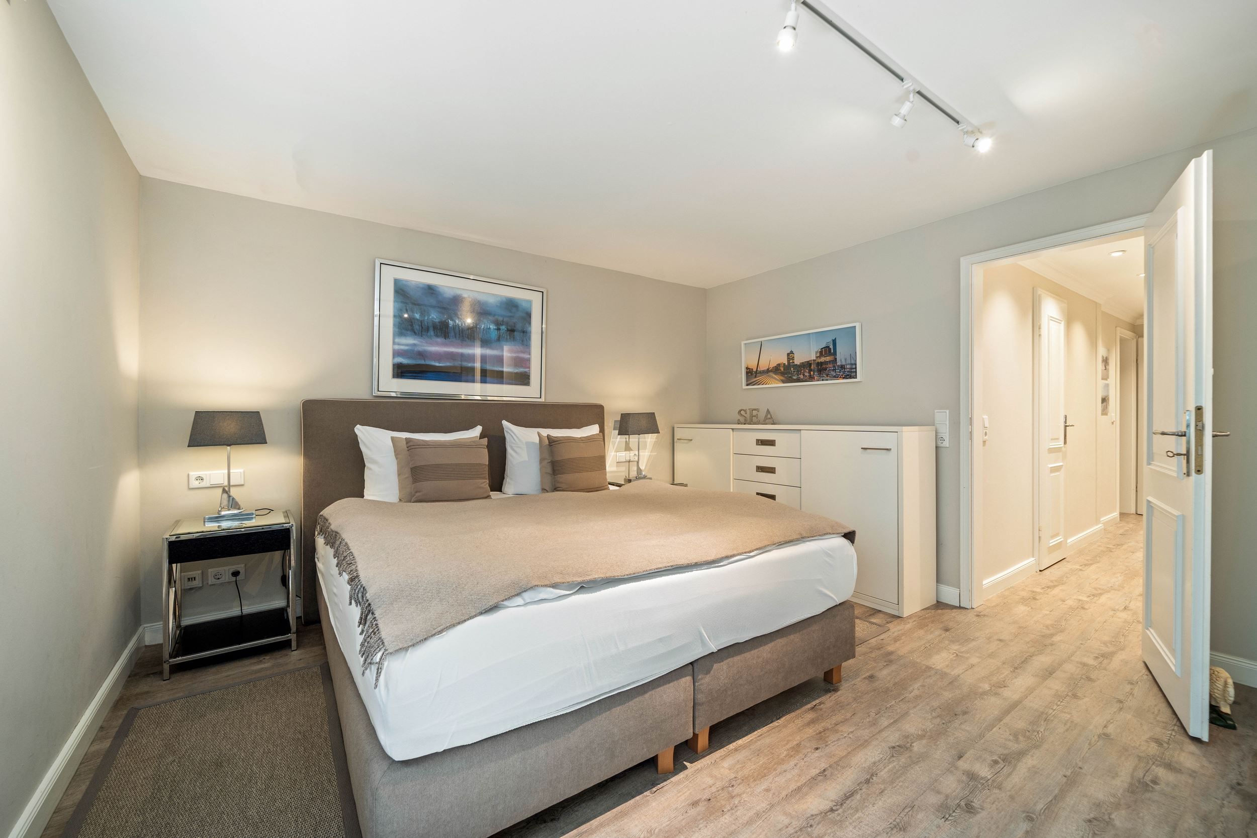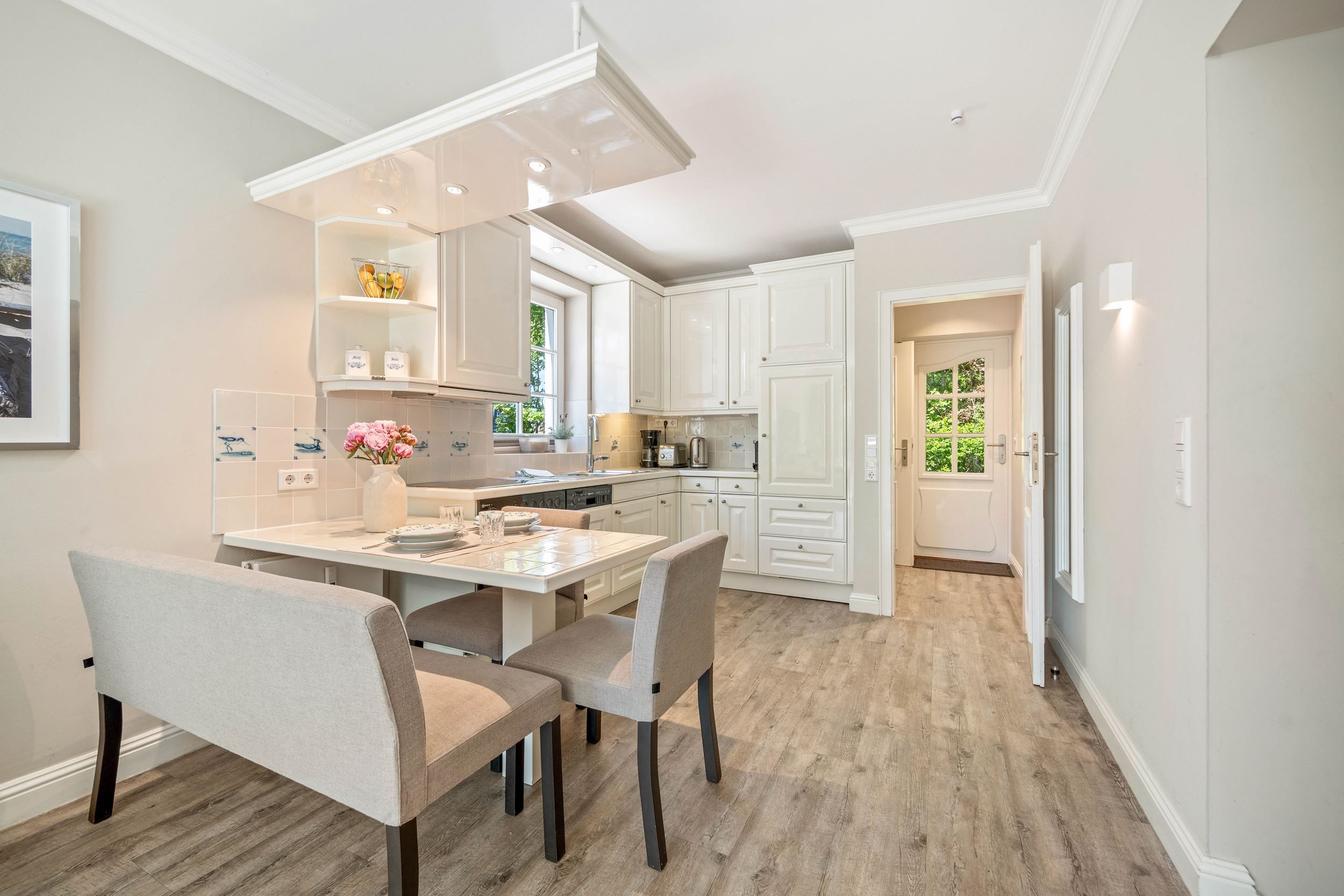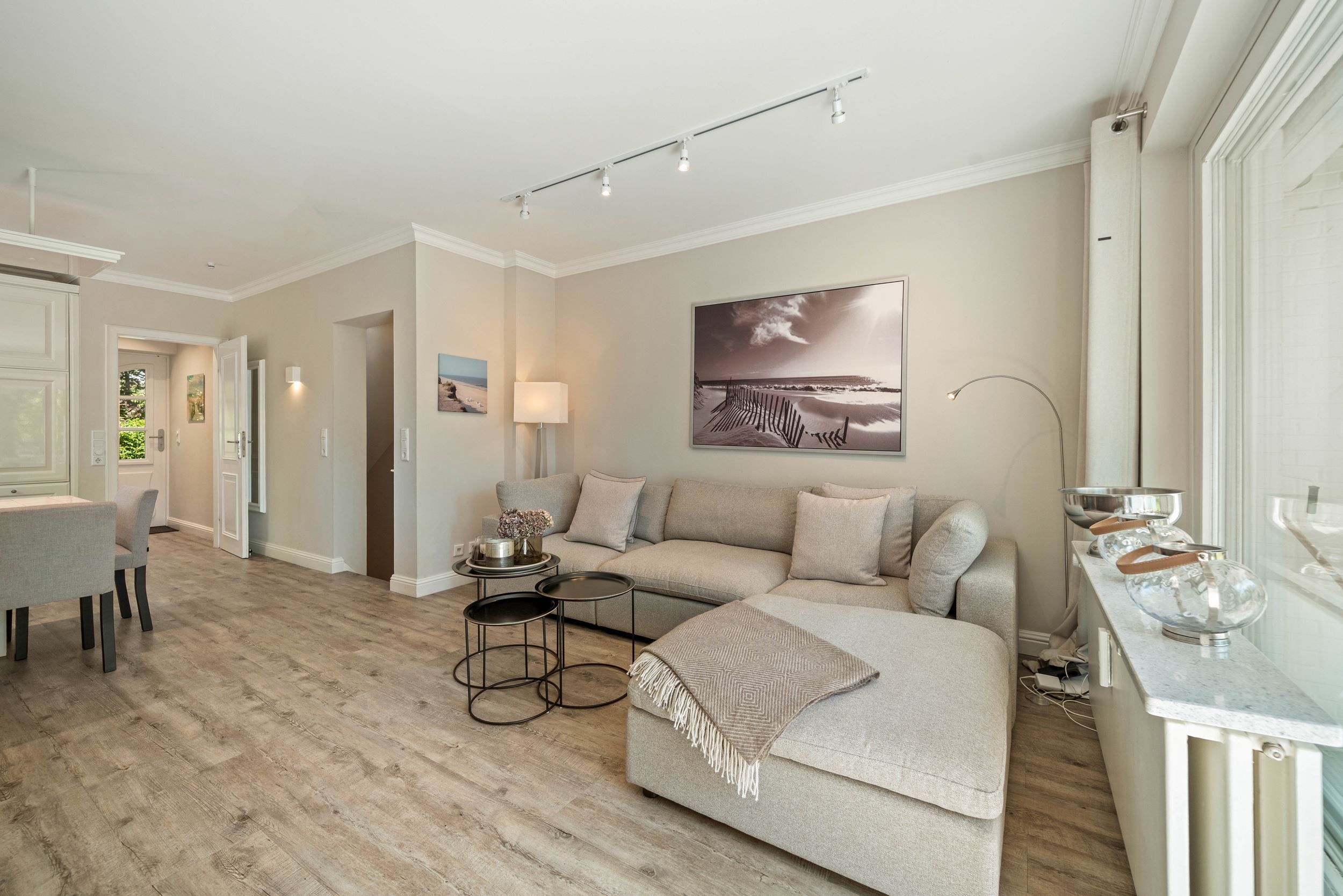 Diese Wohnung wurde komplett renoviert, saniert und neu möbliert. Die harmonische Farbgebung und die wirklich sehr gelungene Möblierung sorgt bei Ihnen für den absoluten Wohlfühleffekt. Die Wohnung ist wie folgt aufgeteilt: Erdgeschoss mit Wohnraum, Gäste WC, große offene Küche und Diele. Untergeschoss mit Badezimmer und den beiden Schlafzimmern.