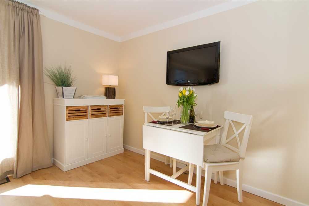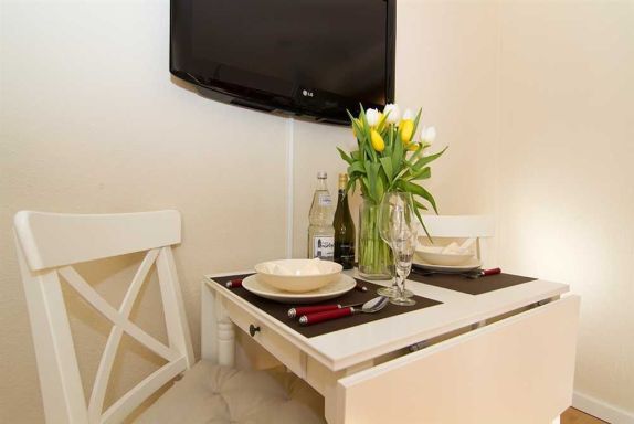 Das renovierte und sehr geschmackvoll eingerichtete 1-Raum Appartement befindet sich in Westerland auf Sylt im 2.OG. Das Appartement verfügt über einen kombinierten Wohn-/Schlafbereich mit einem sehr gemütlichen Doppelschrankbett, einer bequemen Couch und einem Esstisch für zwei Personen. Die separierte Küchenzeile ist mit einem Zwei-Platten Herd , einer Kaffeemaschine, einem Wasserkocher und einem Toaster ausgestattet. Das wunderschöne Badezimmer mit Dusche/WC wurde in 2023 aufwendig saniert und in eine Wellnessoase verwandelt. Der großzügige Balkon Richtung Westen verfügt über Balkonmöbel und lädt zum entspannen ein.