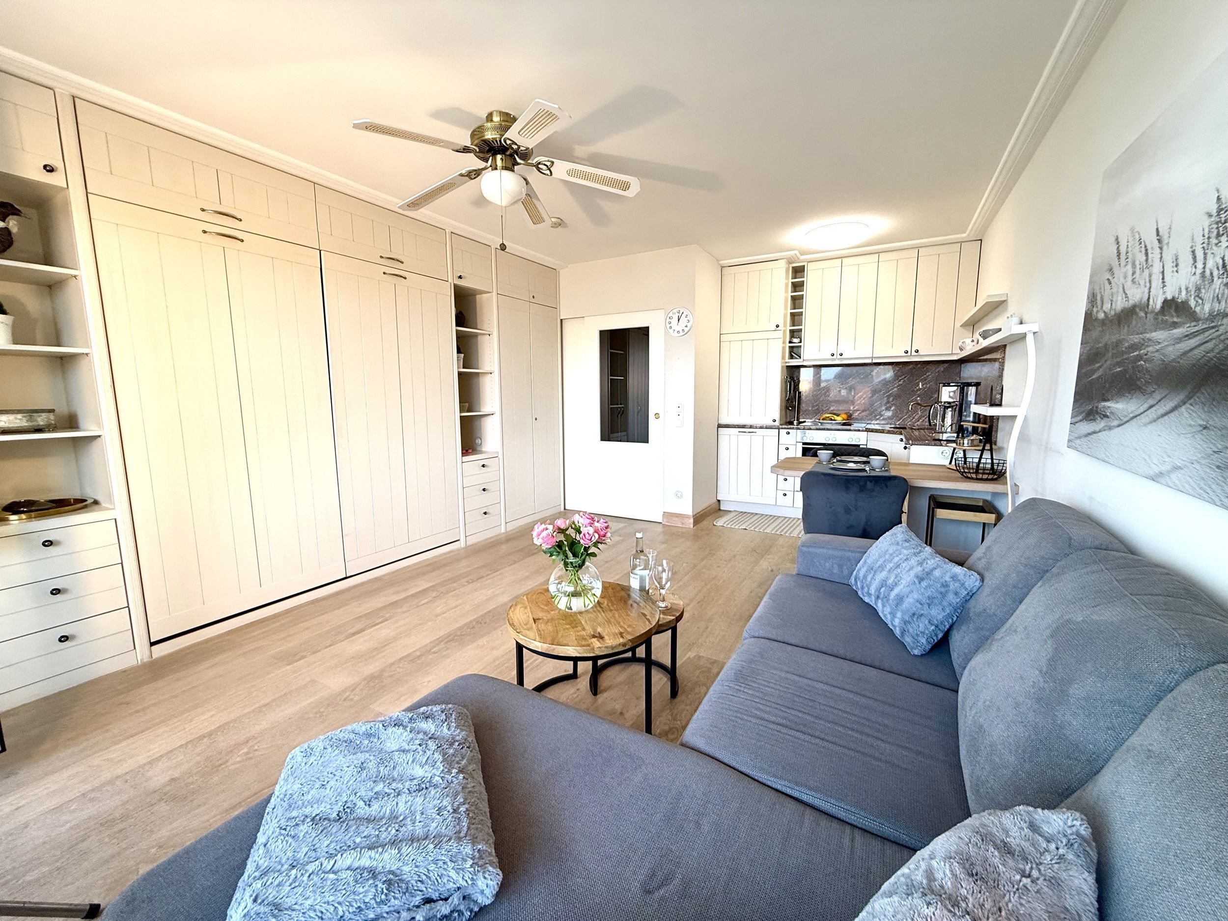 Die Unterkunft liegt im 2. Obergeschoss und hat einen möblierten Balkon nach Westen. Superschöne und liebevoll eingerichtete Ferienwohnung für 2 Personen, komplett renoviert. Dieses Appartement verwöhnt Sie mit allem Komfort für den perfekten Urlaub auf Sylt. Zu der Wohnung gehört der Garagenstellplatz Nr. 15 auf der Palette (Bis 1,70 Meter Höhe). Die maximale Fahrzeugbreite beträgt 1,90 Meter, die maximale Fahrzeuglänge 5,00 Meter und die maximale Spurweite beträgt 1,85 Meter.