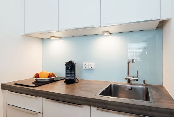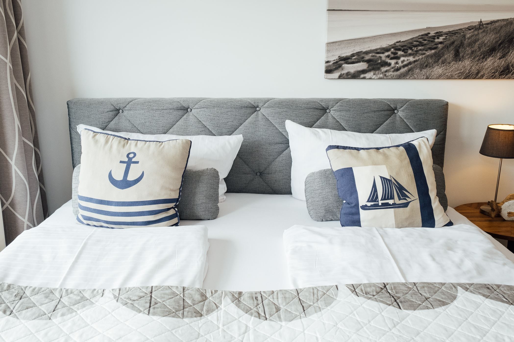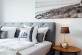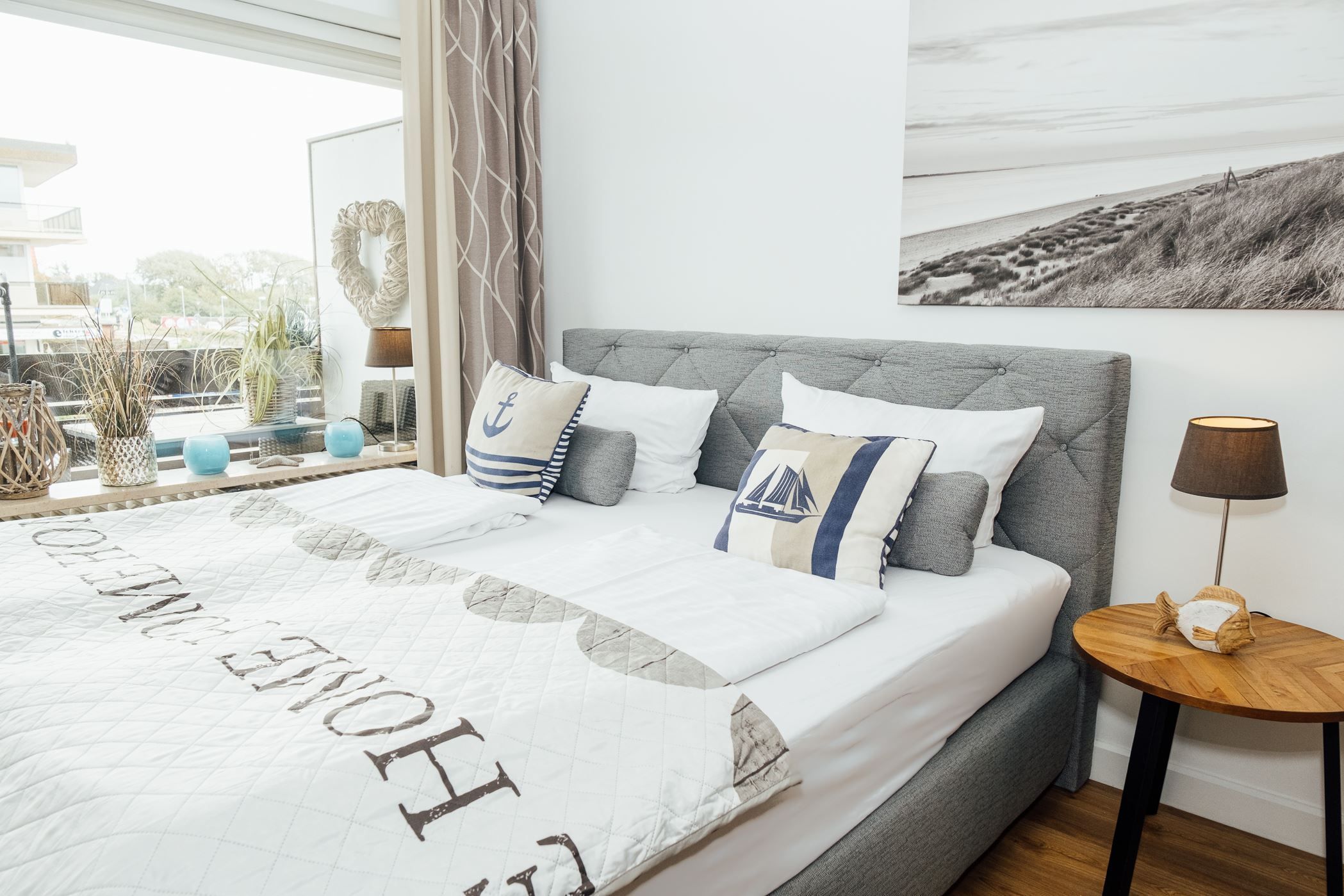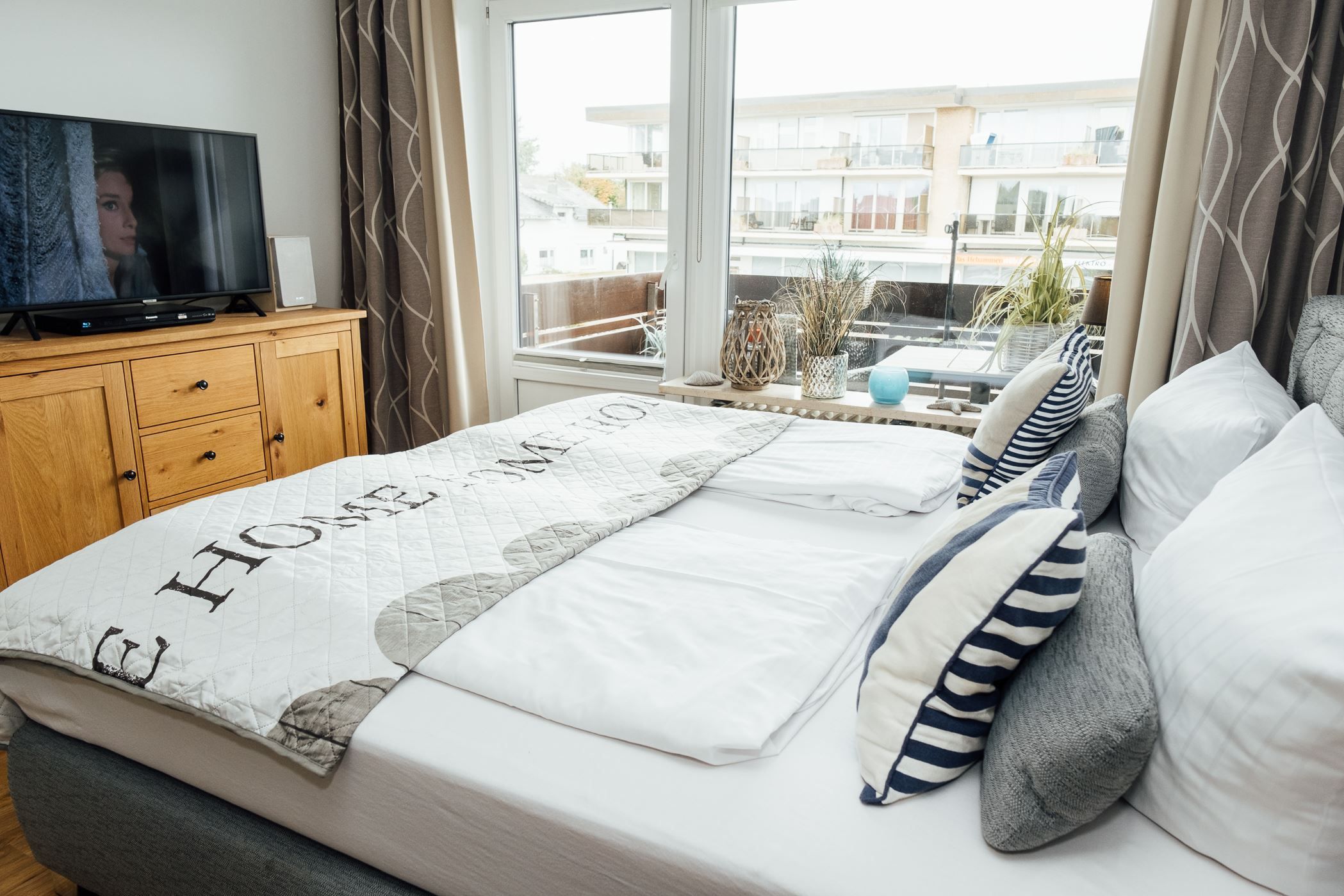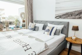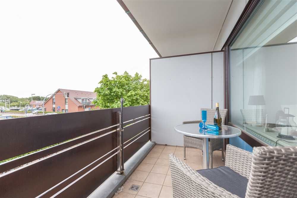 Der moderne Wohn/Schlafraum mit offener Einbauküche bietet ein komfortables Boxspringbett. Eine moderne Ausstattung, u.a. mit hochwertigem Flat-TV, Stereoanlage mit Bluetooth-Anschluss, DVD-Player sowie W-Lan sind selbstverständlich. Der mit bequemen Sesseln und einen kleinen Tisch möblierte Balkon vervollständigt das schöne und elegante Gesamtbild. Wir wünschen Ihnen viel Spaß und gute Erholung.