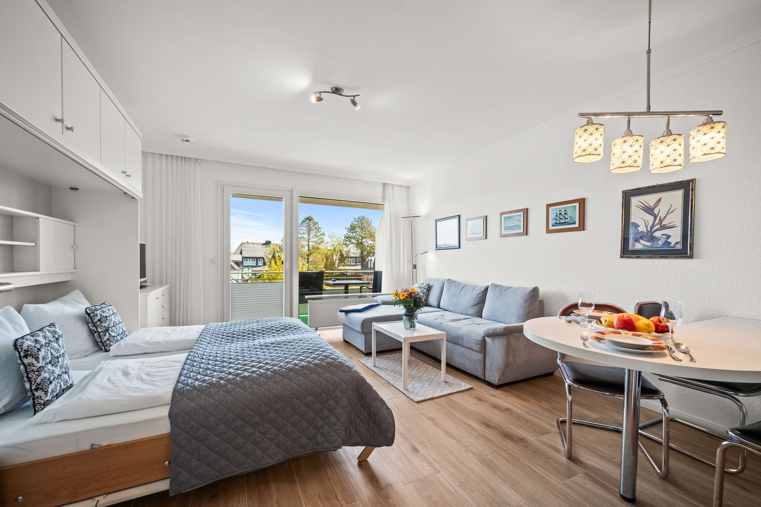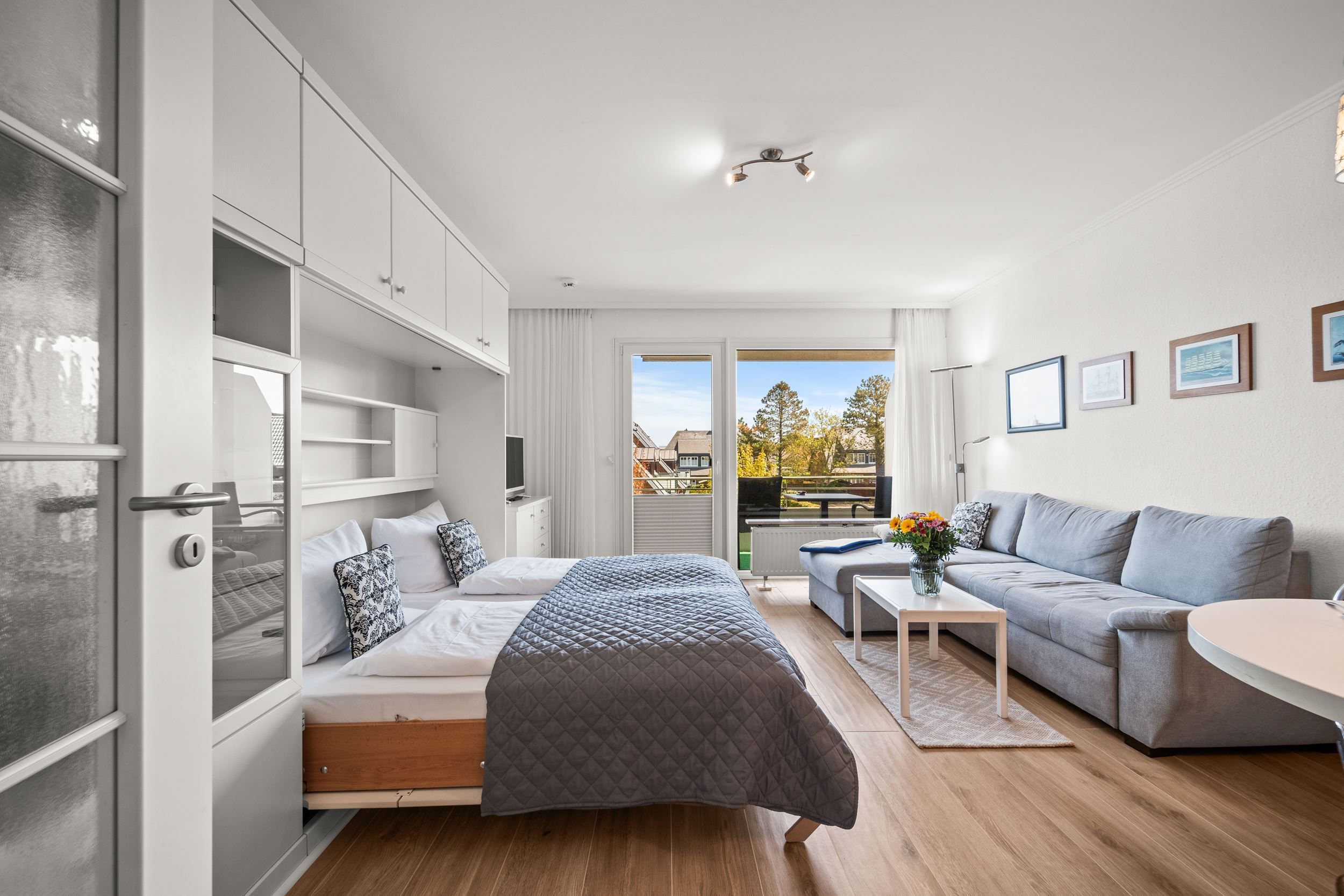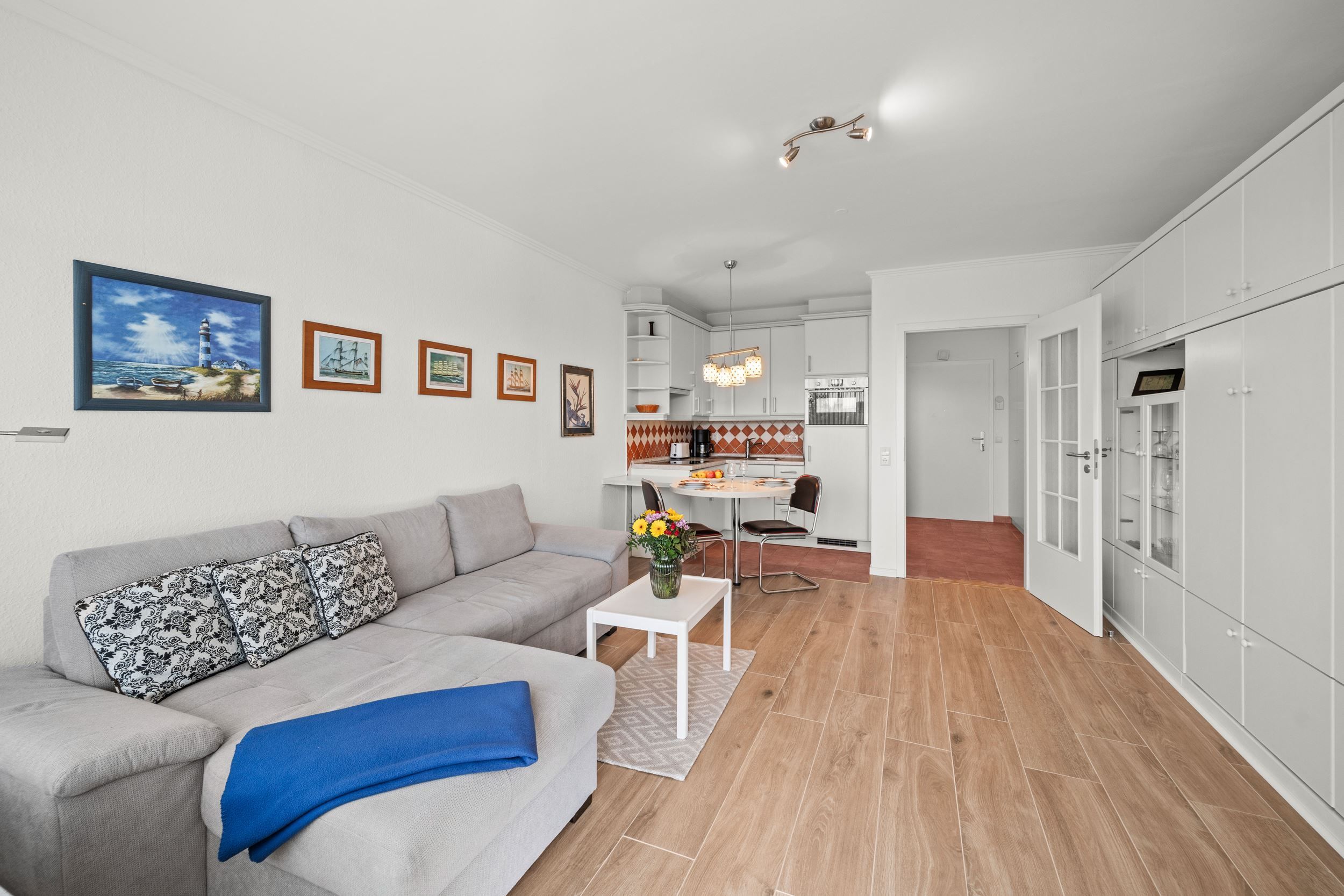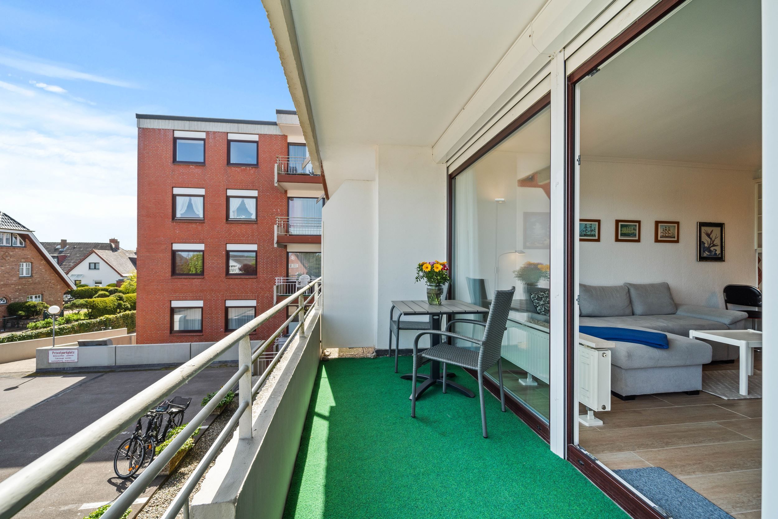 Die Unterkunft liegt im 1. Obergeschoss und hat einen großen, möblierten Balkon nach Osten. Ausgestattet mit Flachbildschirm und Radio im Wohnzimmer. Die Einbau-Küche ist mit Ceran-Kochfeld und Mikrowelle. Die Wohnung ist außerdem mit einem Internetzugang ausgestattet (gebührenfrei). Zudem steht Ihnen ein Telefon zur Verfügung, die Anrufe in das Deutsche Festnetz sind gebührenfrei für Sie. Zu der Wohnung gehört der Garagenstellplatz Nr. 11 auf der Palette (Bis 1,70 Meter Höhe). Die maximale Fahrzeugbreite beträgt 1,90 Meter, die maximale Fahrzeuglänge 5,00 Meter und die maximale Spurweite beträgt 1,85 Meter.