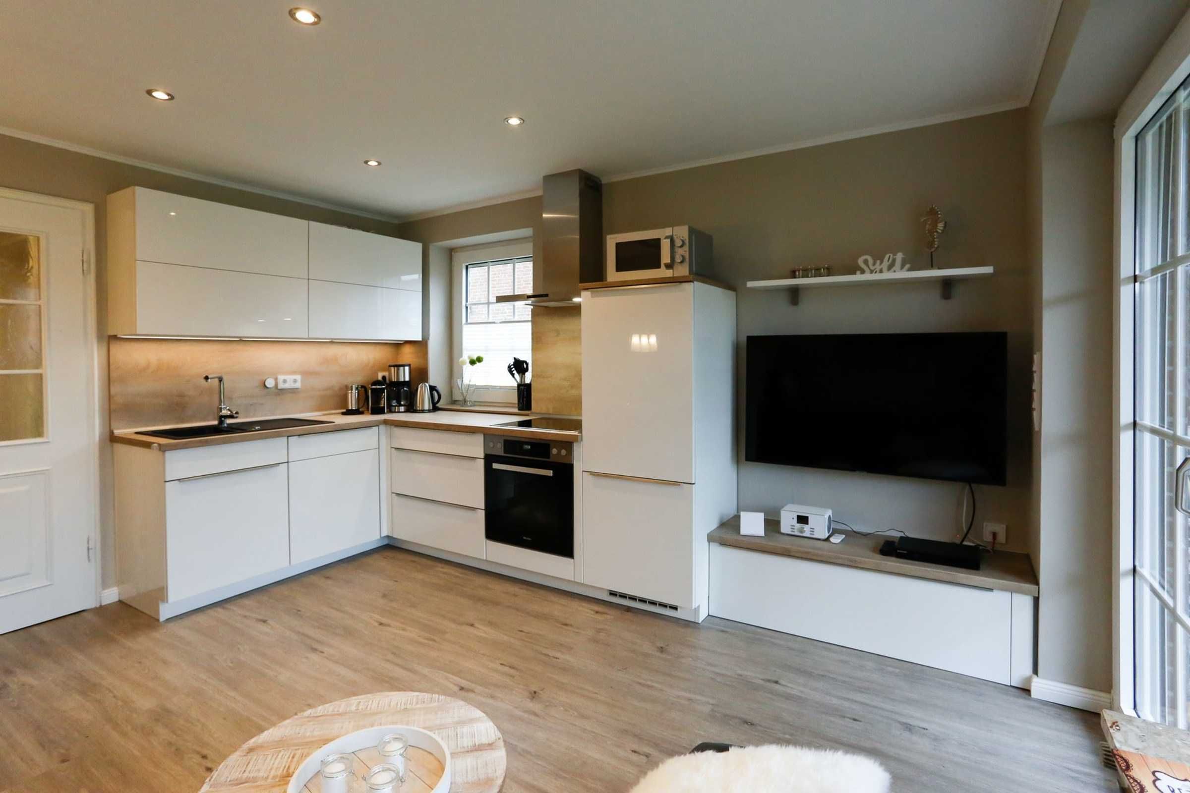 - Lichtdurchflutetes Wohnzimmer mit integrierter Küche: