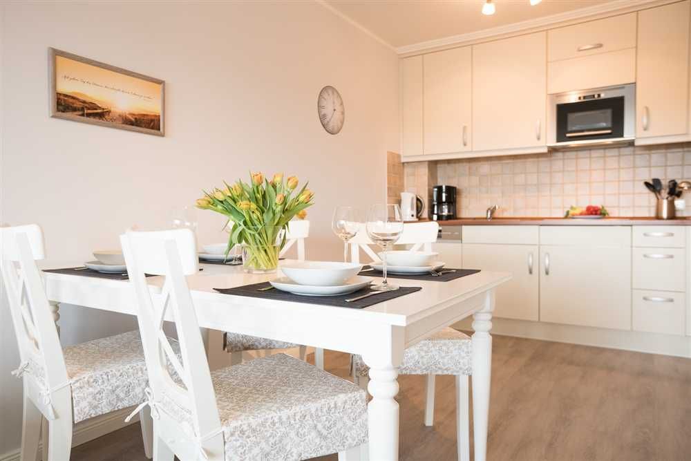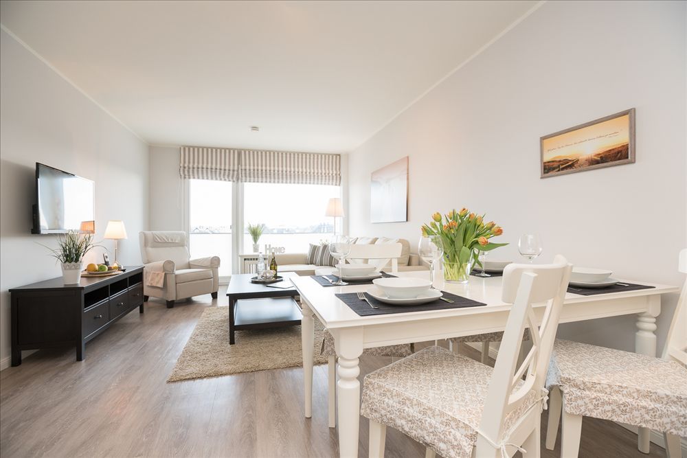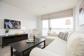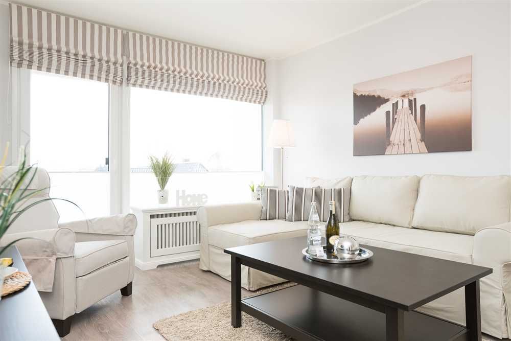 In der gesamten Wohnung wurde einheitlich ein sehr schöner und farblich akzentuierter Design-Bodenbelag verlegt. Hier wurden wirklich keine Kosten und Mühen gescheut, damit es Ihnen im Urlaub richtig gut geht. Das Wohnzimme ist in warmen Erdtönen eingerichtet. Viele liebevolle Details führen dazu, dass man sich hier gut behütet und einfach nur noch wohl fühlen kann. Die Schlafcouch im Wohnzimmer ist bequem und einfach zu bedienen. Für zwei Personen ist die Wohnung perfekt, bis zu 4 Personen können aber untergebracht werden.Die Wohnung liegt im 2. OG mit Balkon Richtung Osten und ist damit von der Straße abgewandt.Zu der Wohnung gehört der Garagenstellplatz Nr. 62 auf der Palette (Bis 1,70 Meter Höhe). Die maximale Fahrzeugbreite beträgt 1,90 Meter, die maximale Fahrzeuglänge 5,00 Meter und die maximale Spurweite beträgt 1,85 Meter. Fahrstuhl sowie Schwimmbad und Sauna im Haus vorhanden.