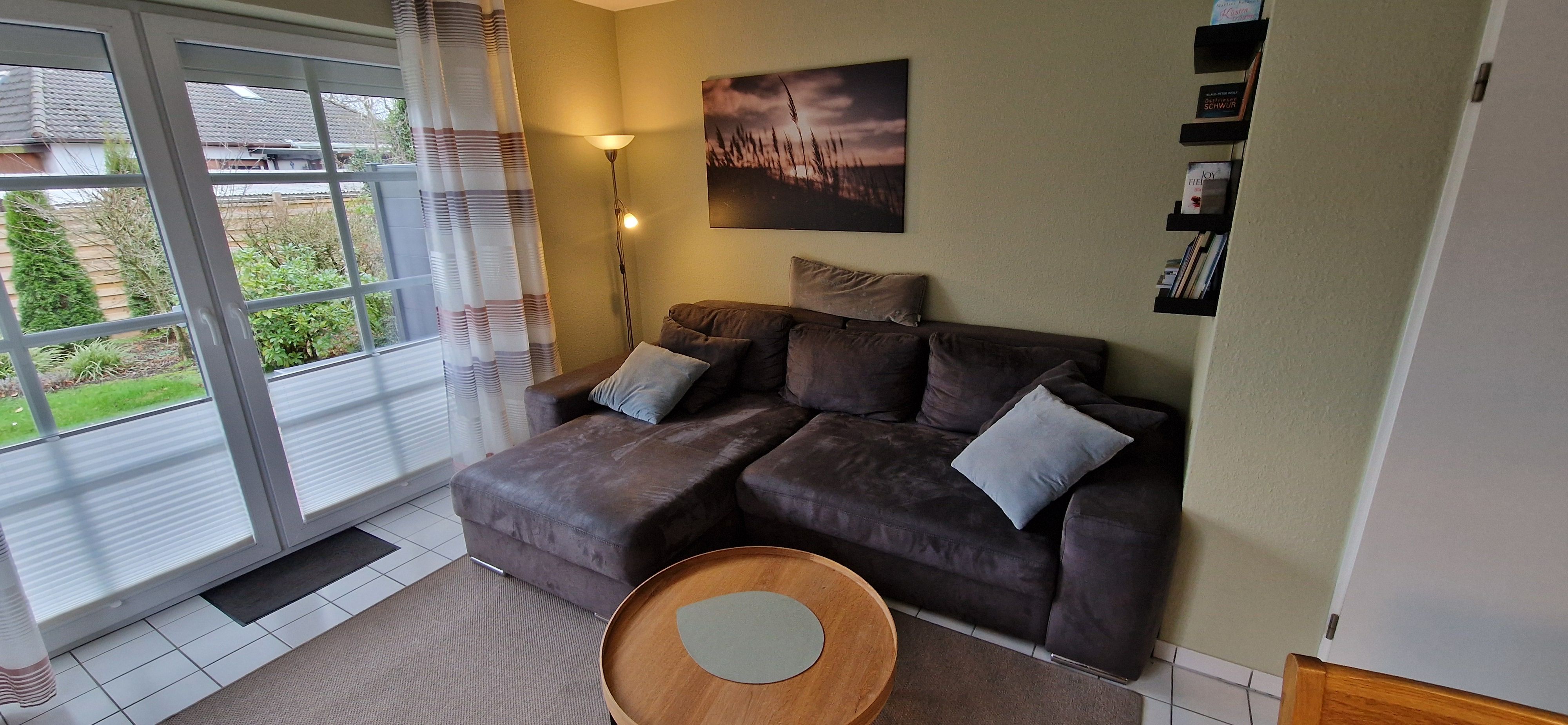Die Doppelhaushälfte ist ansprechend und modern ausgestattet und bietet Platz für bis zu 6 Personen und ein Baby/Kleinkind. Im Erdgeschoss befinden sich ein großer Wohn- und Essbereich mit Ausgang zur Südterrasse, eine separate, vollständig ausgestattete Küche sowie ein Gäste-WC. Das 1. Obergeschoss verfügt über ein Schlafzimmer mit Doppelbett und ein Schlafzimmer mit zwei Einzelbetten sowie über ein Badezimmer mit Dusche und WC. In einem Dachstudio stehen zwei weitere Einzelbetten zur Verfügung. Die Böden des Ferienhauses sind mit Fliesen bzw. Laminat ausgestattet. WLAN steht Ihnen kostenfrei zur Verfügung.