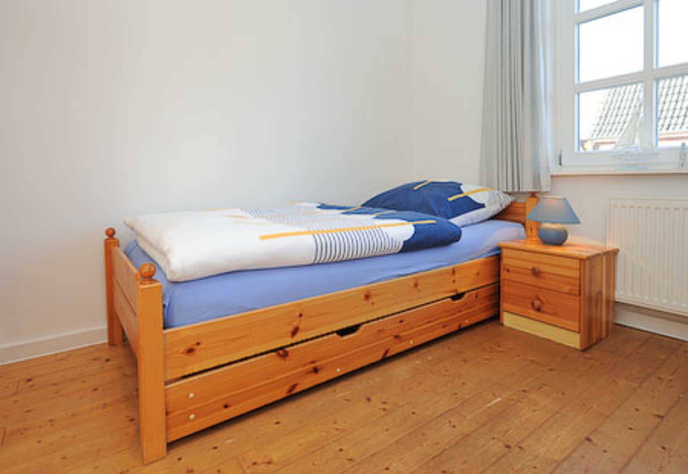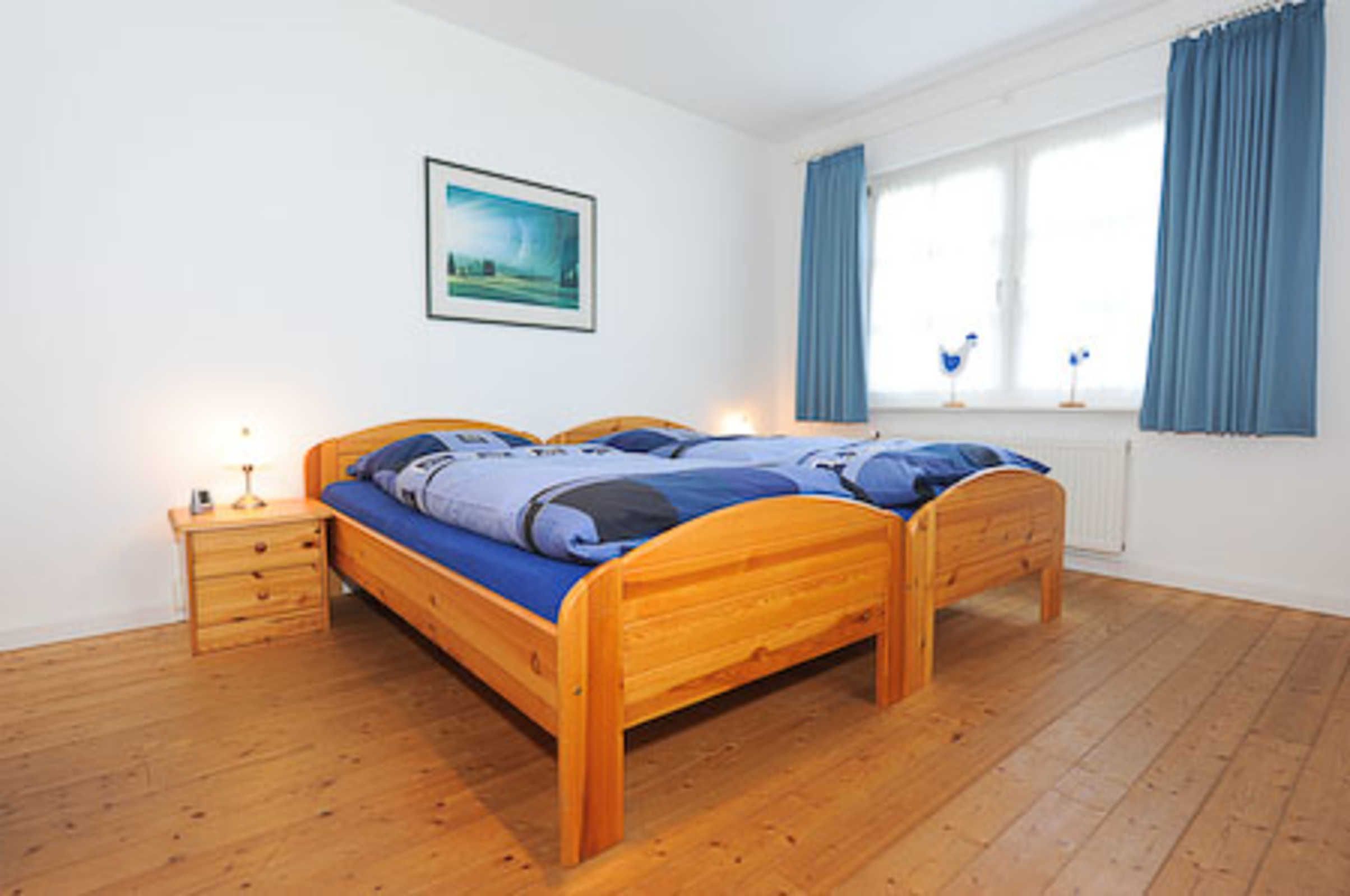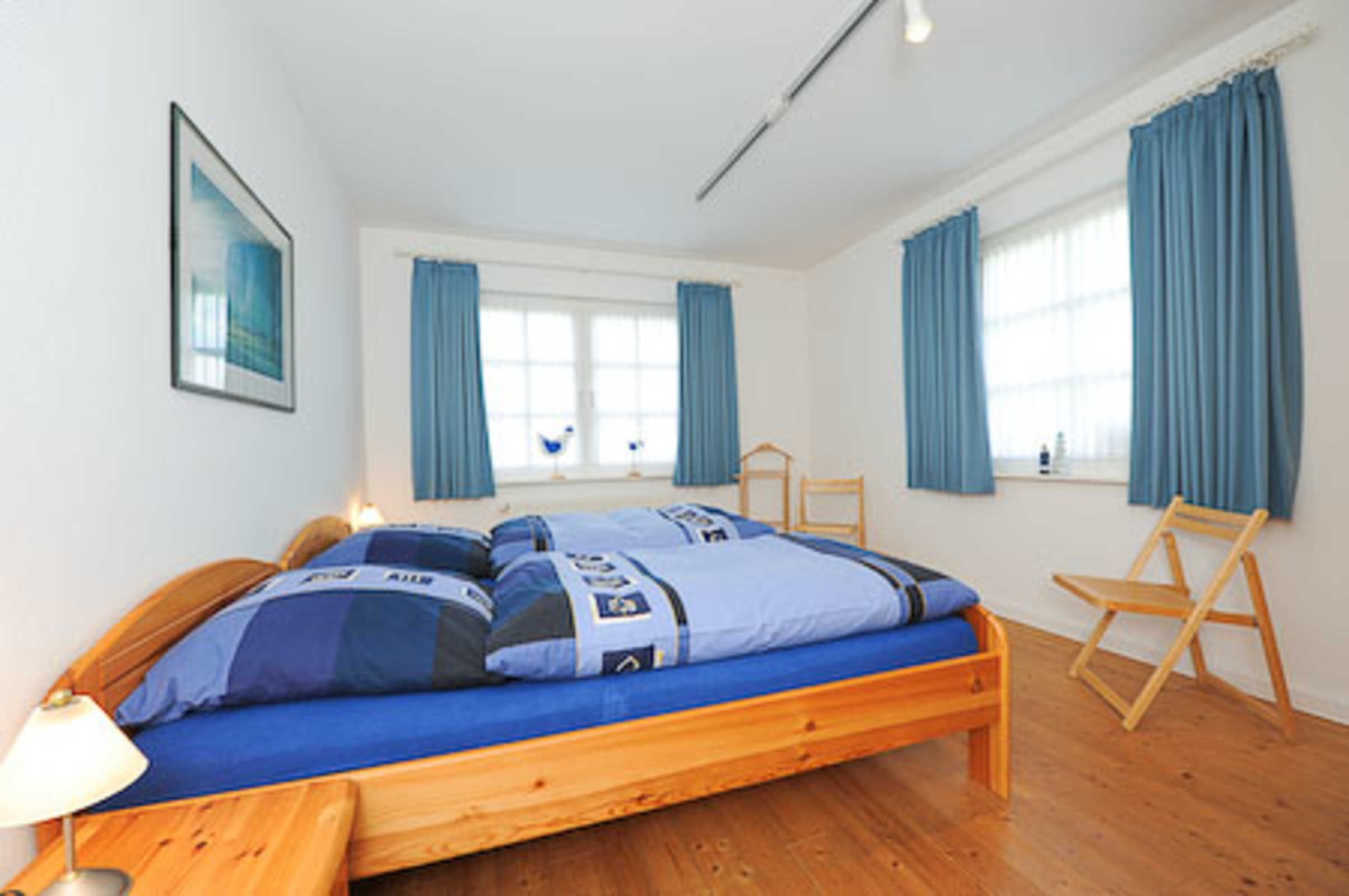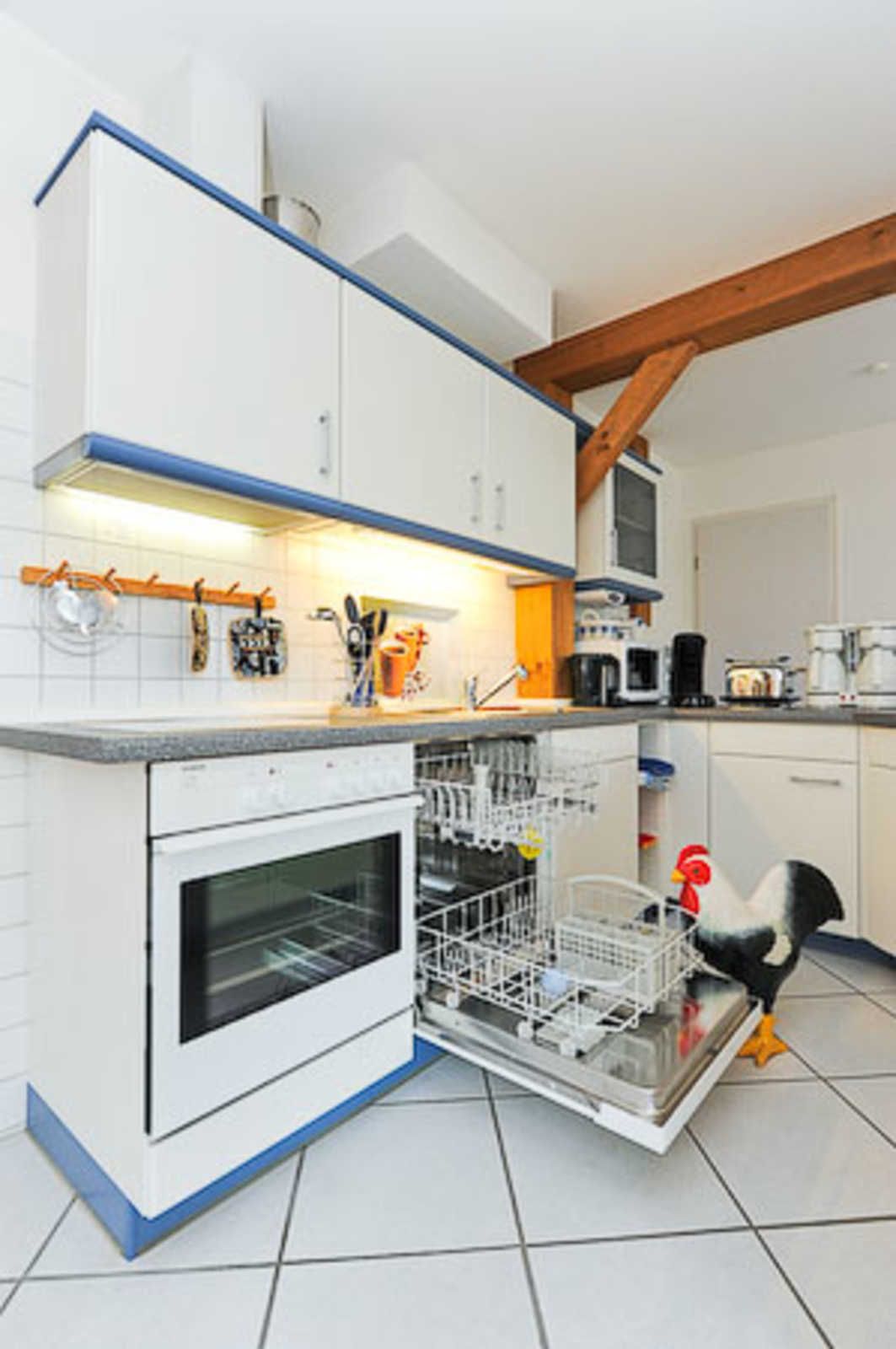 Sehr gemütlich ist die Wohnung besonders durch die offene Balkenlage des ostfriesischen Landhauses. Es gibt viel Holz und die Räume sind dennoch lichtdurchflutet und dadurch und durch die Einrichtung und Gestaltung freundlich-hell. Die Holzfußböden, die Holz-Decken und das Holz-Ständerwerk wurden baubiologisch behandelt, also ohne chemischen Schnickschnack.
