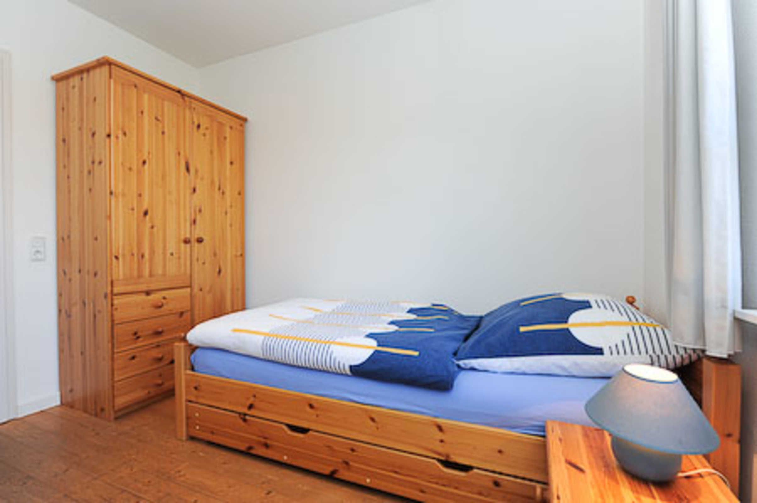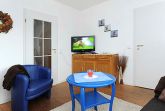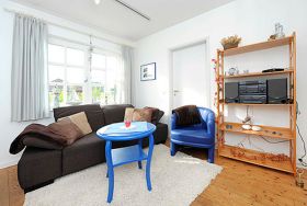 Die 60 Quadratmeter große Ferienwohnung für zwei Personen ist im Obergeschoss des Hauses. Hier werden sie vor allem den großzügigen und pfiffigen Wohnraum mit der räumlich abgeteilten offenen Küche lieben!