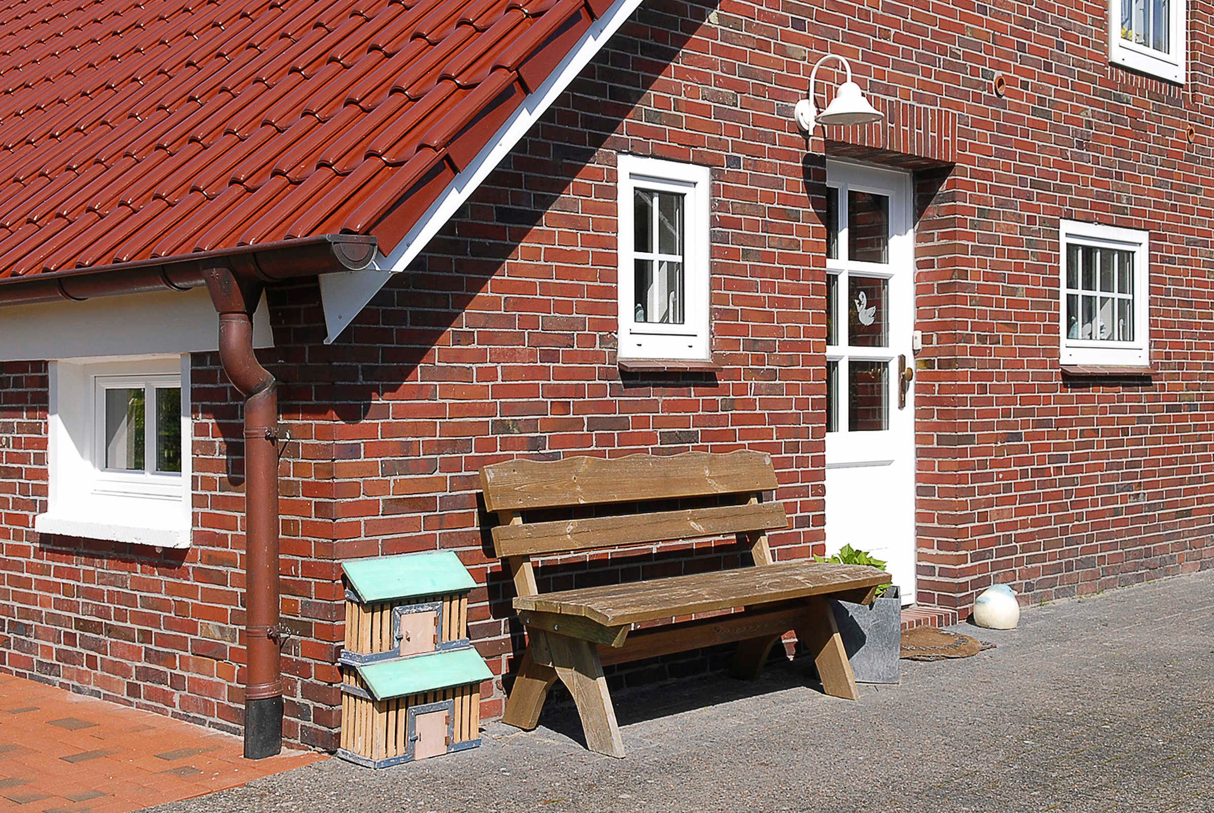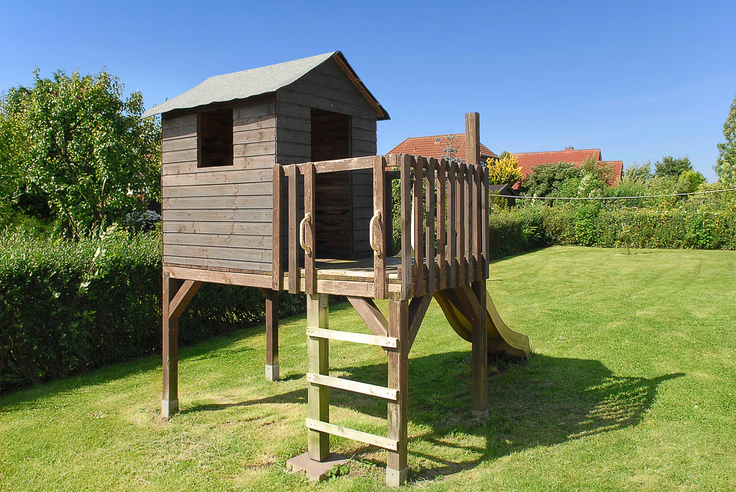 Das Grundstück ist 1.000 Quadratmeter groß. Im schönen großen Garten auf der Südseite des Hauses gibt es für alle unsere Gäste Platz zum Sonnen und diverse Spielgeräte und reichlich Platz zum Toben.