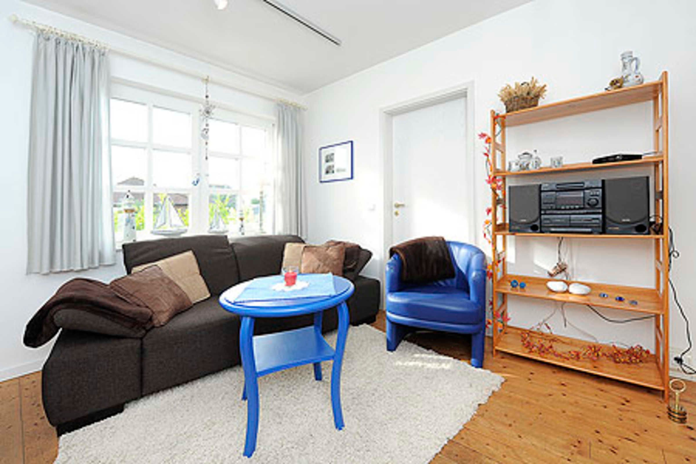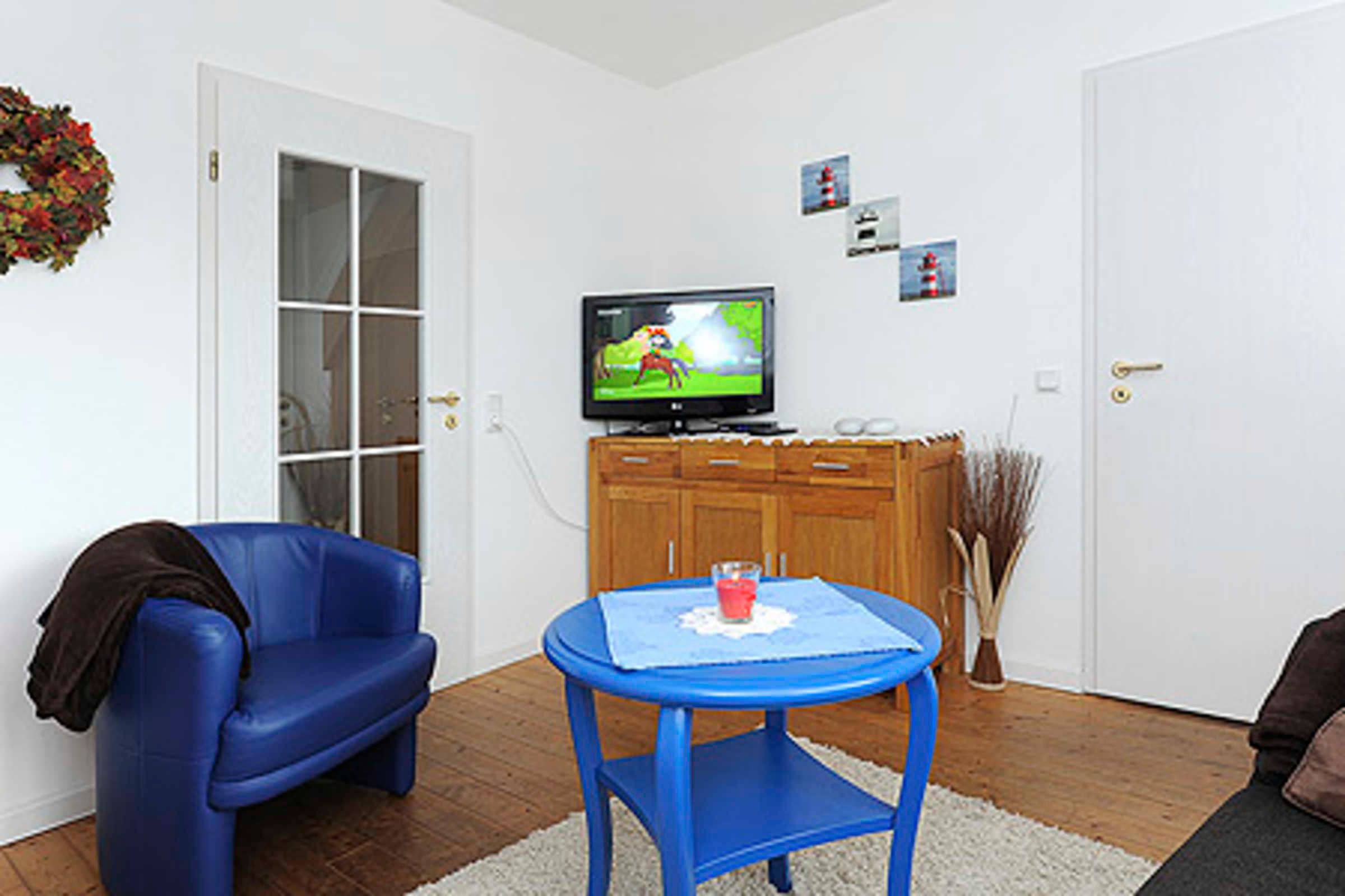 Größe ca. 80 Quadratmeter, Wohndiele mit integrierter Küche, Fernseh-Wohnzimmer, Schlafzimmer, Kinderzimmer, Badezimmer mit Dusche, Waschtisch und WC, Gäste-WC, Erdgeschoss, Terrasse, Internetzugang über WLAN möglich, optimal für 2 bis 3 Personen.