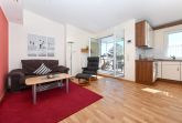 Größe ca. 57 Quadratmeter, Wohnraum mit integrierter Küche, Schlafzimmer, zweites separates, Schlafzimmer/Kinderzimmer, Badezimmer mit Dusche, Waschtisch und WC, Obergeschoss, Balkon, optimal für 1 bis 3 Personen und zusätzlich ein Kleinkind.
